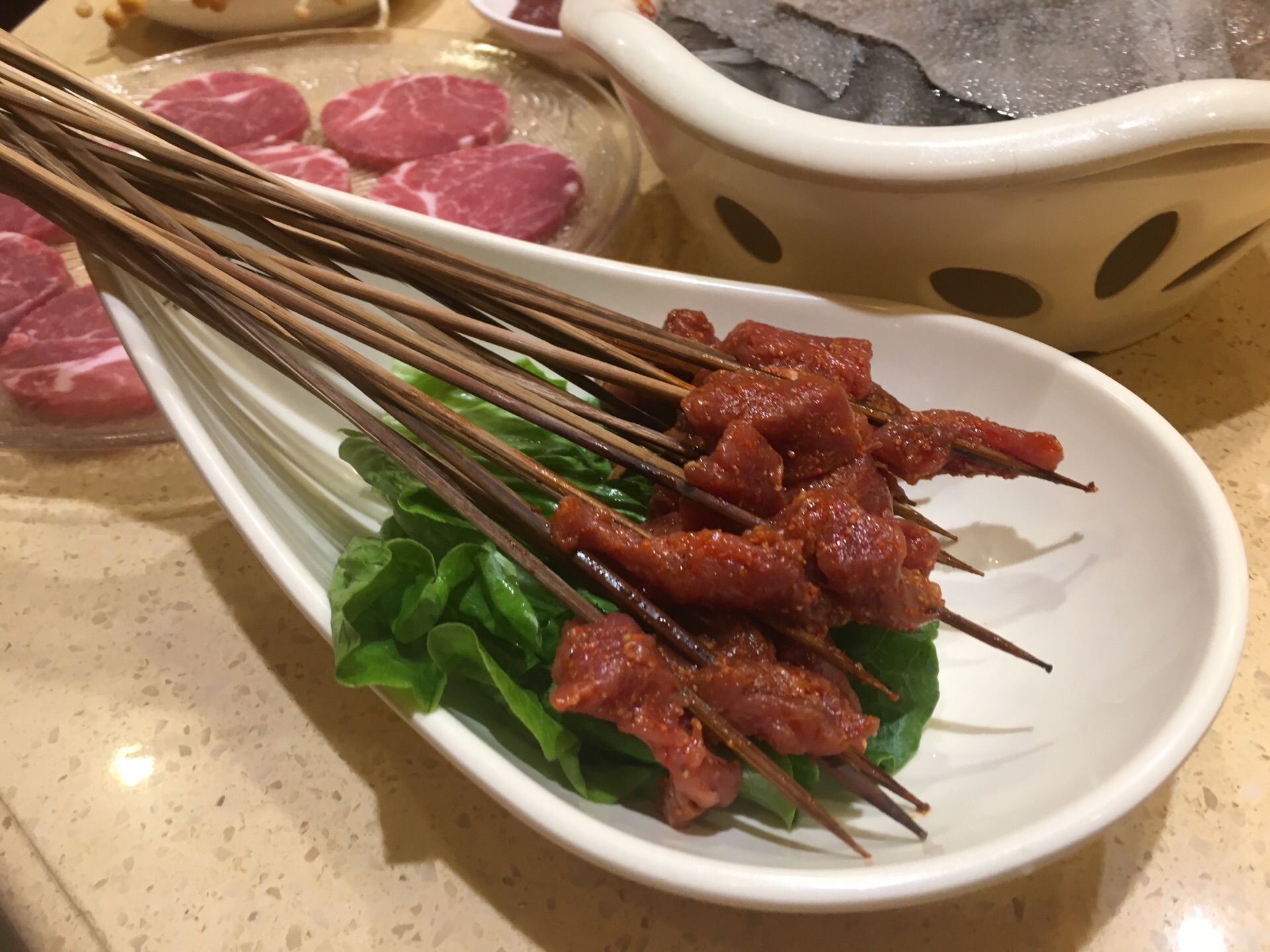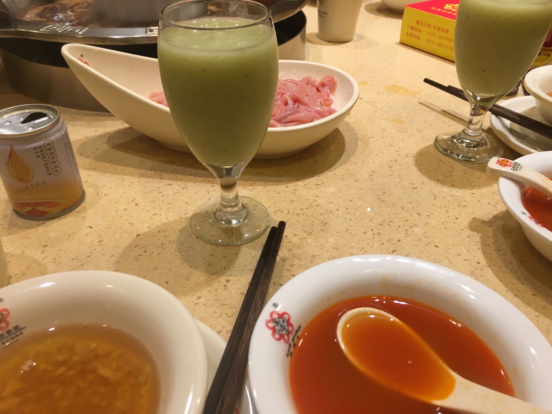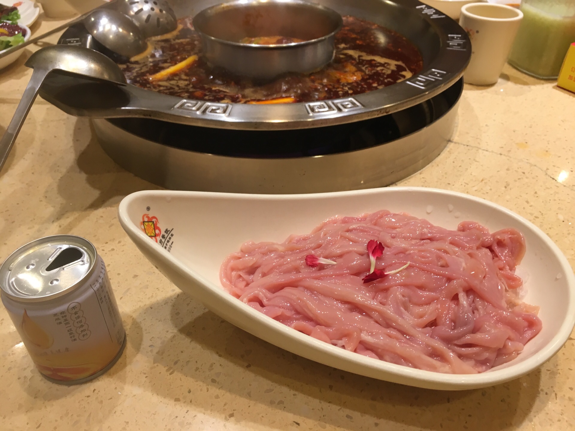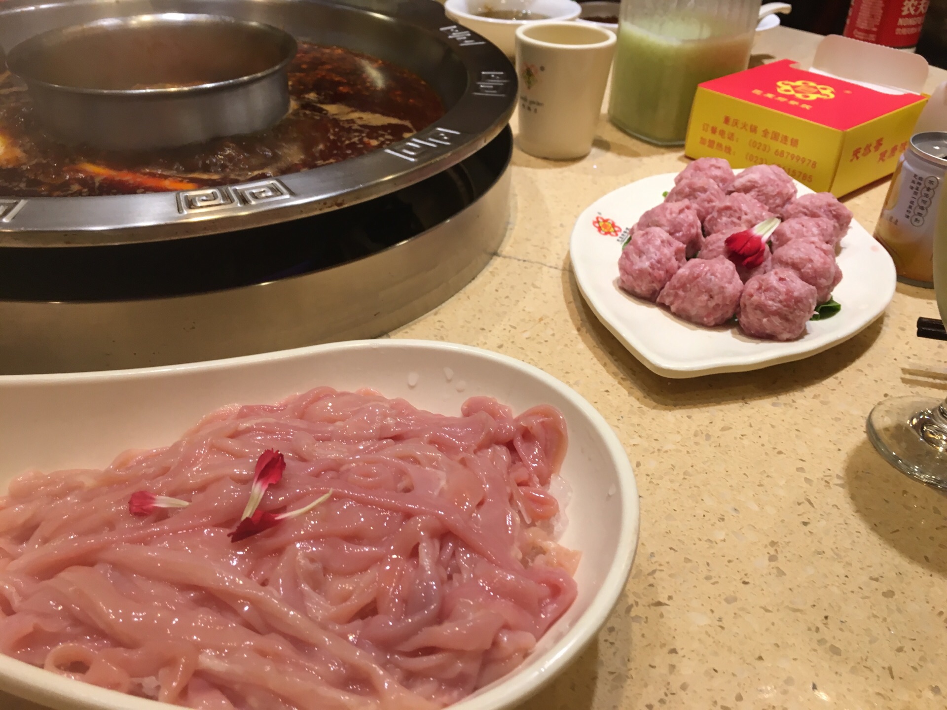 这家在重庆开了20多年,名字叫南方鸭肠王。顾名思义,它家的鸭肠是它的特色。鸭肠处理得很干净,烫的时候不会打结,缠绕,所以可以多烫一会儿。 另外,它家的像牛肉一样一串一串的那个,实际上是驴肉,吃起来味道很好,有弹性。 还有一个方竹笋也不错。