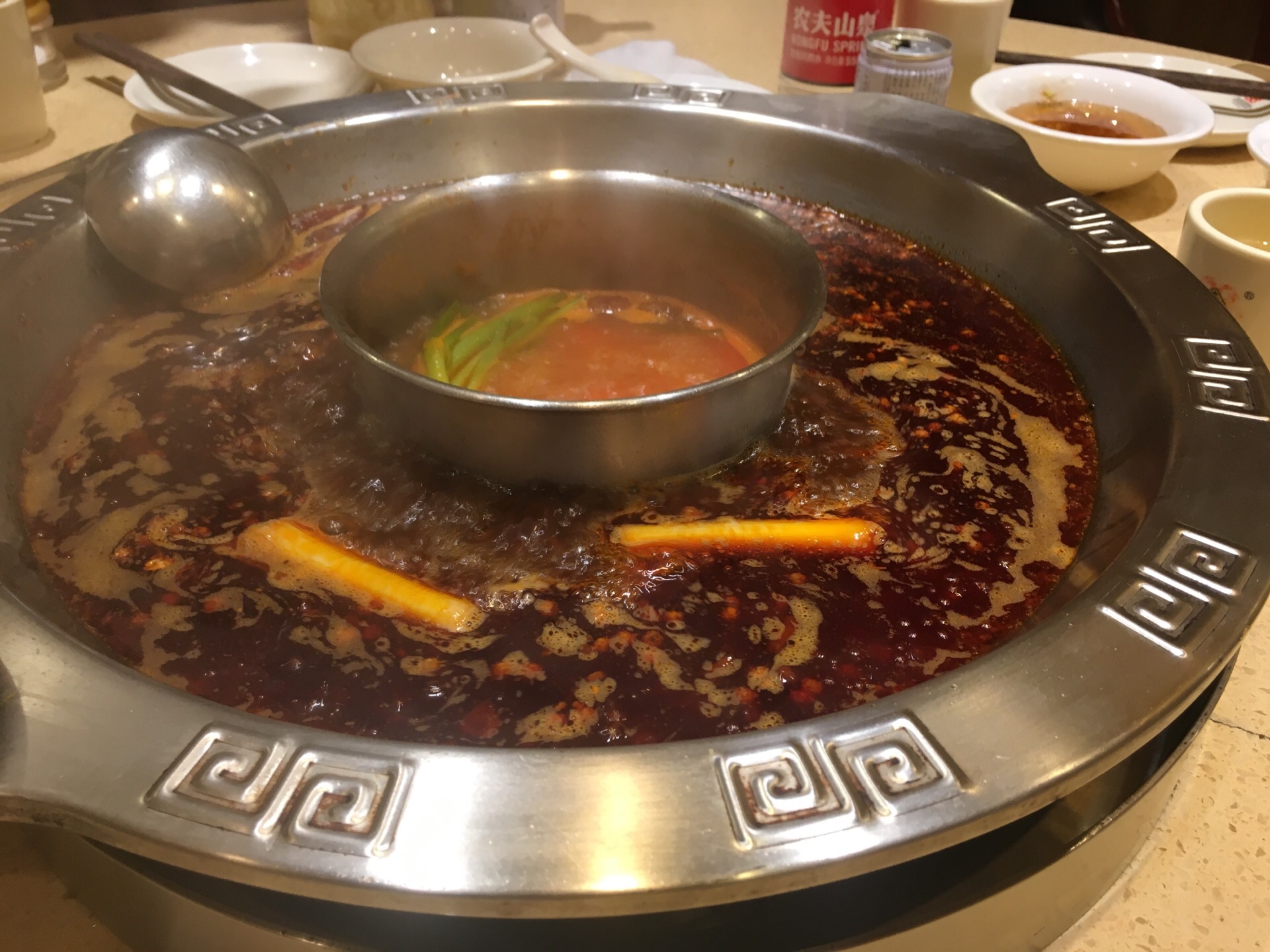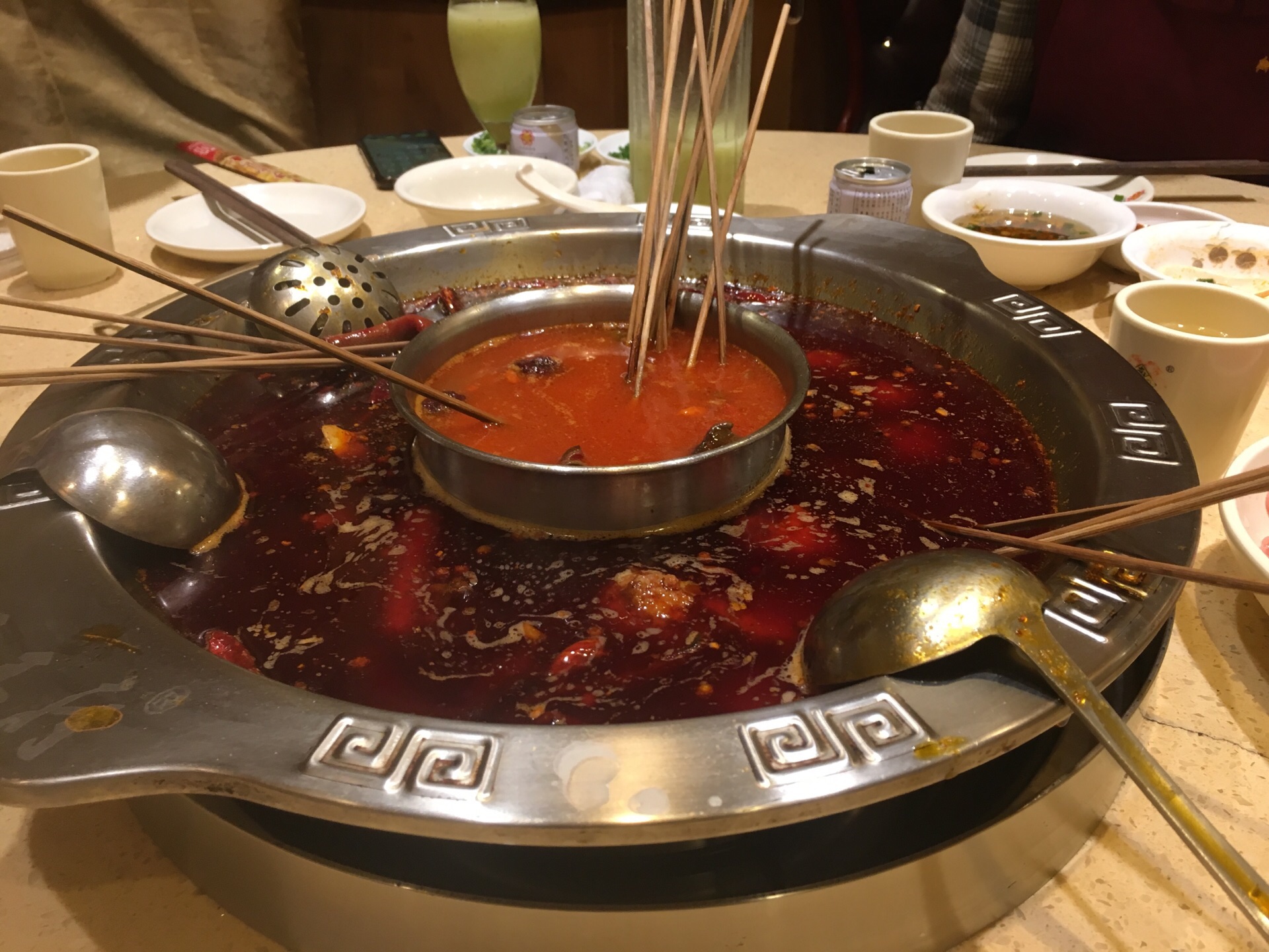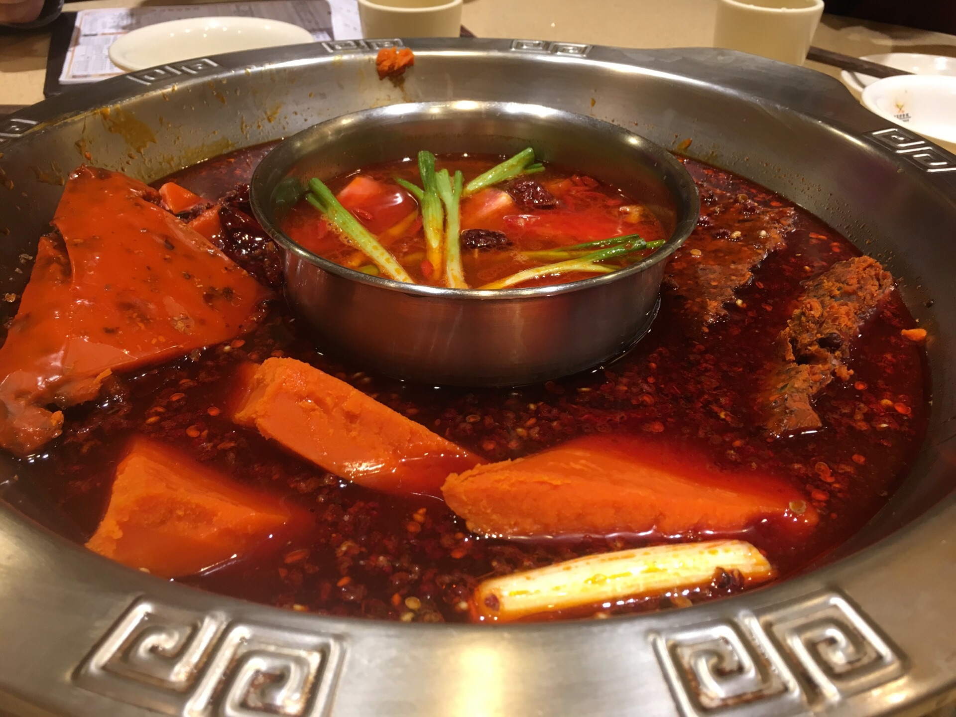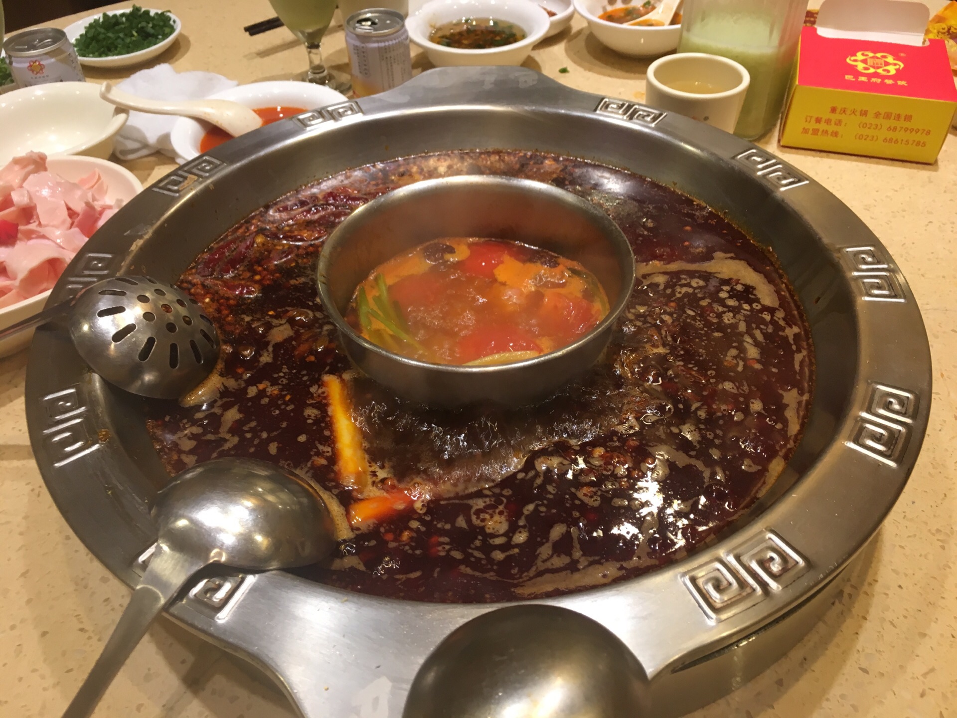 这家在重庆开了20多年,名字叫南方鸭肠王。顾名思义,它家的鸭肠是它的特色。鸭肠处理得很干净,烫的时候不会打结,缠绕,所以可以多烫一会儿。 另外,它家的像牛肉一样一串一串的那个,实际上是驴肉,吃起来味道很好,有弹性。 还有一个方竹笋也不错。