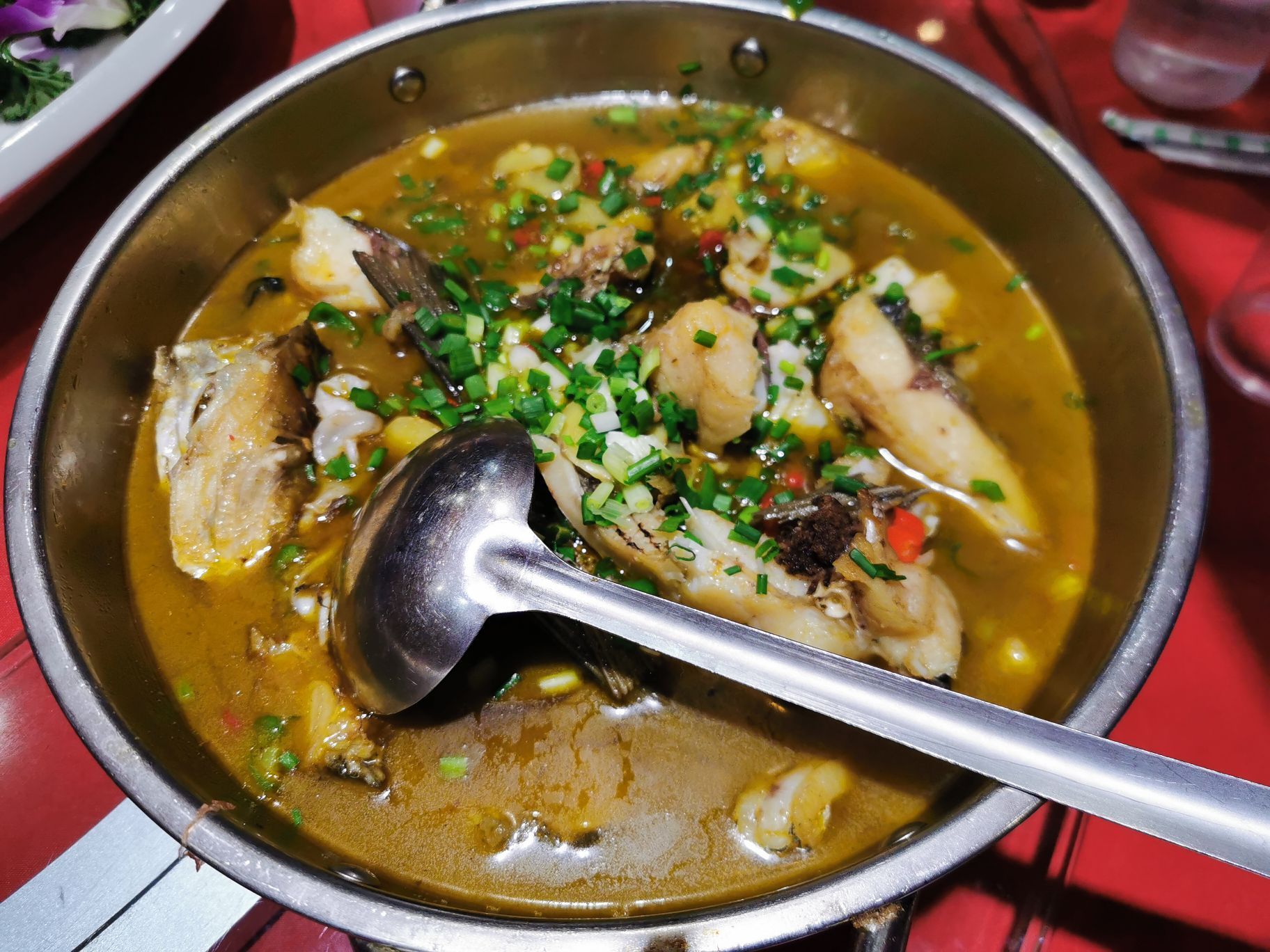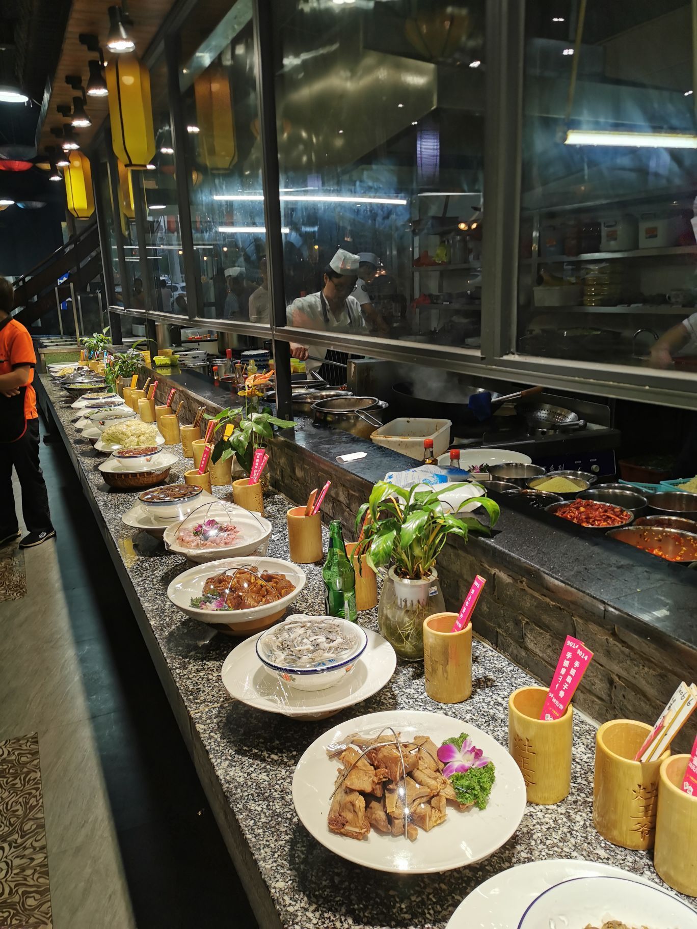 住维也纳火车南站店,眼见周边既无商场,又无饭店,不料朋友带去斜对面,九龙城灶王爷赫然眼前。 湘菜里,除了长沙菜、衡阳菜、常德菜,其他地市的菜缺乏特色。邵阳菜亦如此。不过,进到这家店,有耳目一新之感。敞开式厨房、样品陈列、抽签点菜……这是湘菜比较流行的呈现方式,在广东的湘菜馆更甚,比如厨嫂当家,比较有吸引力。 店菜为灶火土鸡,即利用包厢内的灶具现炒。考虑到油烟重,我们让服务员厨房炒好再端上来。菜做的不错,有意思的是,土鸡感觉再炒一下为好,肉有点硬,相比鱼做的比土鸡号,鱼肉鲜嫩,鱼汤进味,得到一致好评。