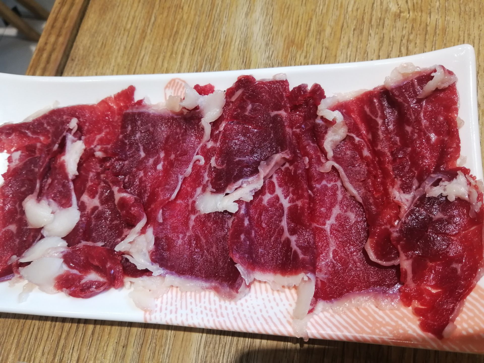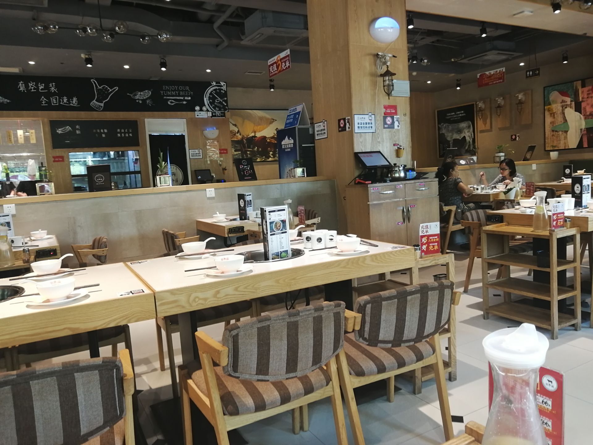 店的位置挺好的,景色不错,室内装修也不错,位置宽敞,但是食材和口味就实在太一般般了。点了三盘牛肉,分别是匙仁,五花趾,吊龙,只有匙仁还算可以,其他两盘一点都不好吃,没有肉味。和在潮汕地区吃的牛肉差远了,最后加了一个牛筋丸,是这顿最棒的,很有弹性。配料种类不多,沙茶酱不够咸,有轻微的辣味,而且没有芝麻酱。整个中午饭市就只有几桌客人,服务员跟客人的数量还差不多