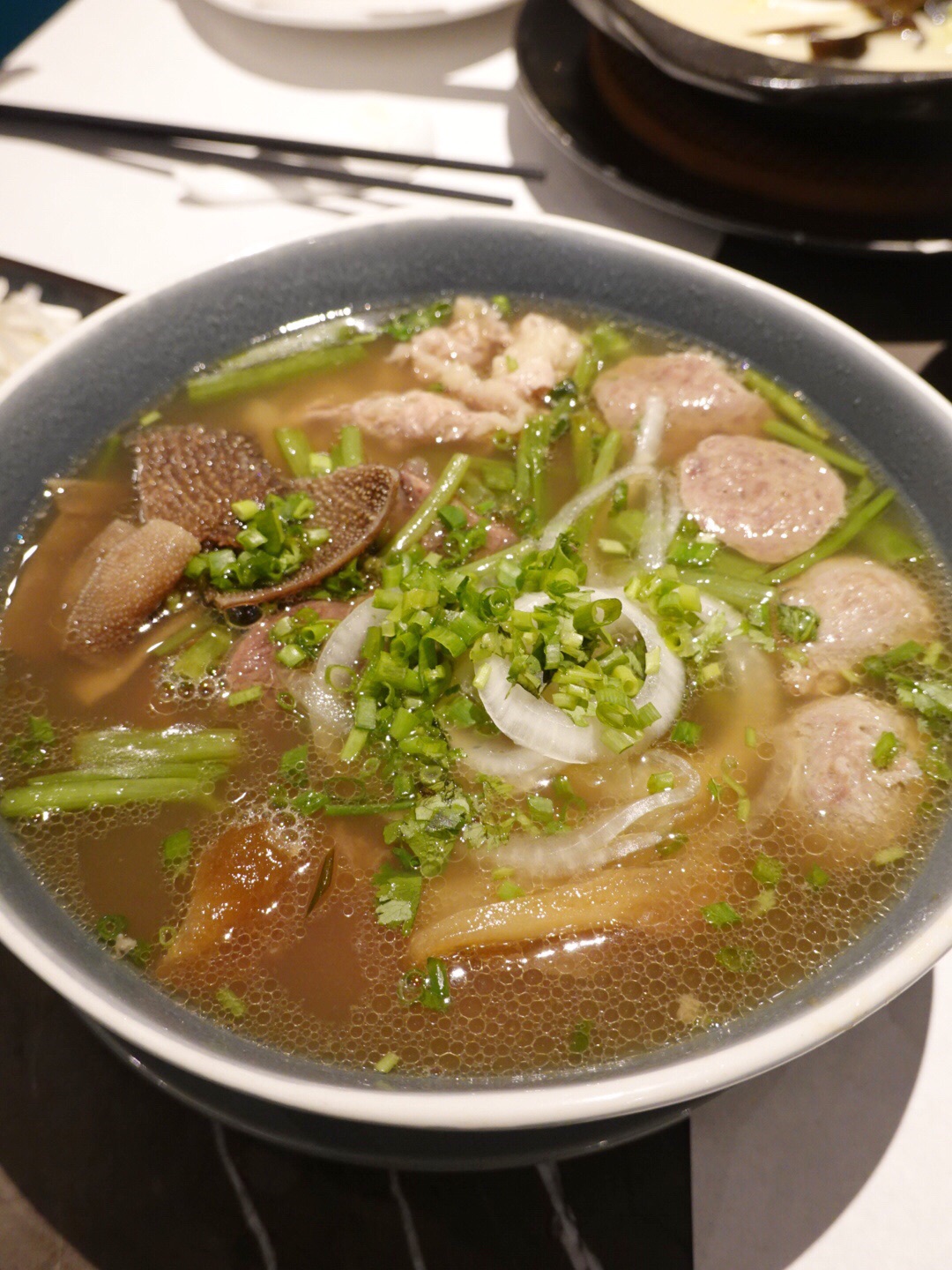 沪上知名的港式餐厅,火了数十年。 在港式料理的基础上融合了不同的风味。 「琵琶鸭」,外皮酥脆,肉质香嫩,配上咸香果酸味的蘸碟,美极了。 「红虾瑶柱炖蛋」,蒸蛋无气泡,鲜香滑嫩;「蒜香贵妃螺」,蒜香浓郁,超大个肉质肥美。 「百里香猪手鸡」,香气扑鼻,色泽诱人,鸡肉入味,猪手醇香软烂。 「无油鲜贝鱼汤煮时蔬」,砂锅内的时蔬吸收鱼汤的精华,十分鲜美儿。 「牛肝菌鸡汤龙须面」,鸡汤与菌鲜美相得益彰,又细又长的面条,形似龙须,筋道爽滑。 没有一道菜是踩雷的,吃了还想再去的店。