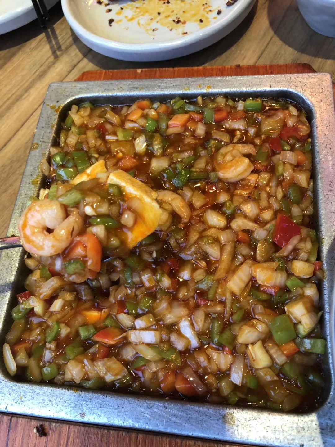 住在边上的希尔顿欢鹏,到了吉林必须体验一下当地的鲜族餐。发现了这家连锁店,服务不错,菜品是结合了朝鲜菜和川菜特色,三个人点了烤明太鱼、海鲜炒饭、水煮牛肉、海鲜豆腐和朝鲜打糕烤明太鱼偏干,推荐海鲜铁板豆腐,炒饭也不错,服务员的服务态度也不错。