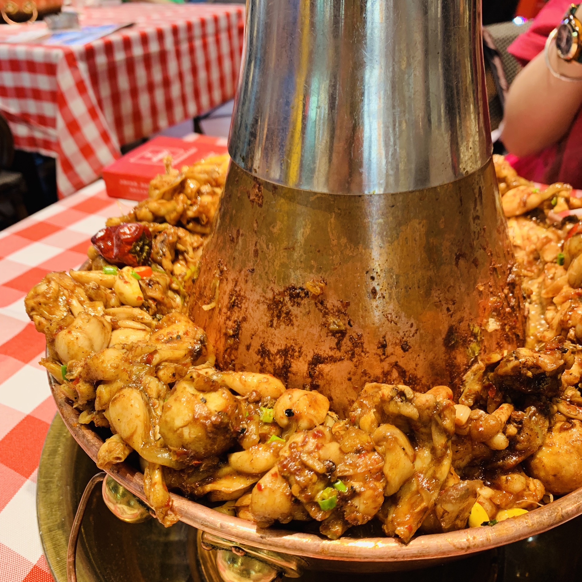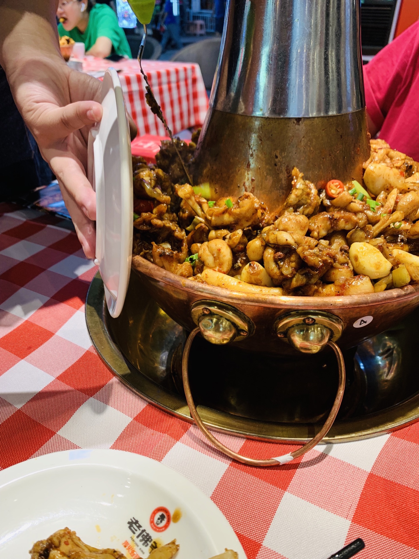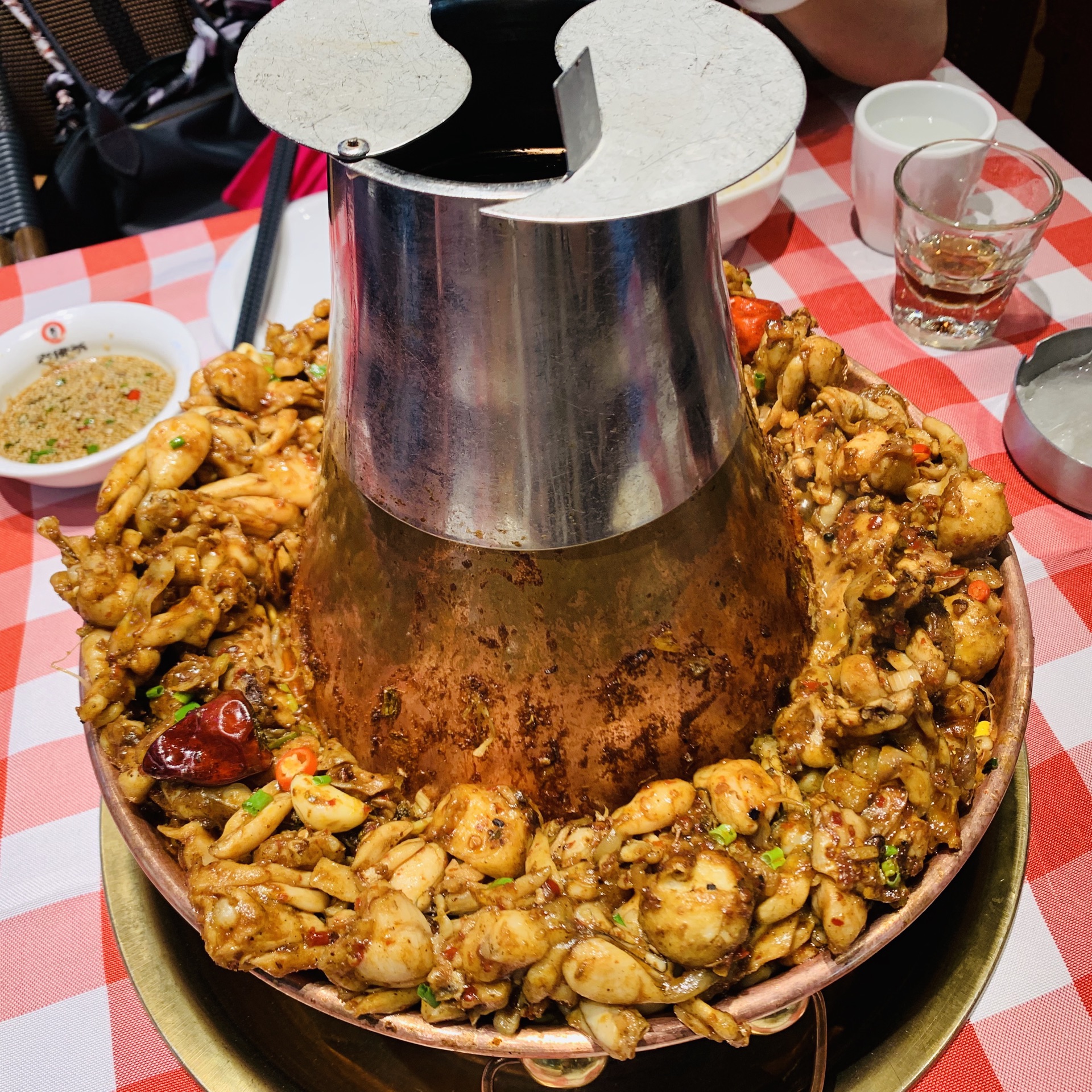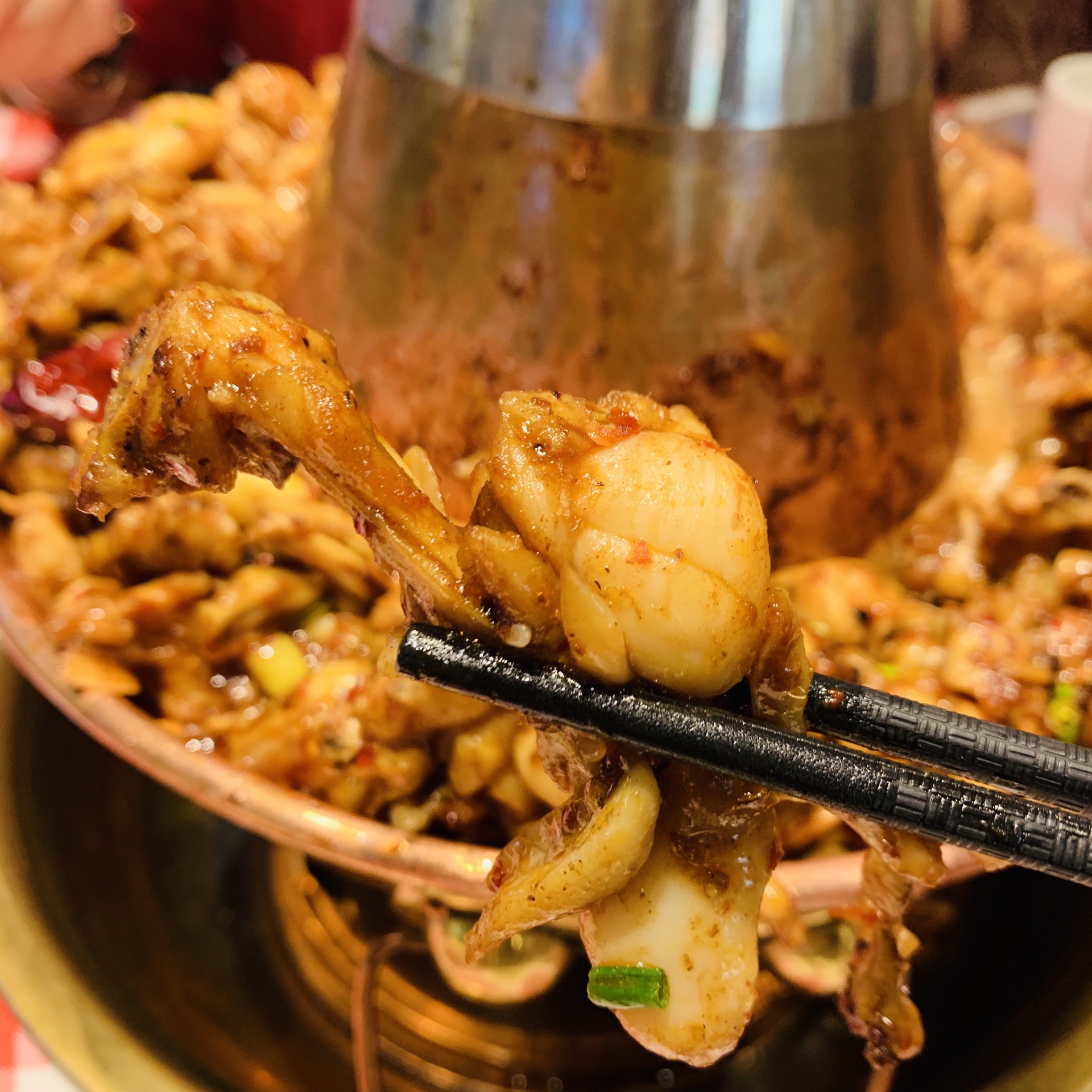在湖里万达金街上,靠近周麻婆这里。现在这种天气坐外面真是太舒服了,凉风习习。两个人吃一层蛙锅,吃到最后还是有些称的。蛙肉基本都吃完了。配菜还有剩,根本无需再加其他菜了。菜的份量非常足,点的微辣口味,也很合适,吃到最后受不了,可以加点清汤。肉质也很嫩,很厚。配菜有豆皮,土豆,萝卜条,年糕,菌菇等等。搭配的米饭还加了玉米碎,很好。服务也很好。六点多到的时候,已经基本客满了,再往后就开始等位了。生意很好。看到人家吃三层的,很霸气。