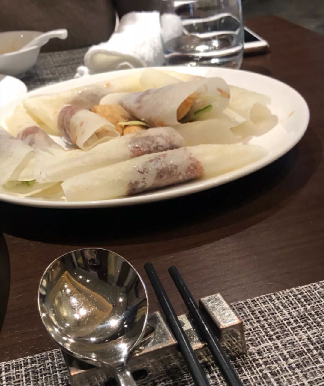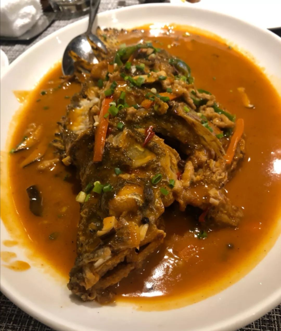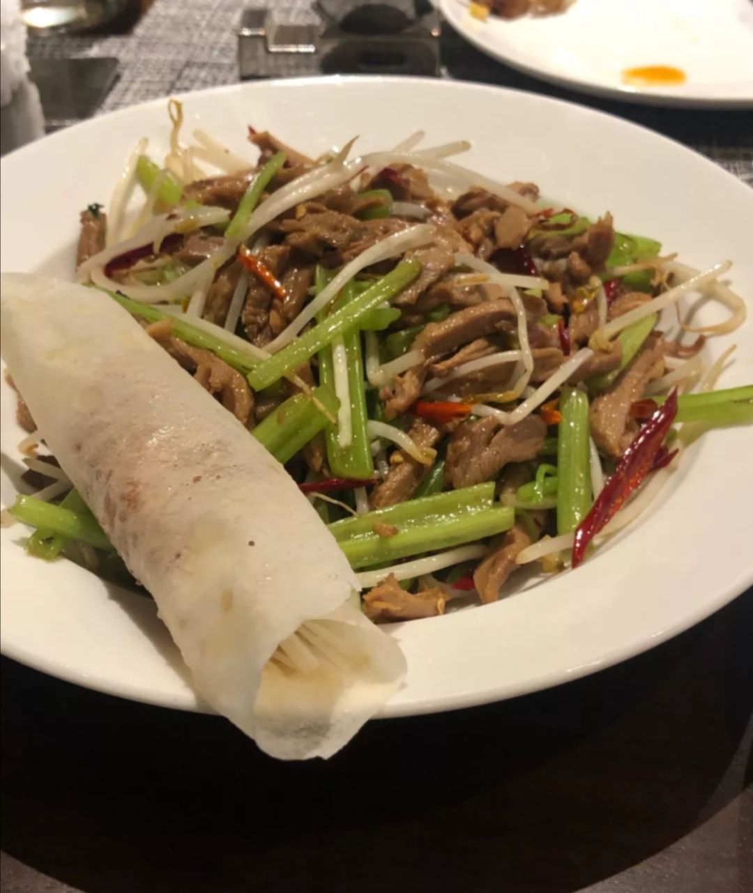 片皮鸭,一鸭两吃,鸭皮挺肥的,不过包着春皮挺好吃的。 清炒海苔,真的挺嫩的片皮鸭,一鸭两吃,鸭皮挺肥的,不过包着春皮挺好吃的。 炭烧牛仔骨,肉很嫩,味道也在线,保持了星级酒店的水准。 干烧七星鲈鱼,味道新颖,挺喜欢的。 清炒海苔,真的挺嫩的
