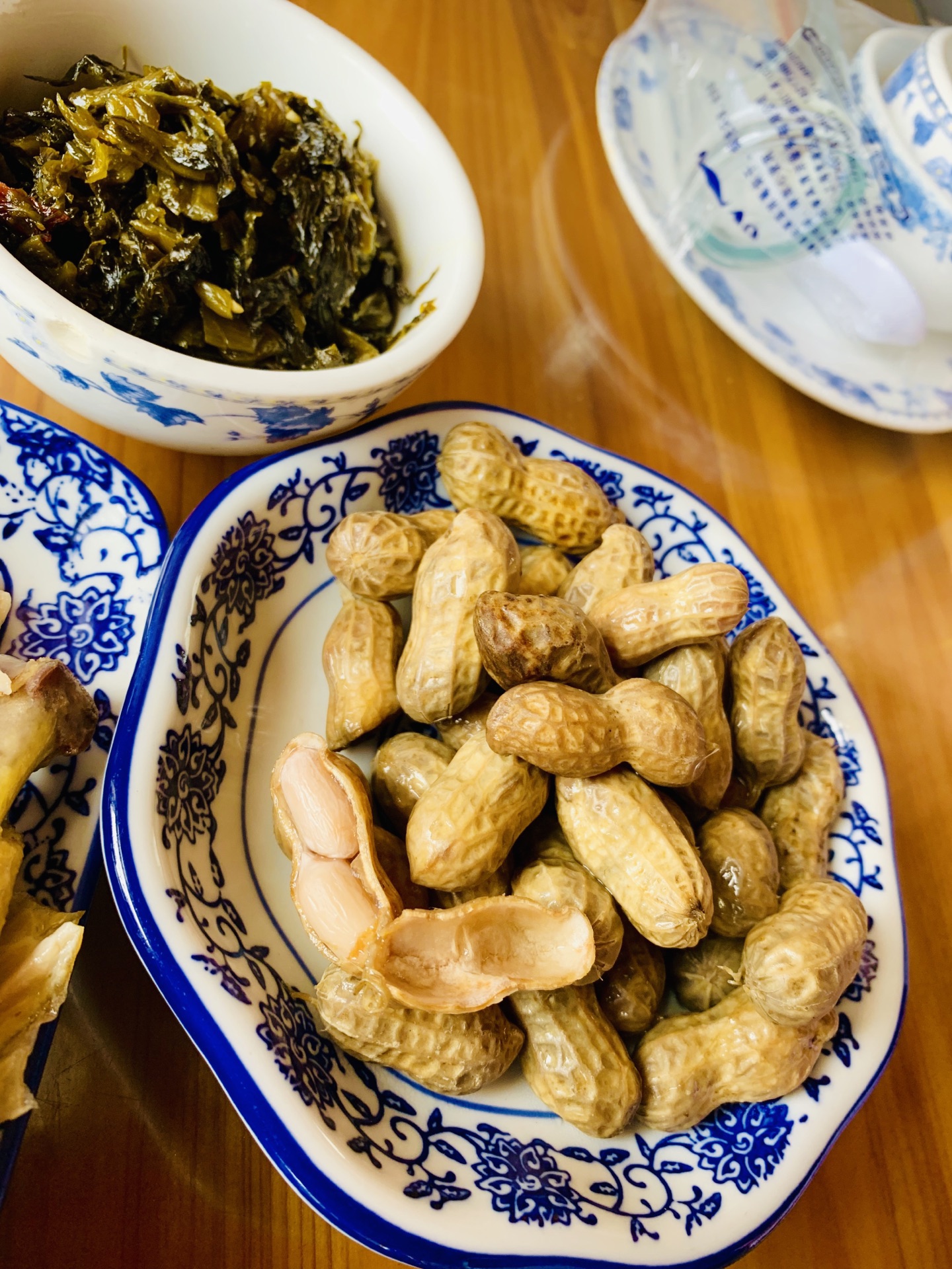 ...,咸菜和花生米,不得不提这个咸菜腌制的特别好吃,说是家里种的菜做的,为了解馋还最后打包一份带回