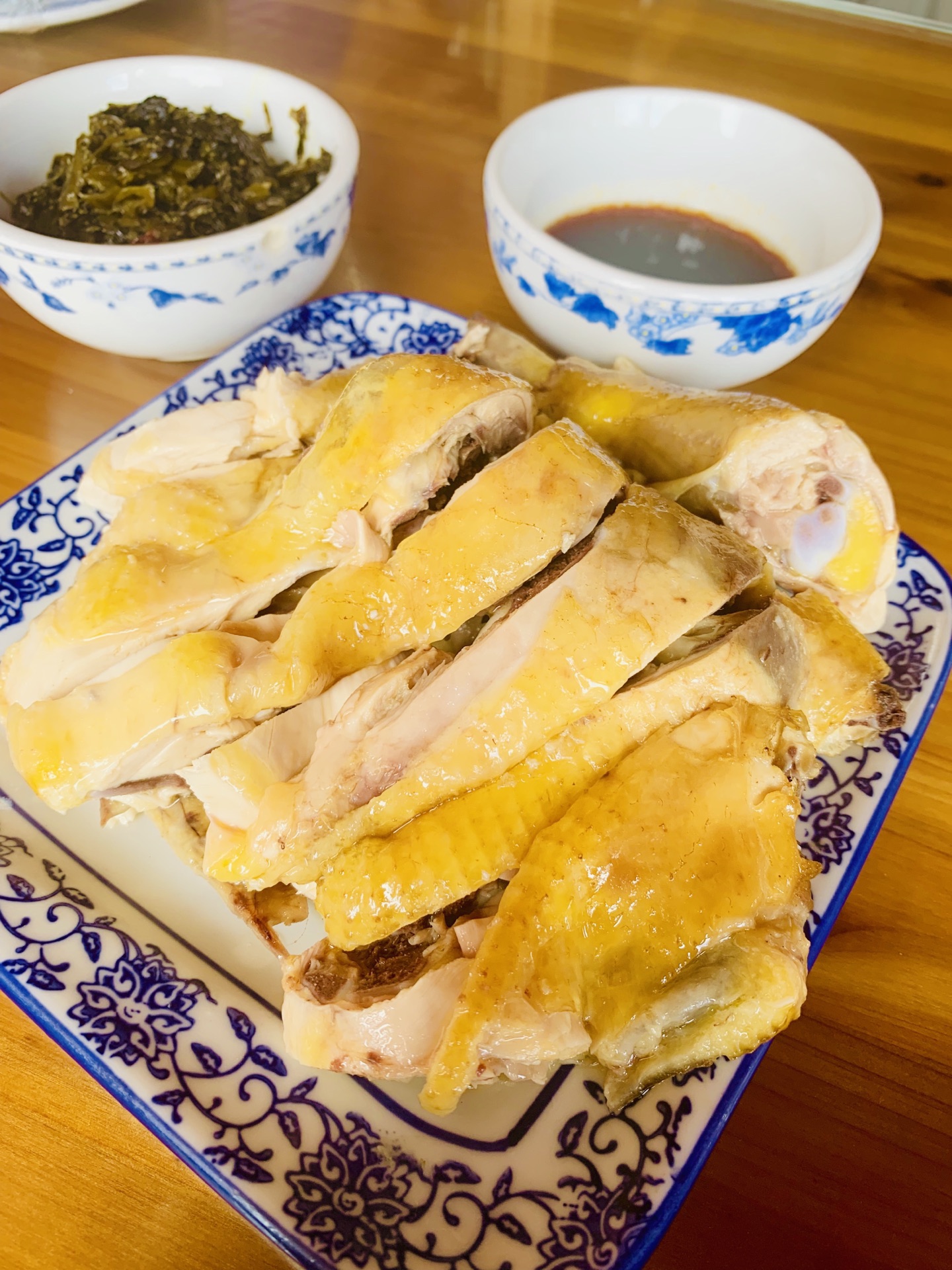一家大门非常不好找的网红小店。农家餐厅的环境都差不多,可以算整洁。点了几道这里的特色菜,每家餐厅都有,就是看品质了。店家送上两份小菜,咸菜和花生米,不得不提这个咸菜腌制的特别好吃,说是家里种的菜做的,为了解馋还最后打包一份带回。白斩鸡这里都是小草鸡,不是外面那种很嫩的,但特别鲜香,只要一点酱油调味即可。粽叶肉要趁热吃,五花肉肥瘦相间,酥嫩,比红烧肉多了一份粽叶香。白水鱼是这里特色活鲜,没有一点泥土腥,就是火候过了点,肉皮全脱离。田螺塞肉从小爱吃,这次的酱料勾芡上有点咸焦了,没有想想的好。豆腐蚌肉也是特色,蚌肉有点偏老,的确难处理。店家客气问了菜品,后来知道大厨有时请假,临时厨师做的。所以没有体验到网评那么好,总统菜的价格也比其它店稍贵。期待下回大厨手艺吧