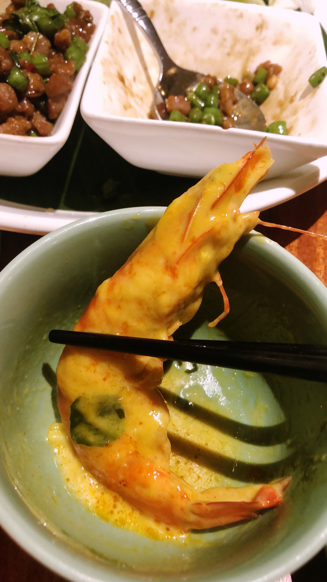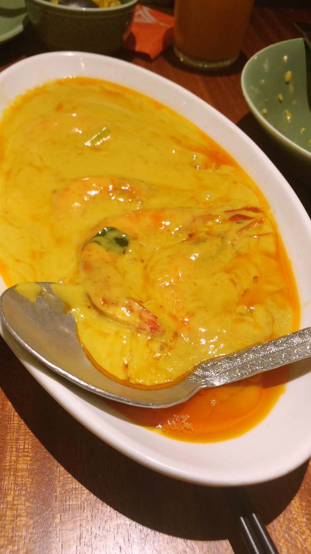 虾汤浇饭特别好吃。香草肉碎就没那么好吃。咖喱虾的味道很不错。柠檬鱼酸酸的味道不错。椰浆比较浓咖喱虾的味道很不错。椰浆比较浓。虾肉比较紧实。虾汤浇饭特别好吃。柠檬鱼酸酸的味道不错。香草肉碎就没那么好吃。普普通通,餐厅服务员的服务还是很不错的。