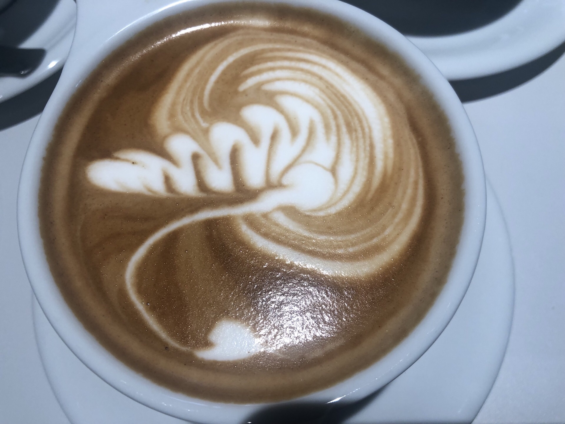 当火锅遇见咖啡,一点也不违和。镋钯街的雷门火锅,外观红楼,一楼咖啡,二楼火锅,大堂很宽敞,闻不到油腻腻的味道。 扫码点单,线上点咖啡,下单后会有服务人员来验券,小哥哥的态度好好一点不歧视秒杀顾客。虽然是秒杀但咖啡品质,一点不打折。咖啡师和服务员小姐姐态度很好,推荐