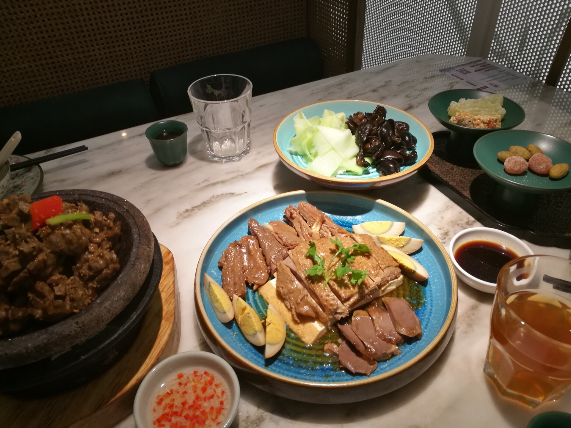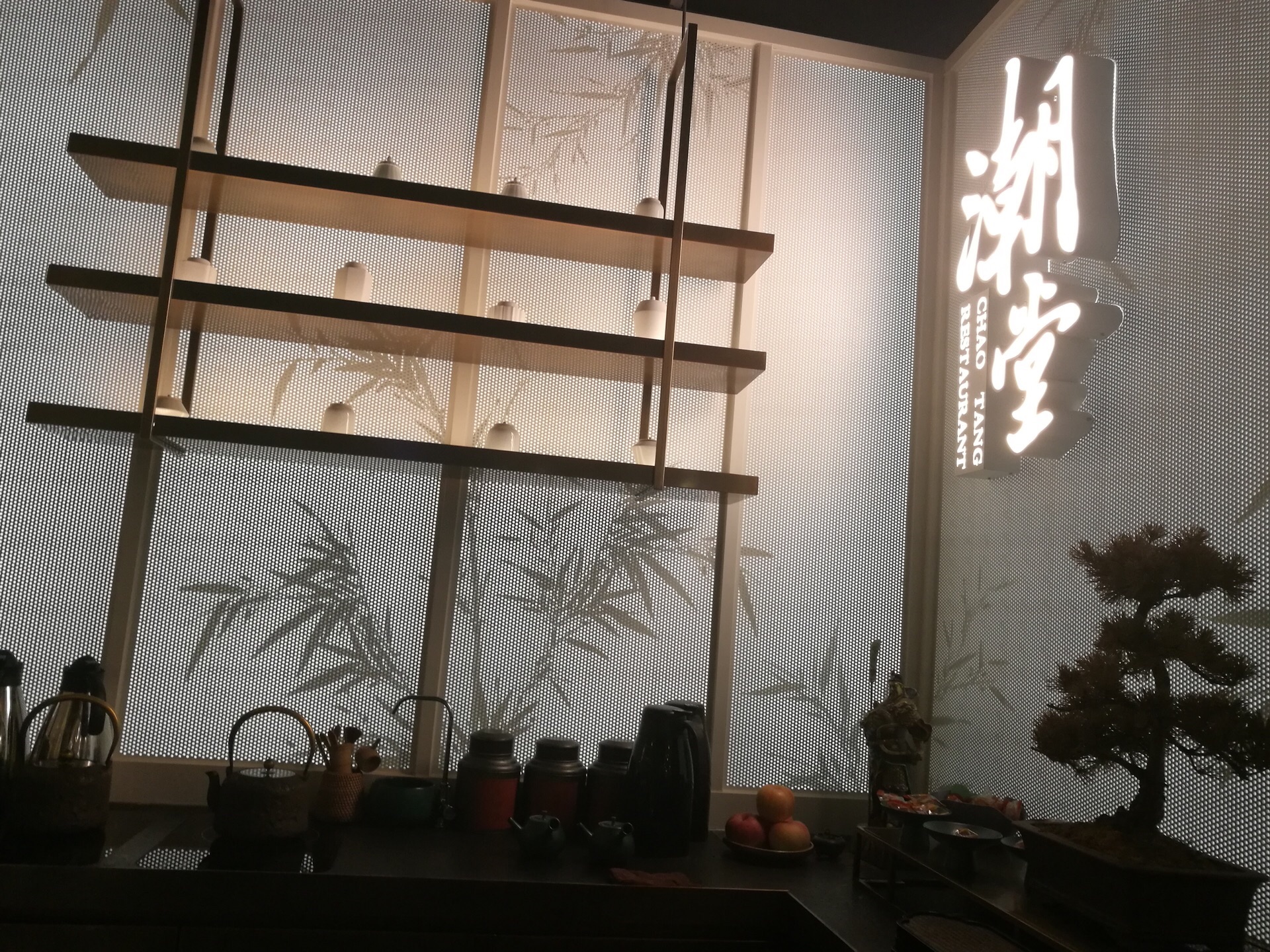 这家开在重新翻新后的恒隆广场,环境很赞,没想到晚市也这么多人。说下菜品吧,手打牛肉丸很多汁,海鲜粥量大料足,卤水拼盘也不错,芋泥百果细腻柔滑,甜度刚好。当然也有可以再改进的地方,芥末木耳中的木耳要是用小朵的秋木耳就提升品质了,潮州蚝烙的黑胡椒放的有点多了。整体感觉不错,环境雅致,服务热情周到,虽然生意很忙,还是有条不紊的为食客按标准服务。