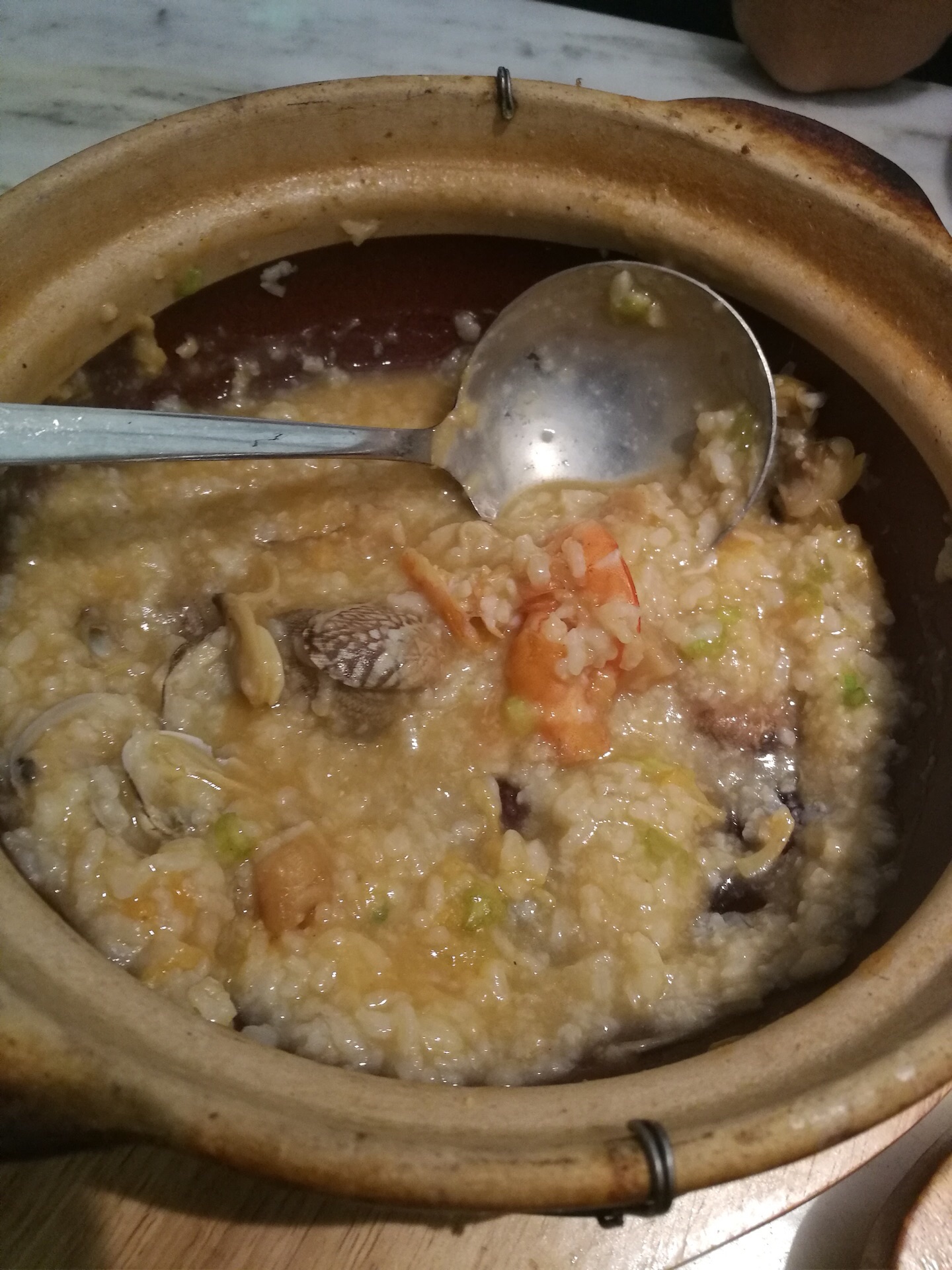 说下菜品吧,手打牛肉丸很多汁,海鲜粥量大料足,卤水拼盘也不错,芋泥百果细腻柔滑,甜度刚好