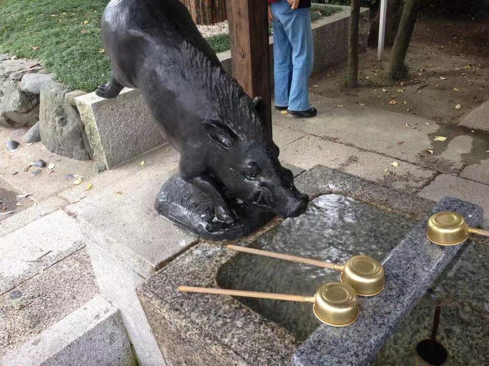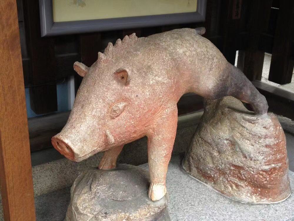 这是一个离皇宫几步的非常受当地人欢迎的小神社。它献身于于野猪,因为它们曾经救了一个受远重伤的武士然后走了许多公里把他带到这个神社,在这里武士受伤的腿和脚被成功的治好。因此,它到处都是足疗。这里有成百上千的野猪的雕塑、画像和装饰品。漂亮的小珍宝!