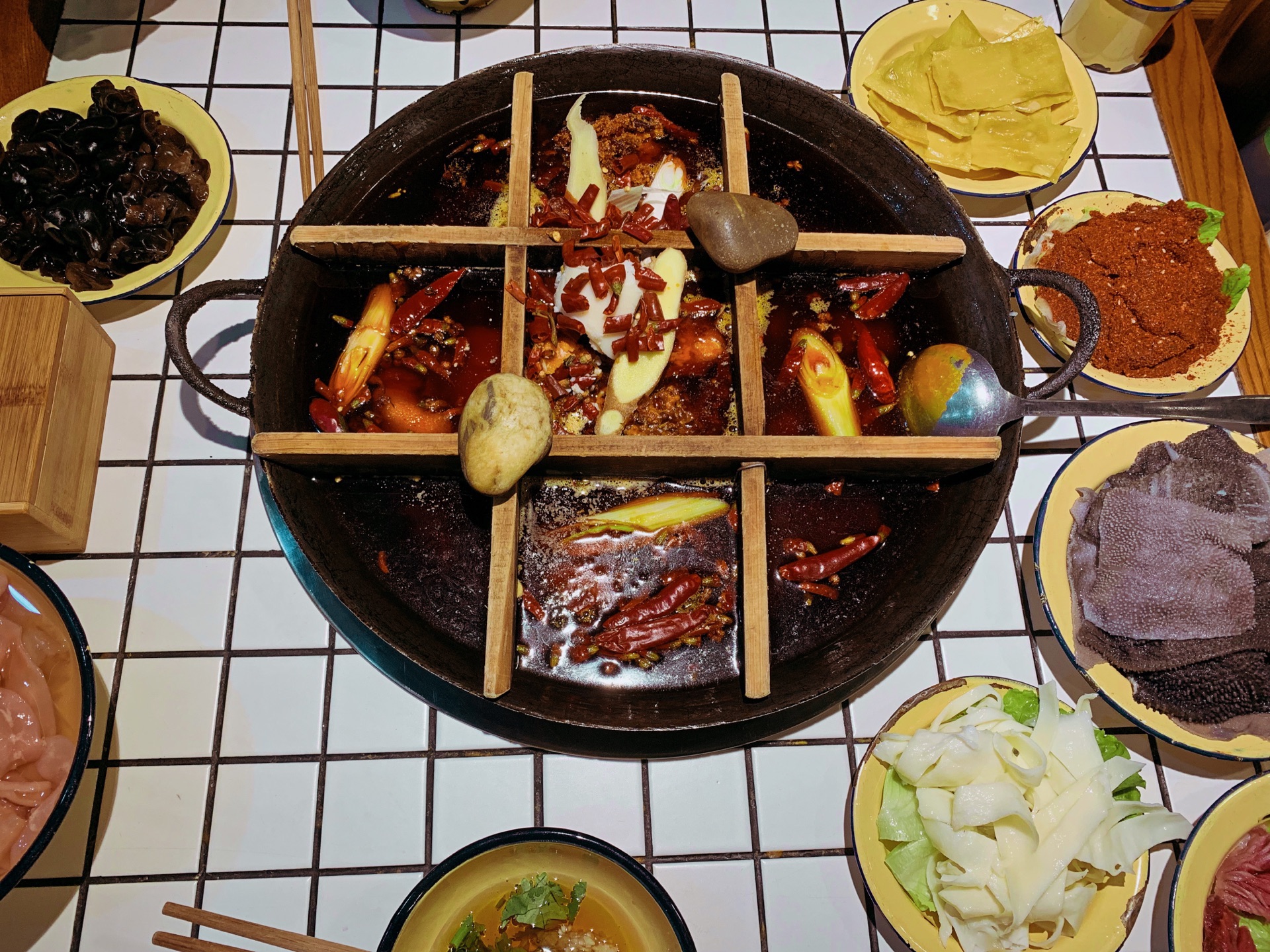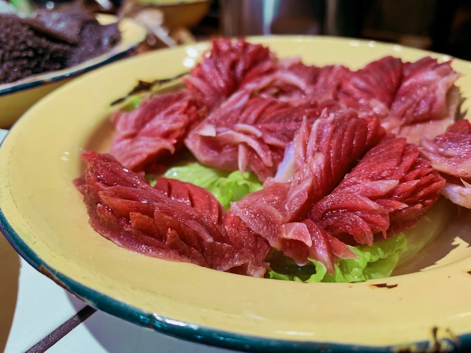 菜品品种多,而且食材非常新鲜,分量也很足。 鱼籽虾滑是特色,大块的虾肉吃起来弹性十足。 哇这个鸭血真的是很新鲜了,而且入口特别嫩!!一点腥味都没有,怎么可以这么好吃~ 手撕毛肚,他家的毛肚很新鲜,在锅里烫上个十来秒捞出,表皮微微起泡,入口爽脆无比。 小酥肉也是一定要趁热吃,炸的外酥里嫩口感一级棒 猪黄喉,每次来必点的菜品,黄喉都是选用的上好的,煮久了也会很脆。 鸭肠,每一根都十分均匀,夹着烫才能把握好火候,入口十分爽脆。 嫩牛肉片,肉的口感超赞,入口滑而嫩,妈妈超爱这道菜,喜欢辣味的朋友还可以尝试一下双椒牛肉,也是绝对的霸道。