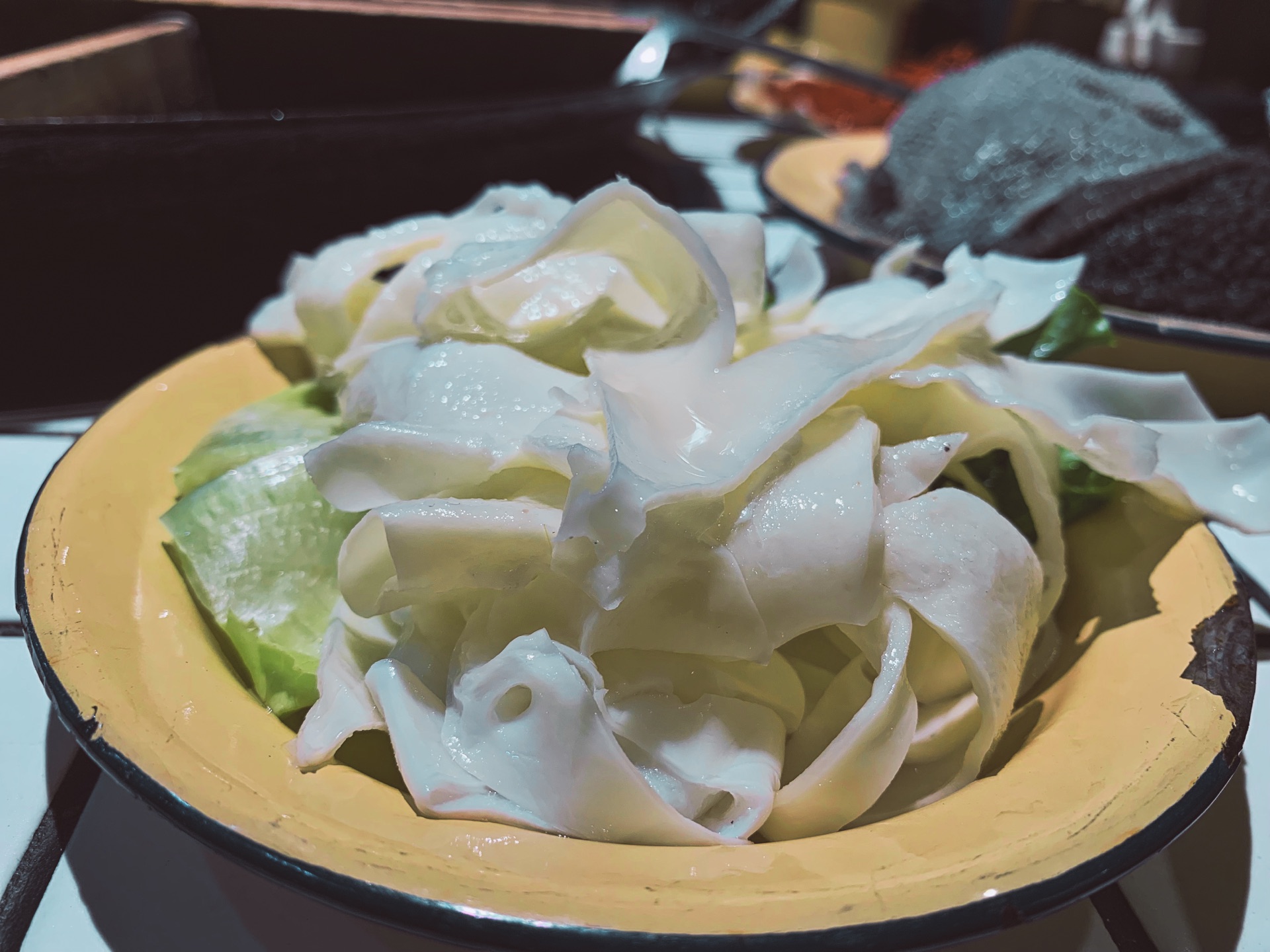 ...可以这么好吃~ 手撕毛肚,他家的毛肚很新鲜,在锅里烫上个十来秒捞出,表皮微微起泡,入口爽脆无比