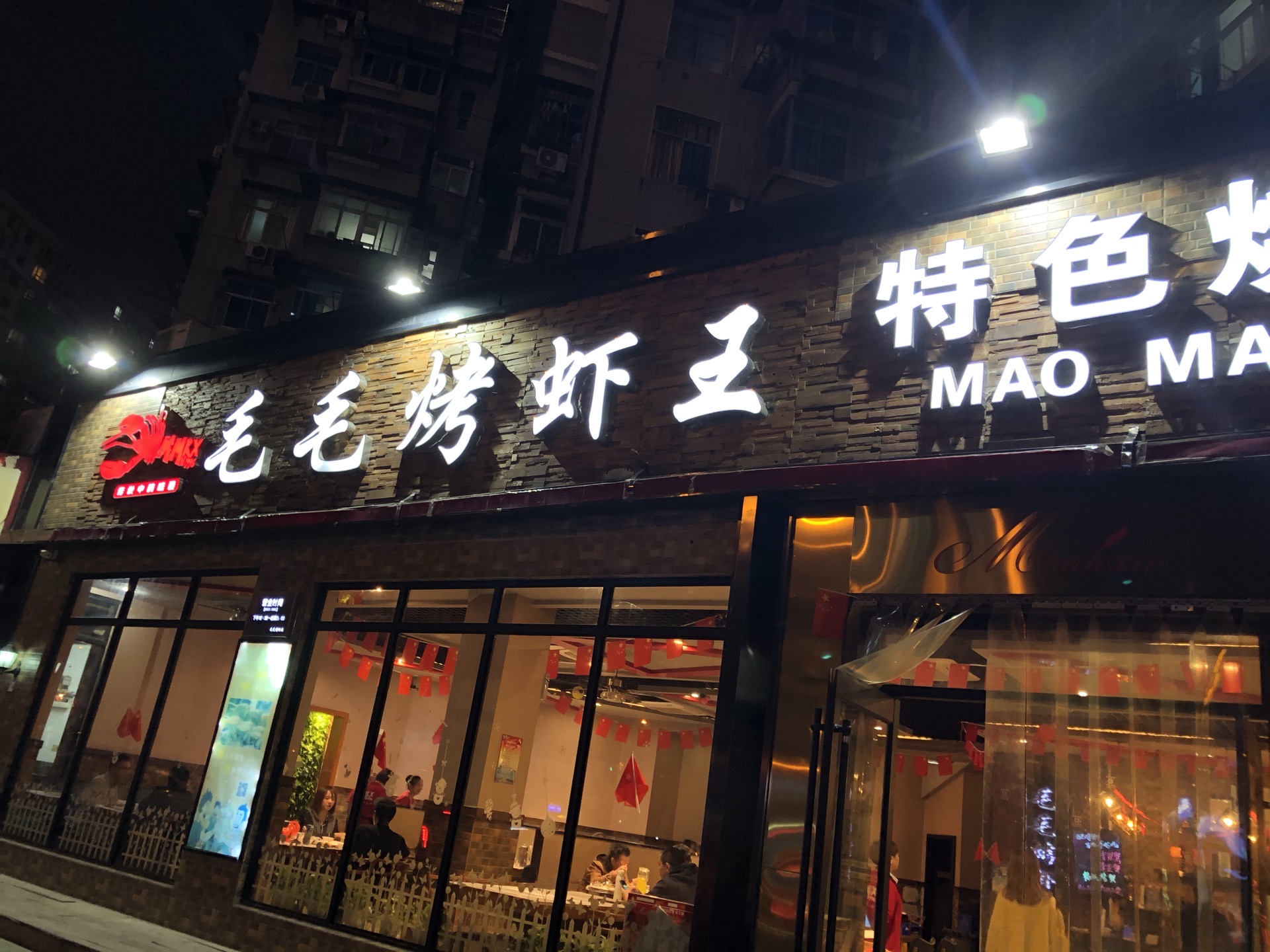 ...它们家的烤串很棒,环境也不错,干净整洁,最棒的是它们家的桶装啤酒,味醇厚、爽口,服务态度也超好第一次到大武汉吃的第一餐就是毛毛烤虾王,它们家的烤串很棒,环境也不错,干净整洁,最棒的是它们家的桶装啤酒,味醇厚、爽口,服务态度也超好。