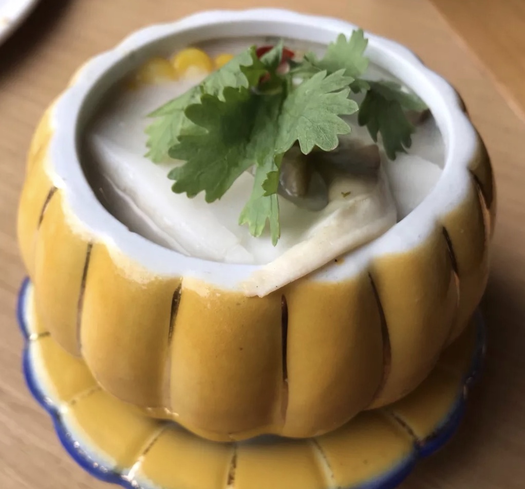 「椰肉炖母鸡」和海南椰子鸡较为不同,里面有香茅、小米椒等调味料,整体口味个人不是很能接受,偏刺激