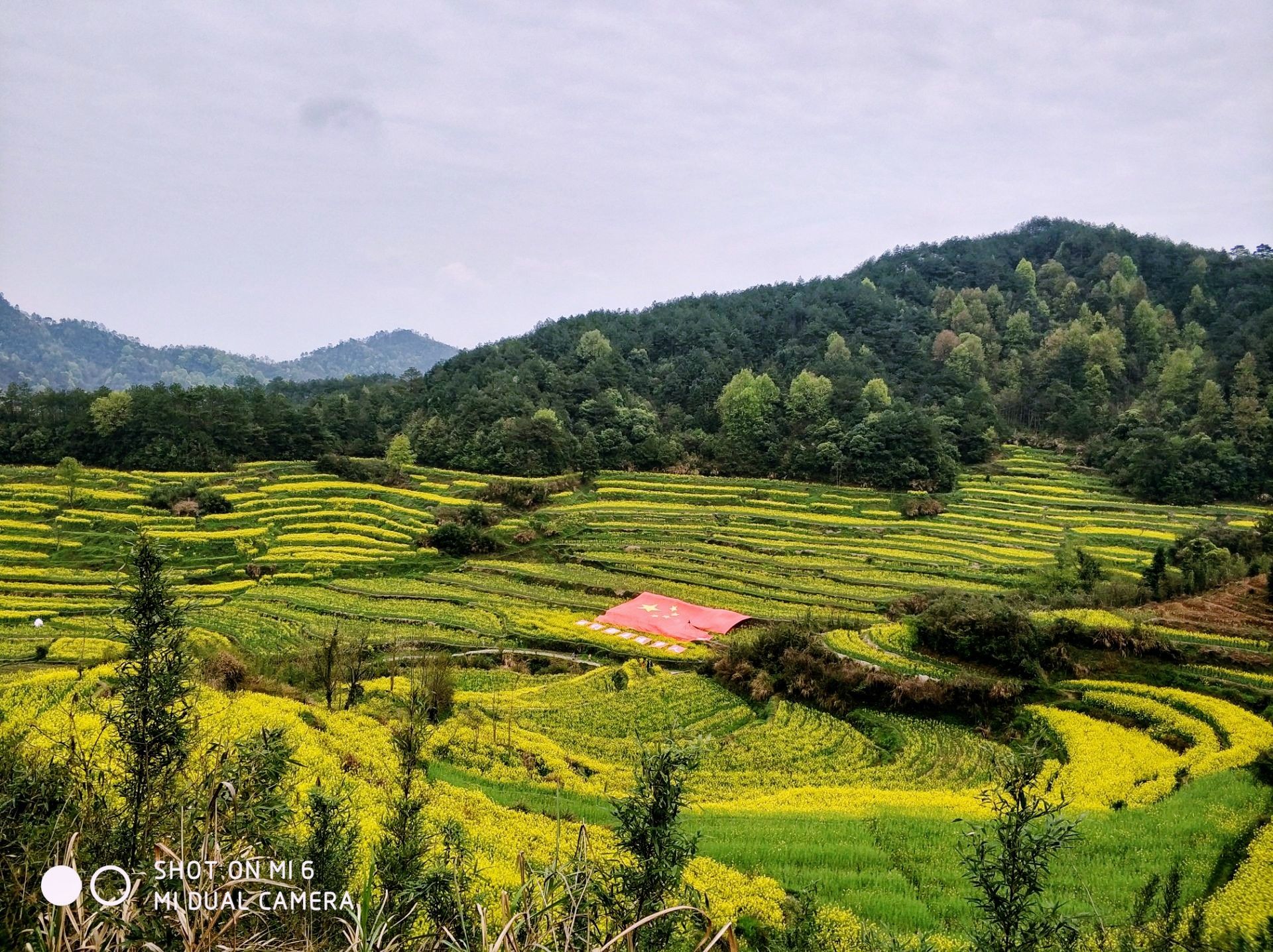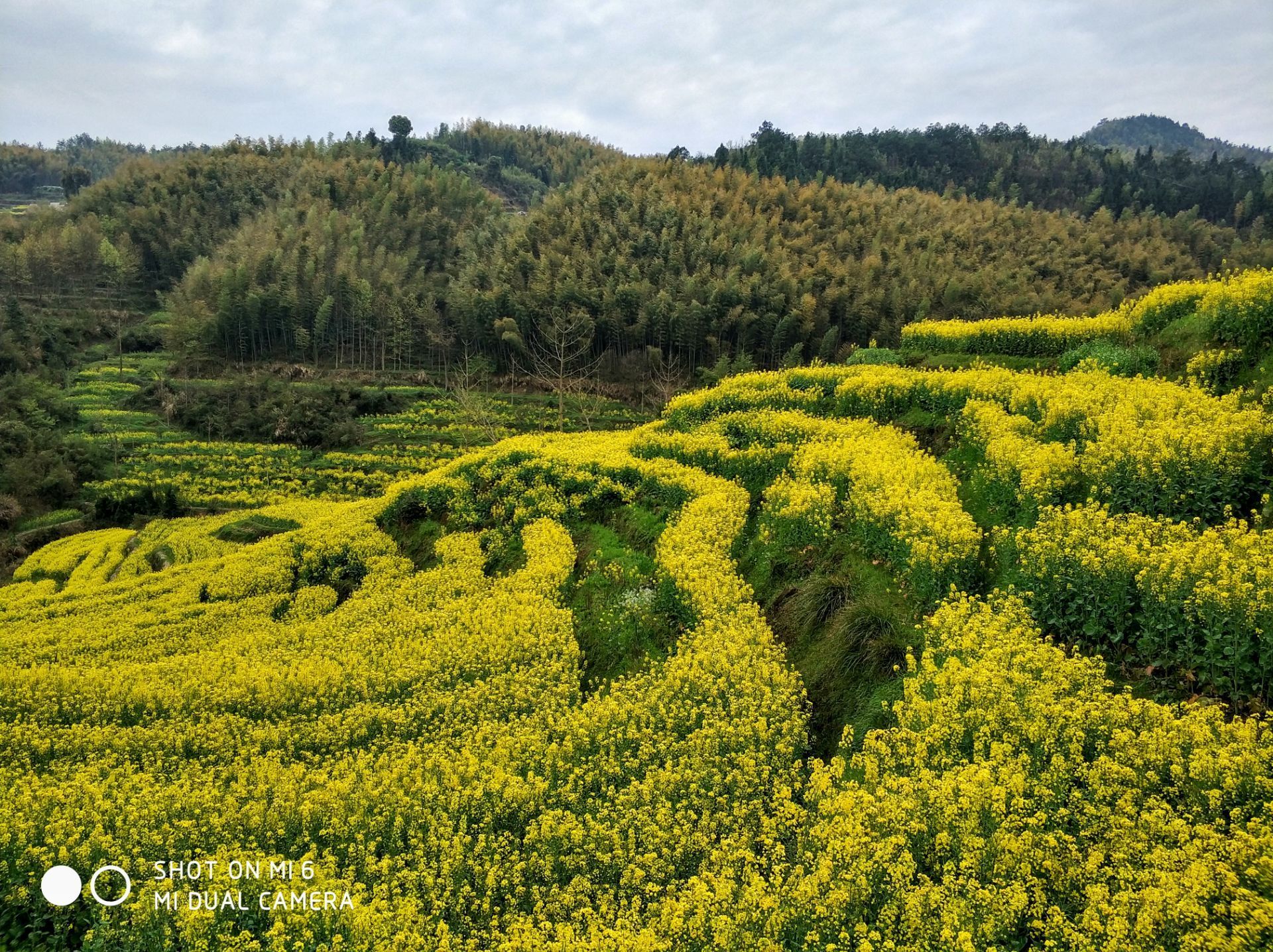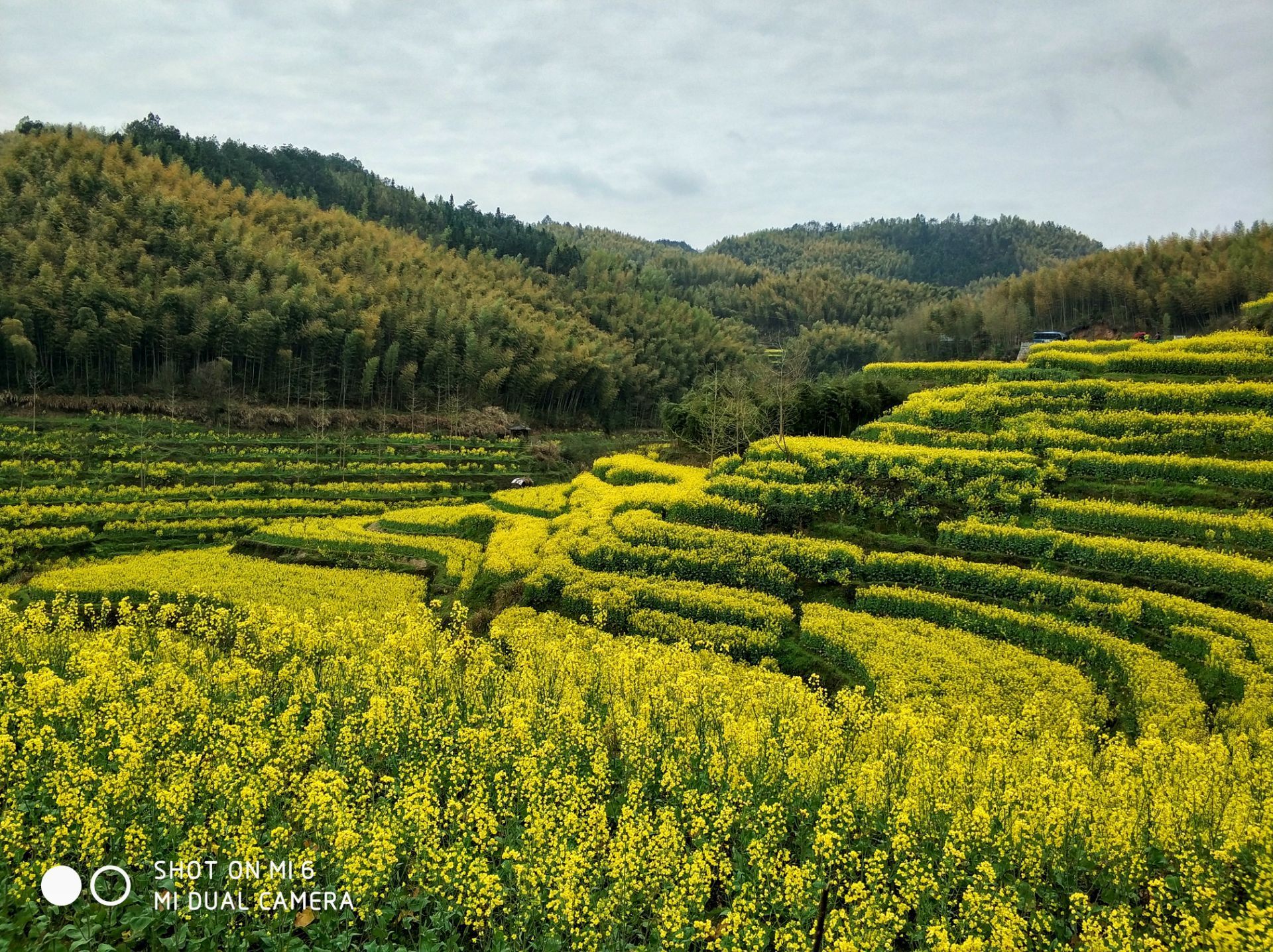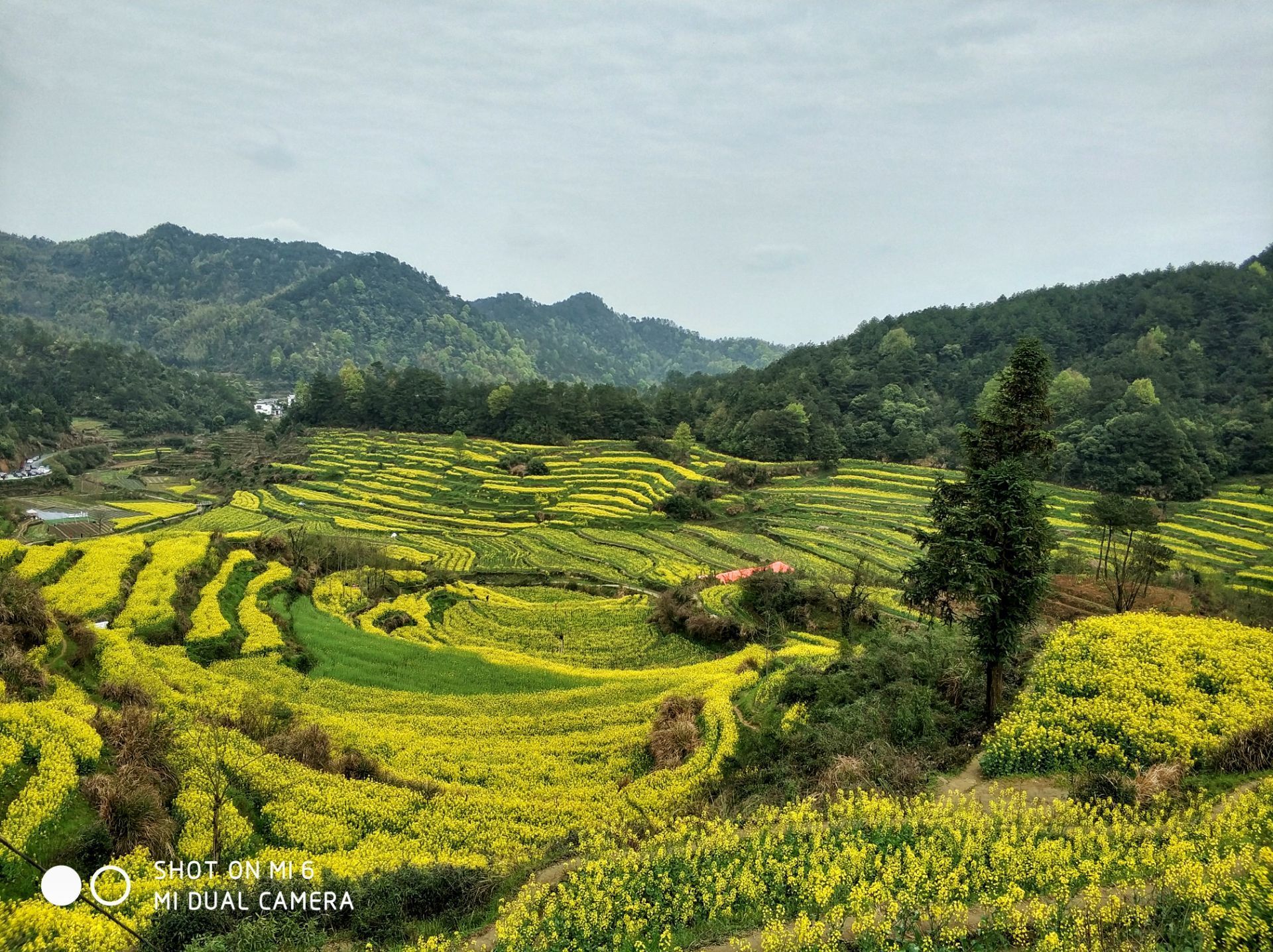 在皖南黄山市徽州区呈坎镇境内隐藏着一个叫灵山的地方,山坳里的油菜花、梯田半腰上的桃花、和远处的粉墙黛瓦,构成了一派田园牧歌的美丽景象。这里保存完整的明代古梯田一千亩,竹海三千亩,自然景观独特,生态环境绝佳。