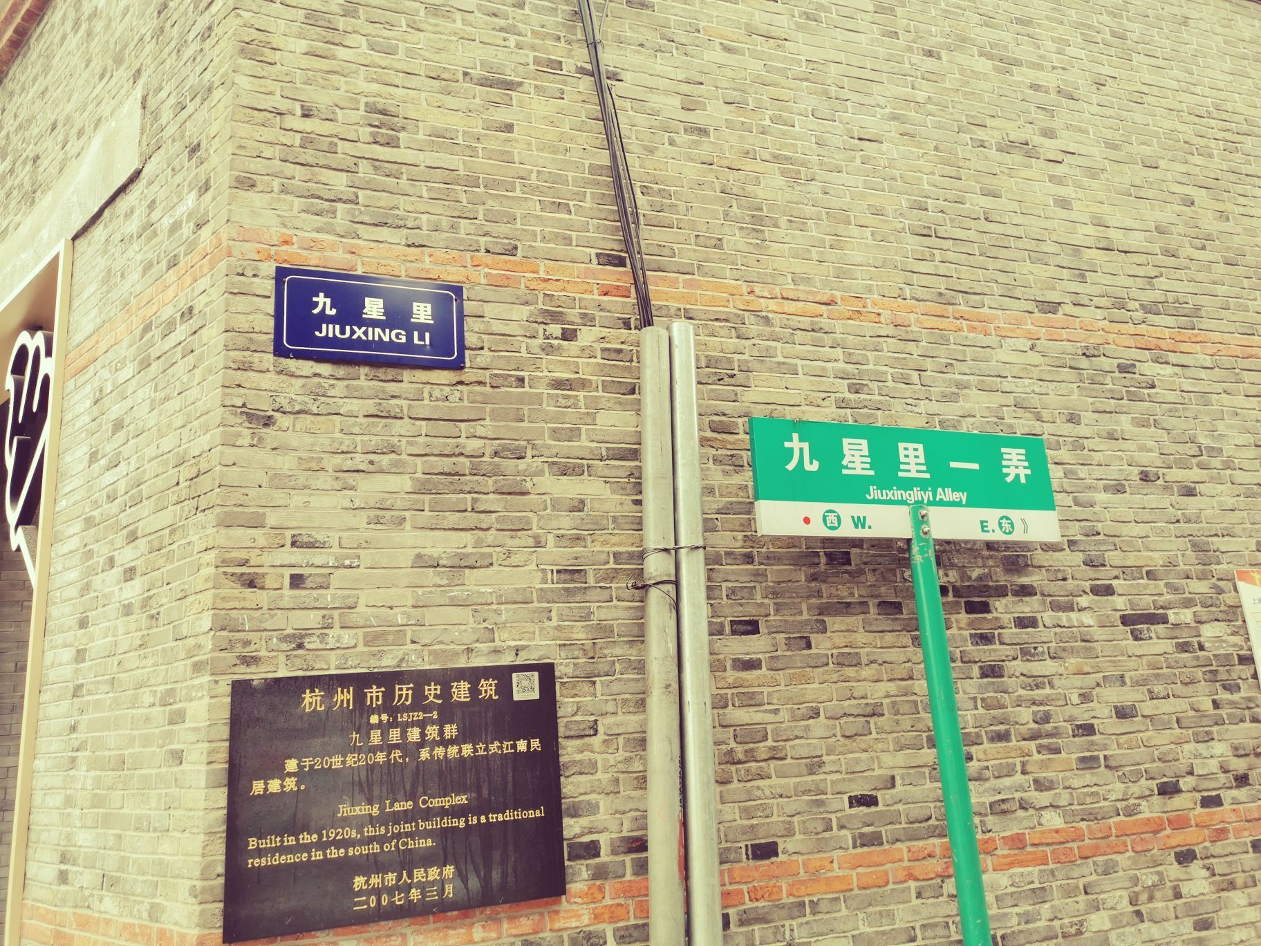 九星里,东坡路与长生路交叉口,寻寻觅觅,老式弄堂风景。 中西合璧联排式建筑,镌刻近百年历史传奇。 喧嚣的湖滨路,穿梭的人群,忍不住停驻,它沧桑的美丽,斑驳的回忆,低调却不至于低到尘埃里,高傲却矜持在骨子里。 与生俱来的贵气,洗净百年铅华,面对时代浪潮,不随波逐流,不低眉折腰,含泪啜泣后,也端庄地微笑,执着地守护。 九星里,望穿秋水找到你,蓦然回首都是你。
