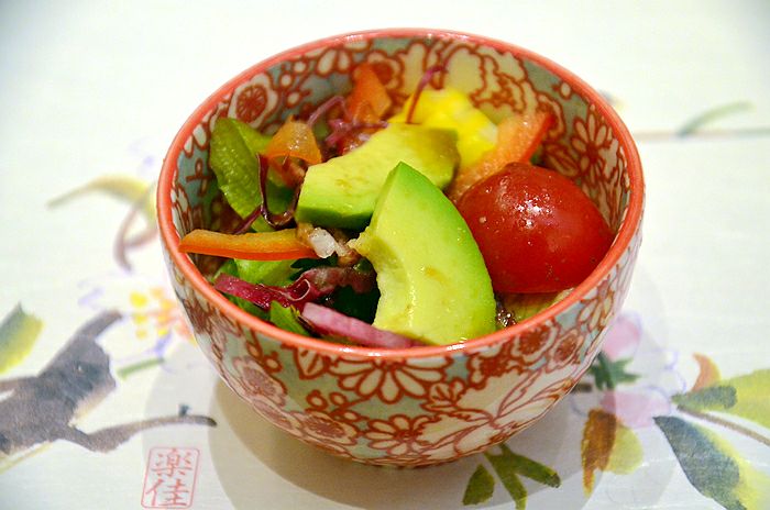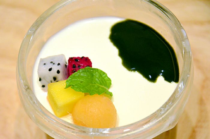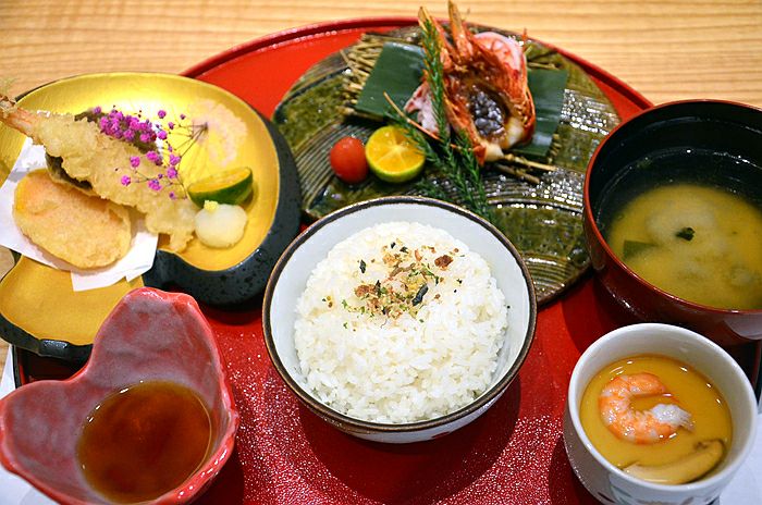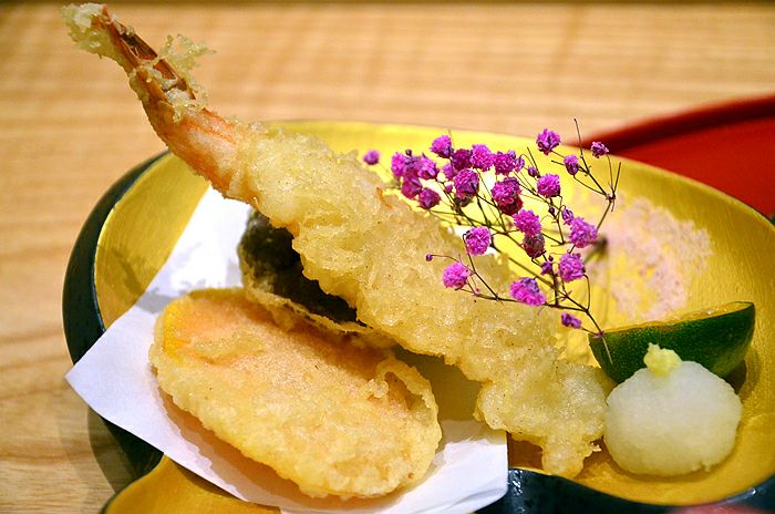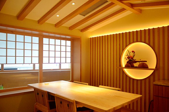 菡SUSHI我以前吃过几次,印象很好,环境、食材、服务、性价比都很棒,听说最近重新装修后开业,赶快去看看有些什么升级。 中午来到菡,刚到门口我就震惊了,好美的环境呀,有枫树红叶,有怪石流水,有青翠草地,最可爱的是还卧着一只憨态可掬的猫,方寸之间设计成一方清幽的小天地,真是太有意境了。 进入餐厅,内部环境也大有不同,多了好几个宽敞明亮清新优雅的包厢,日式风味十足,在这包厢用餐感觉一定很棒。 不过我还是选择坐吧台,中午餐厅提供三种定食,价格都是298,内容侧重不同,我选择了当季鲜鱼和定食,很快菜就上桌啦,服务员细致的介绍了菜品和该如何吃,周到大方。 首先是小菜、沙拉、鲍鱼渍煮、当季鲜鱼刺身: 小菜,鲜美弹牙的鱿鱼,胃口大开。 沙拉,有多种新鲜水灵的蔬菜和水果组成,五彩缤纷,清新爽口。 鲍鱼渍煮,大大的一颗鲍鱼切成几块,口感饱满弹牙,滋味鲜美入味,回味无穷。 当季鲜鱼刺身,好几种当季海鲜刺身组成,每次不一定一样,我的这份有鱼有虾有贝,品质都很优秀,口感味道都很赞,令人陶醉。 接下来是蒸蛋、天妇罗、味增汤、烤虾、米饭: 蒸蛋,柔滑细腻,蛋香浓郁,还加入了大颗的虾仁和肉泥,滋味更上一层楼。 天妇罗,金黄清亮,香酥鲜美,炸的火候恰到好处,很有水准。 味增汤,鲜美醇厚,热乎乎喝上一碗,十分舒畅。 烤虾,个头硕大,虾肉紧实弹牙,虾头中有满满的虾膏,烤的香喷喷,爱不释手。 米饭,颗粒饱满,晶莹剔透,清香可口。 最后是甜品,抹茶奶冻,抹茶的清香加上奶冻的香甜,结合的天衣无缝,刮的干干净净还意犹未尽。 完美的一餐结束了,菡重装升级后果然不同凡响,更加让人流连忘返。