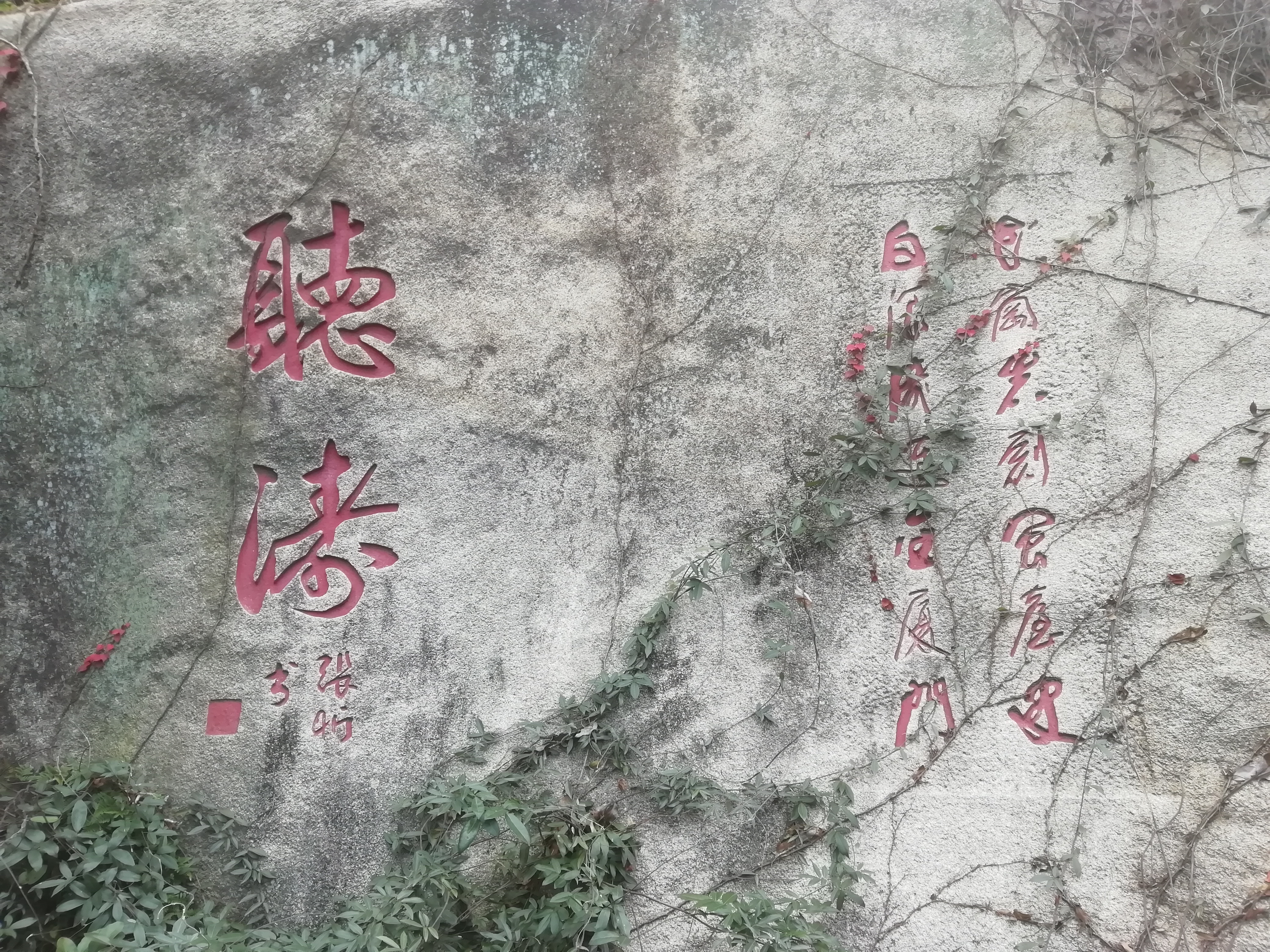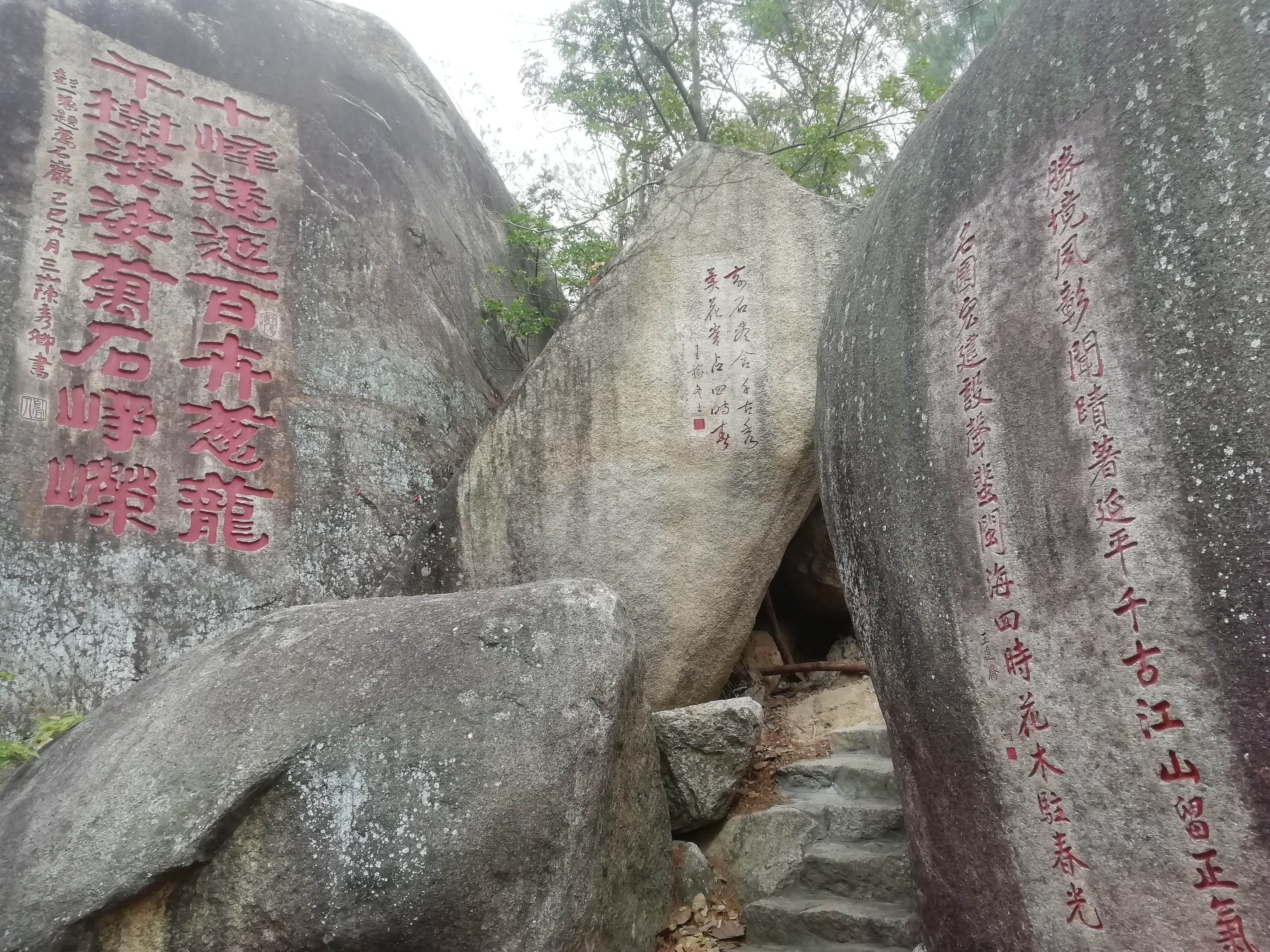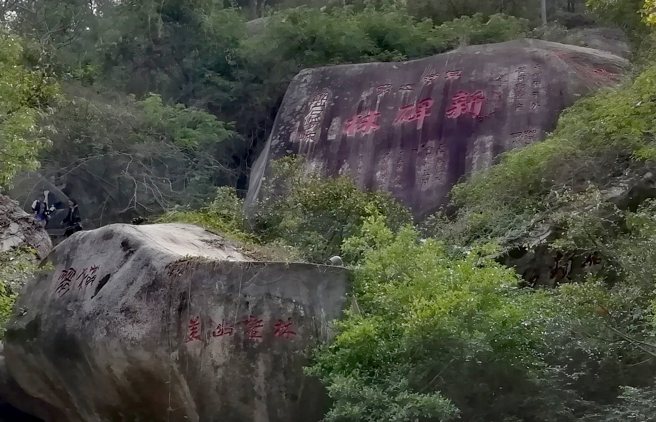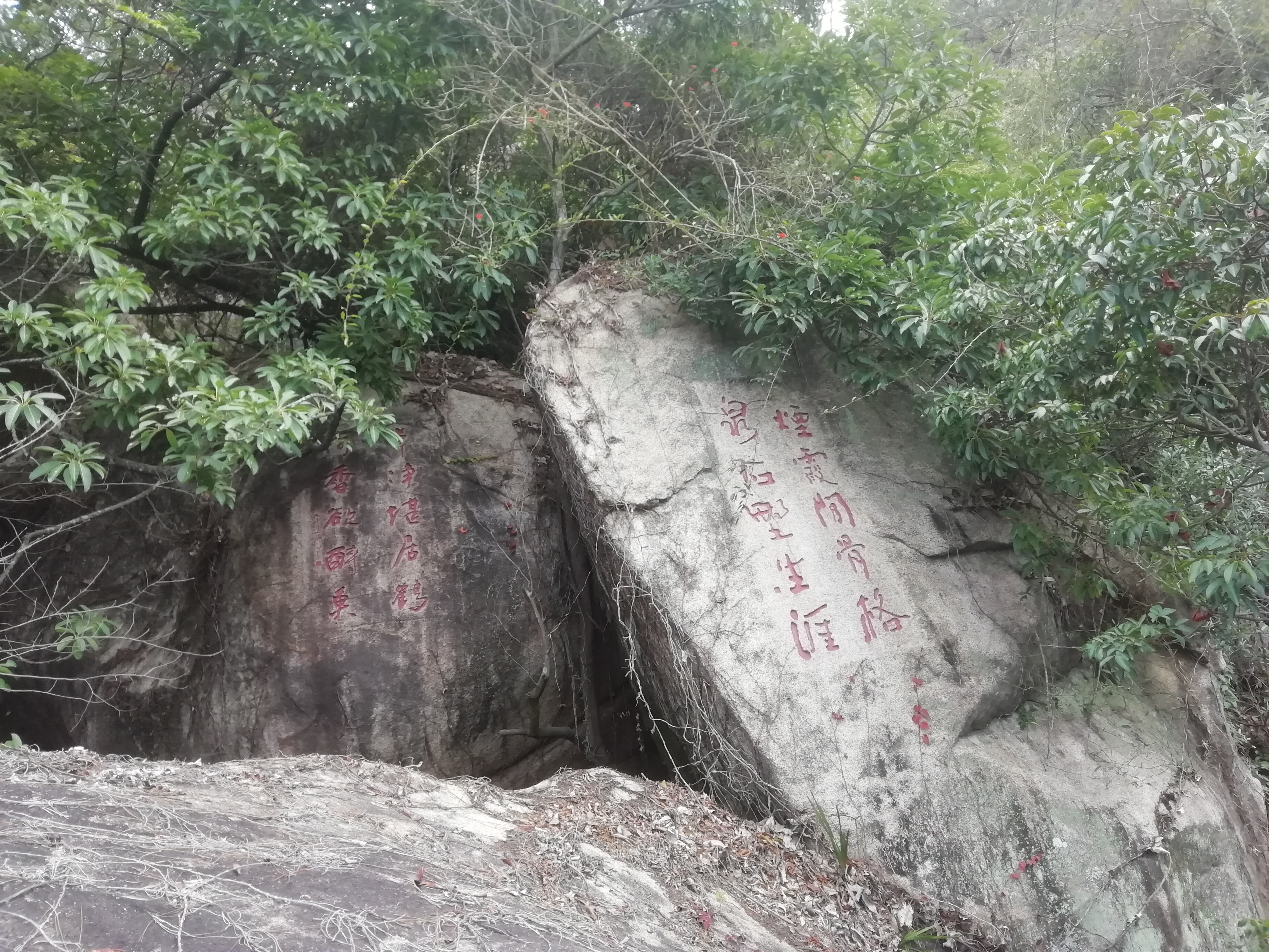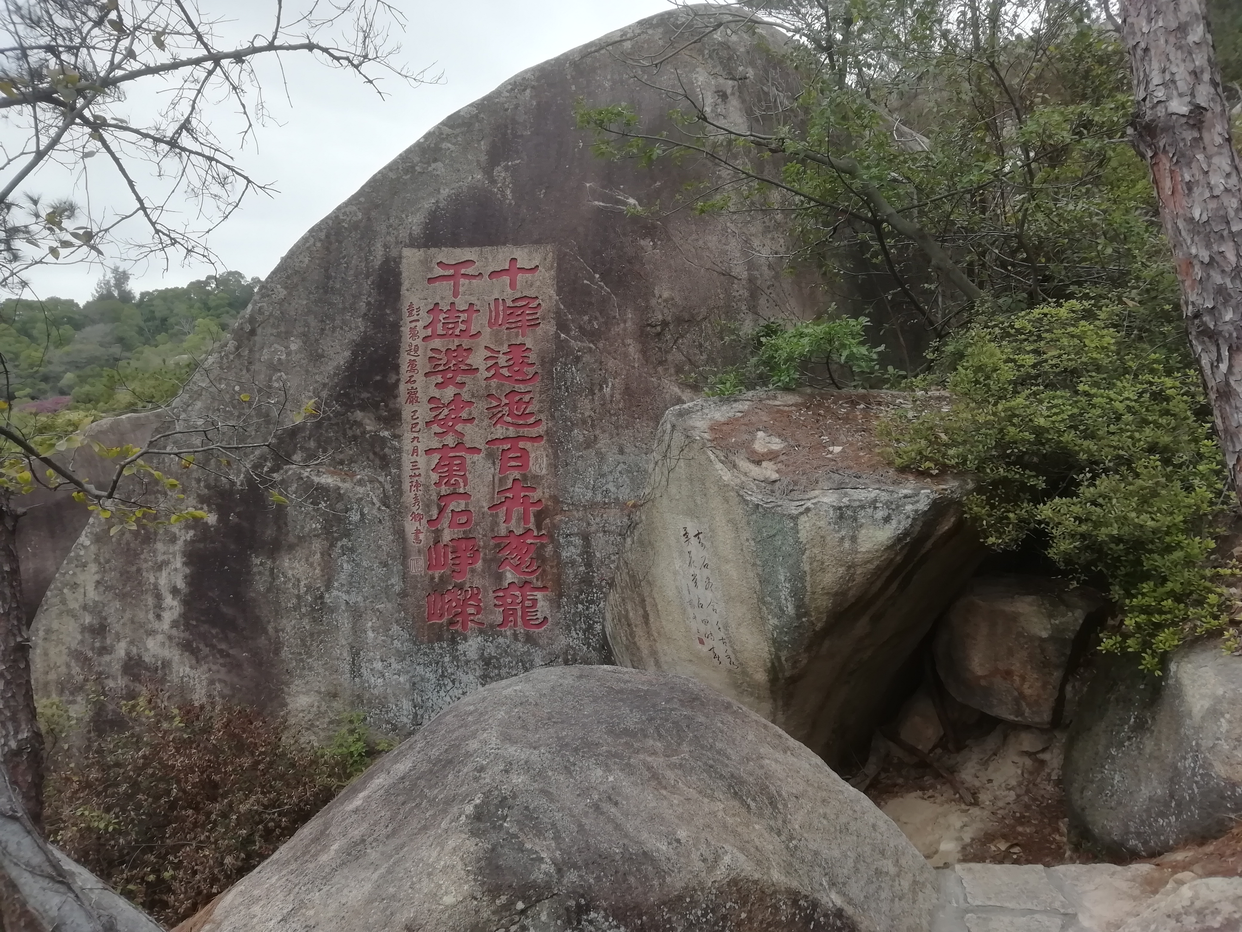 新碑林位于厦门植物园中,没有石碑,是在山间的石壁上题刻的诗词,这一段路都是山路,在巨石中穿梭,...新碑林位于厦门植物园中,没有石碑,是在山间的石壁上题刻的诗词,这一段路都是山路,在巨石中穿梭,走几步石壁上就有一些题刻,各种字体都有,可以慢慢欣赏。