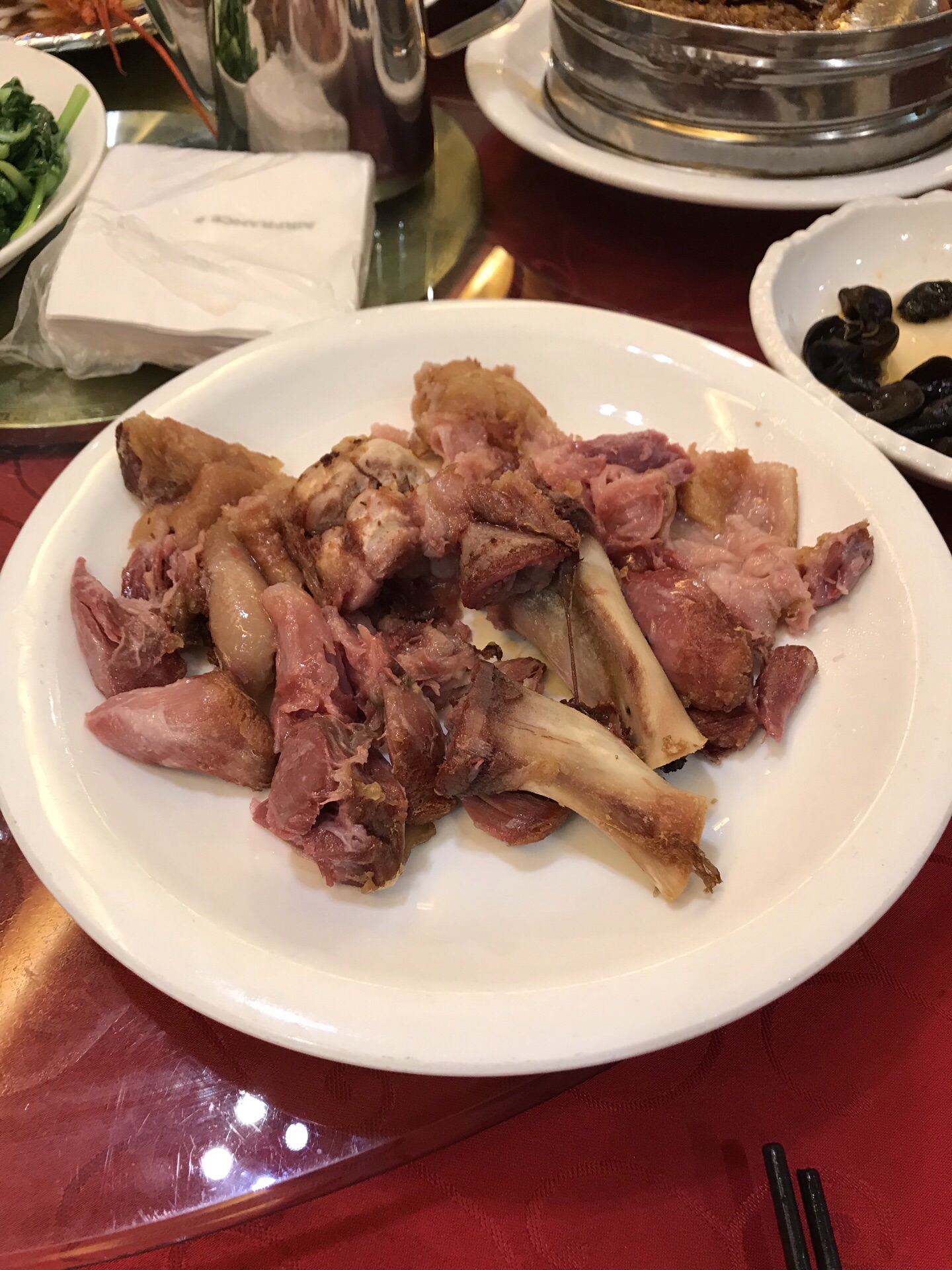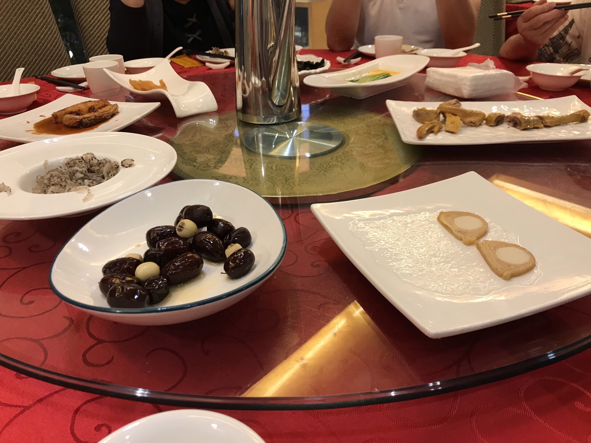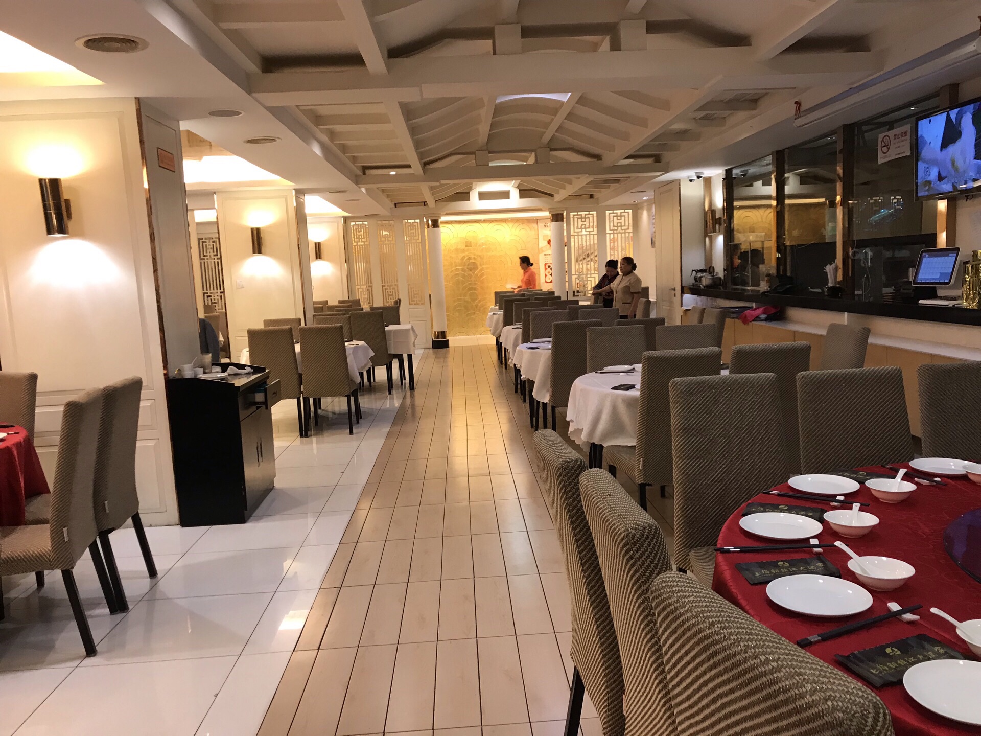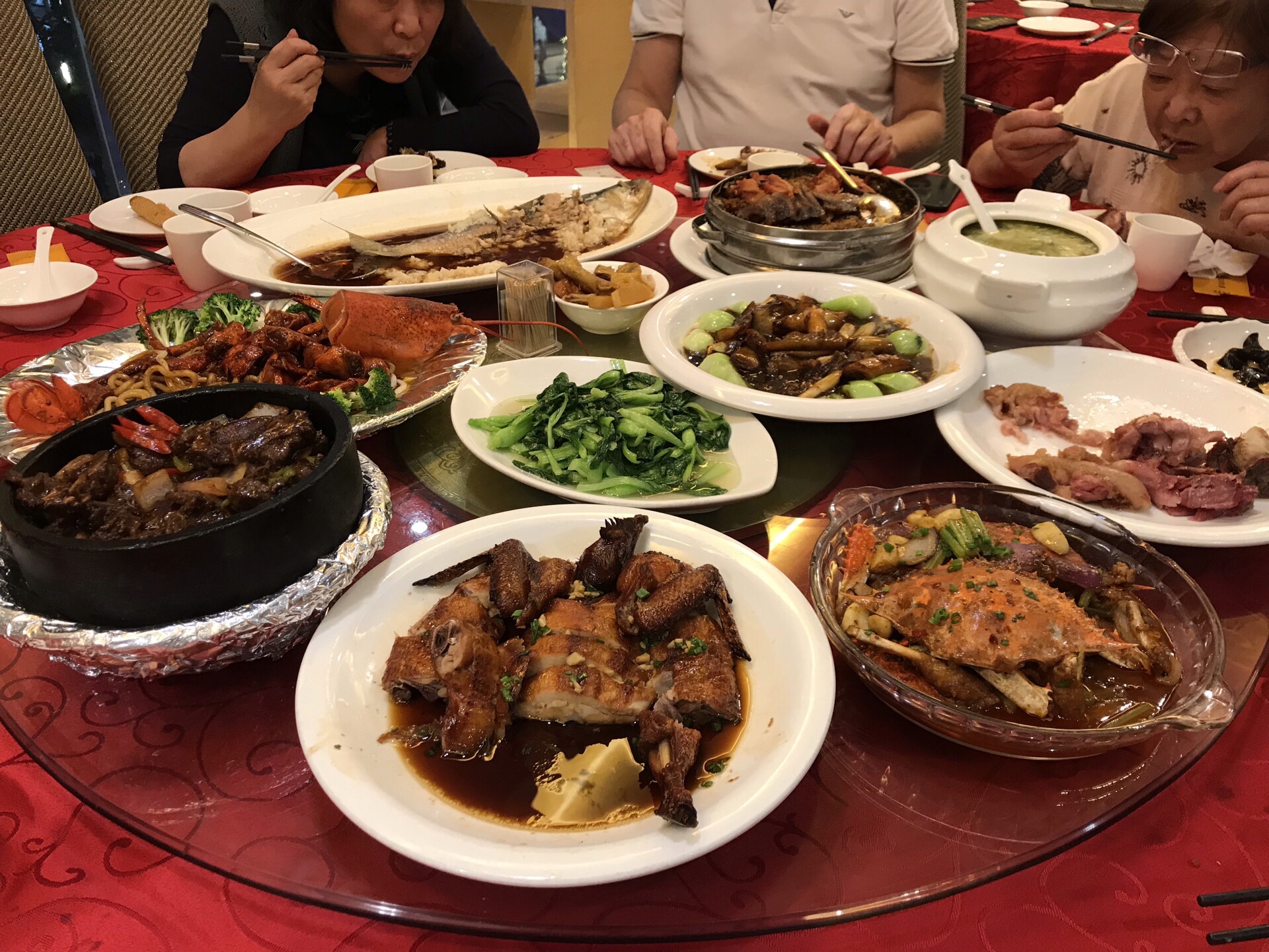 妹妹与外甥从美国回来,住静安瑞吉酒店,我们就近在南京路新镇江酒家为他们接风。 老店名牌:酒酿鲥鱼、意面龙虾、肴蹄、京葱大鸟参,年糕猪肋排......满满的一桌,八个人只消灭了一半。 【口味】满意 【环境】一流 【服务】周到