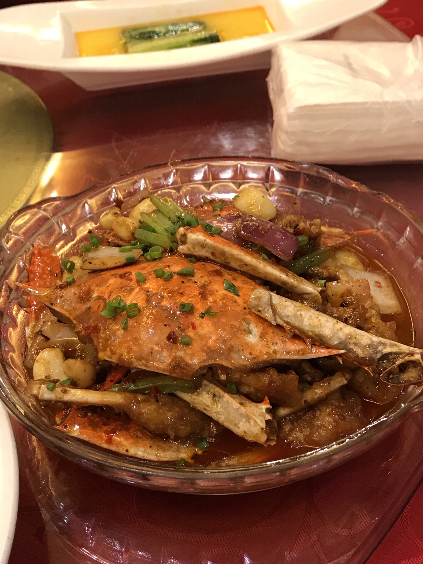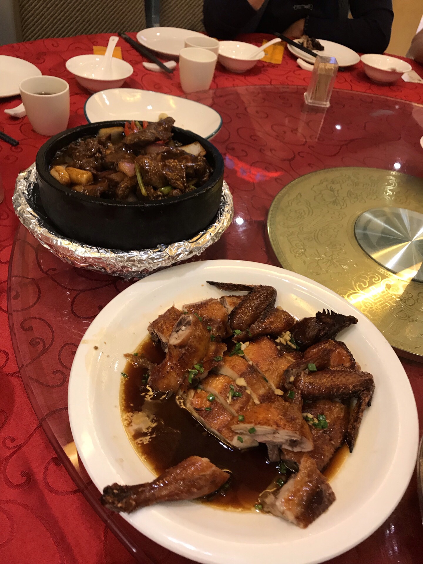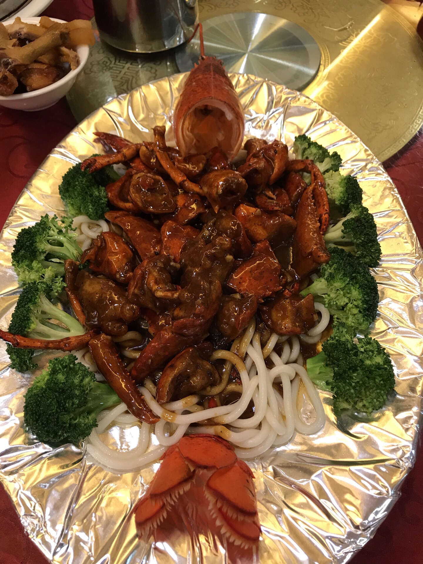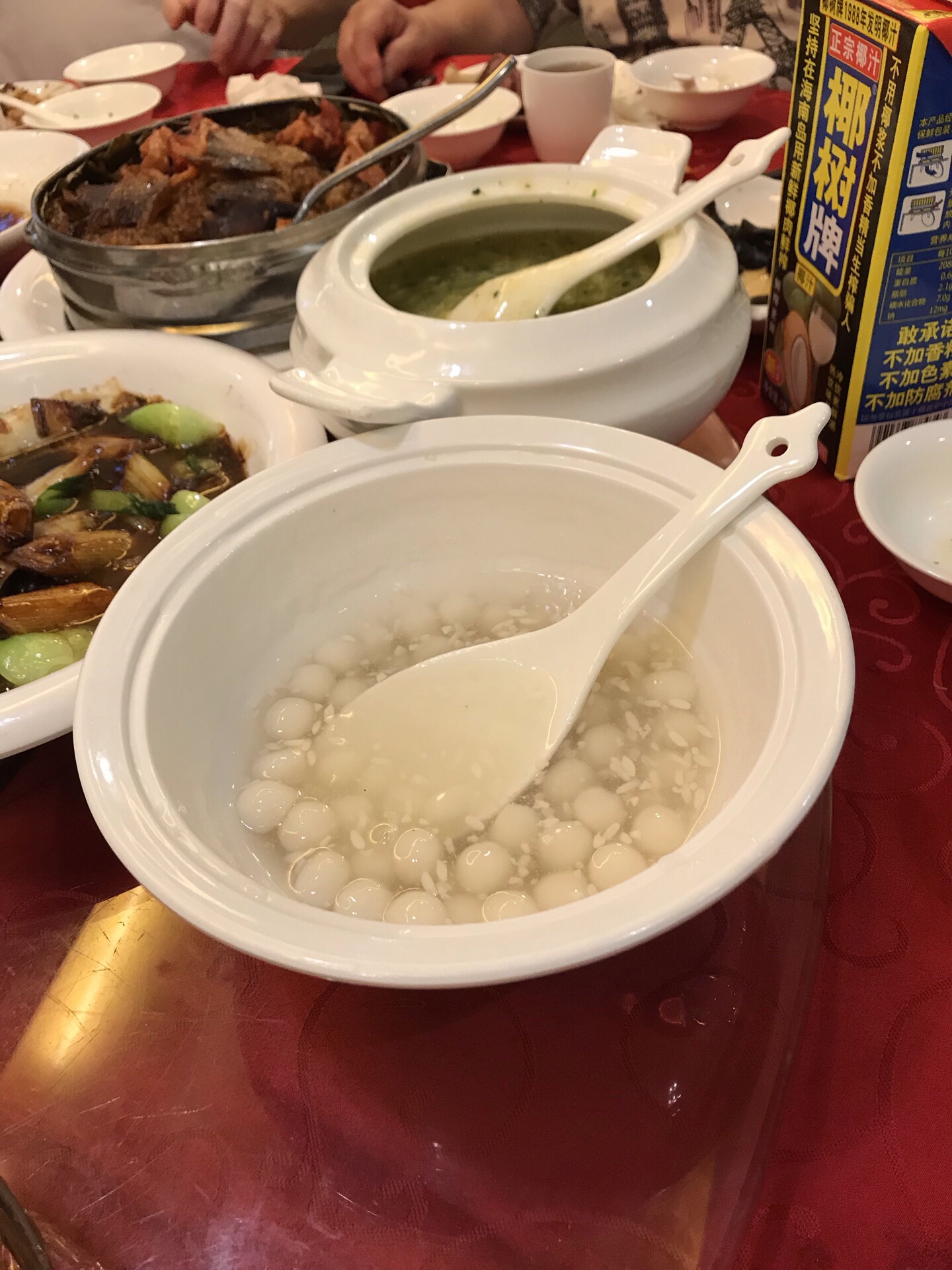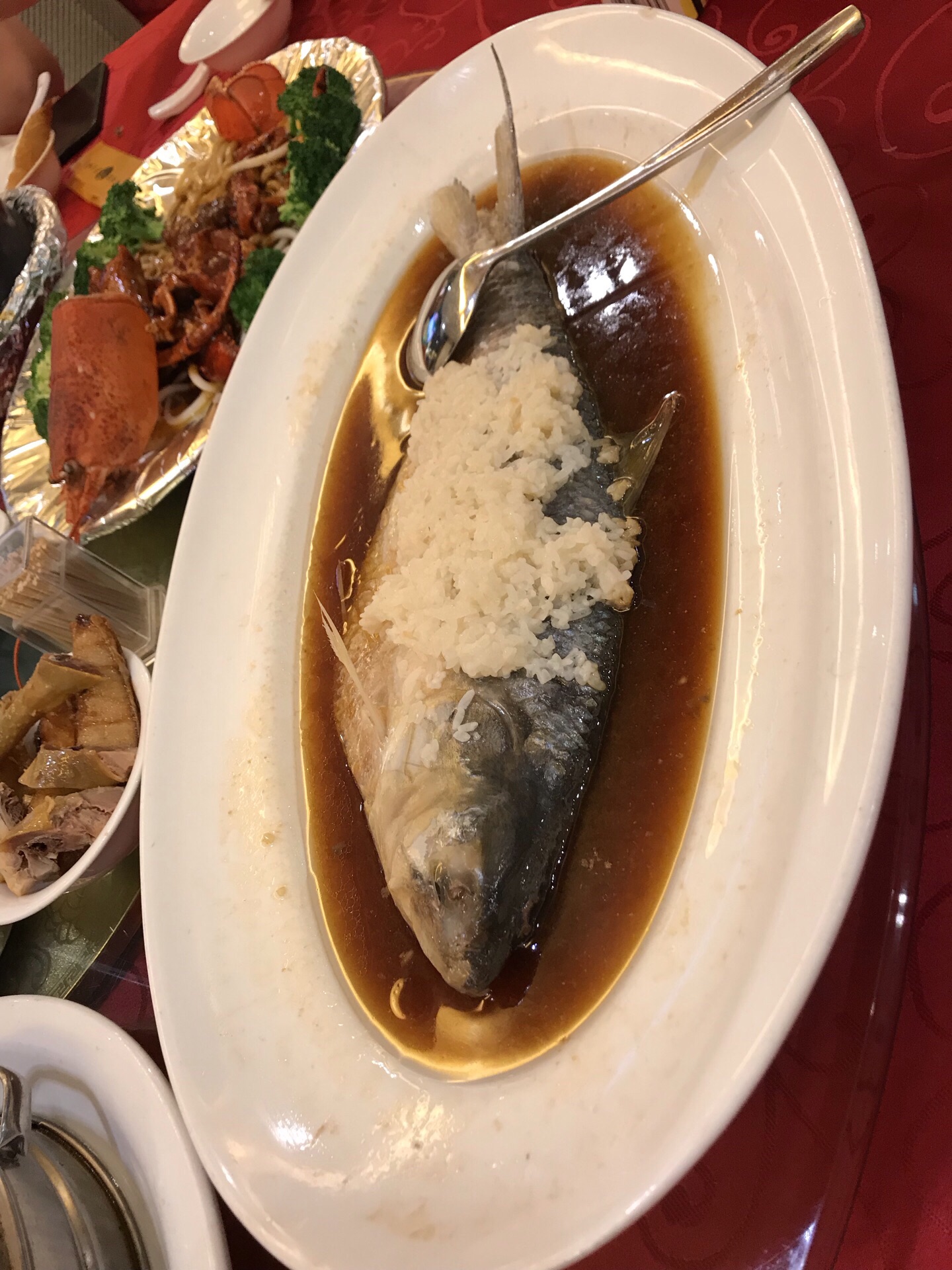 妹妹与外甥从美国回来,住静安瑞吉酒店,我们就近在南京路新镇江酒家为他们接风。 老店名牌:酒酿鲥鱼、意面龙虾、肴蹄、京葱大鸟参,年糕猪肋排......满满的一桌,八个人只消灭了一半。 【口味】满意 【环境】一流 【服务】周到