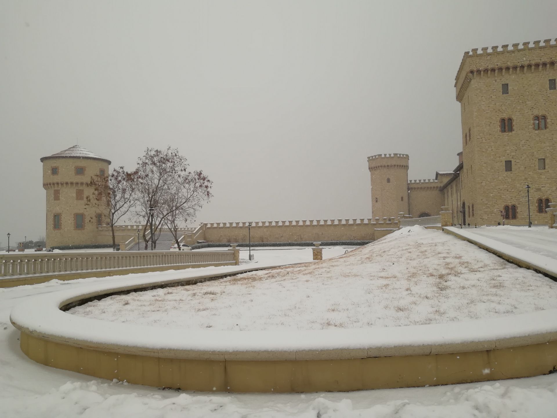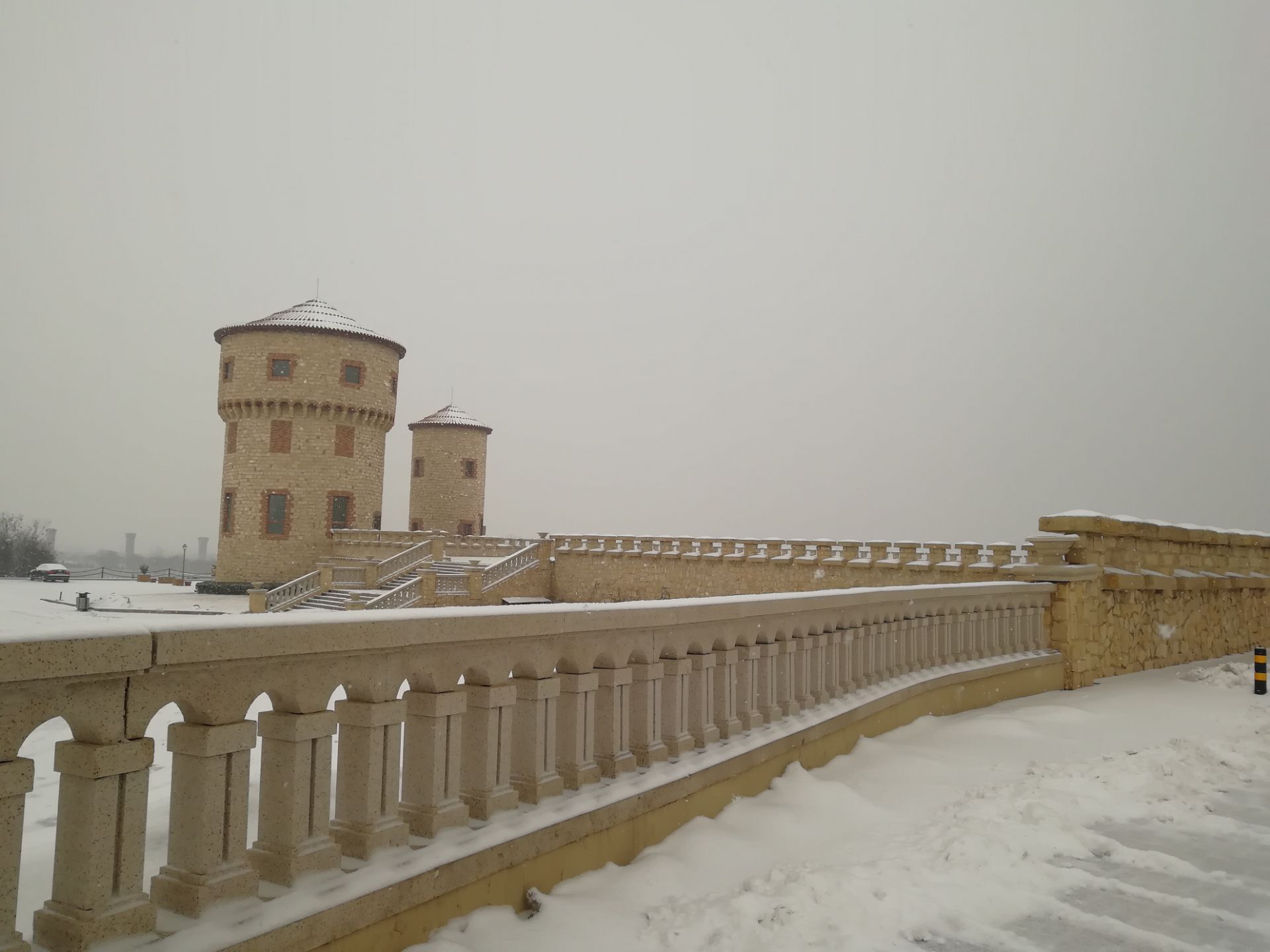 冬日的酒庄,黄白相间,站在高楼向远处瞭望,一片银装素裹,很漂亮,值得推荐。家门口的欧式风景酒庄