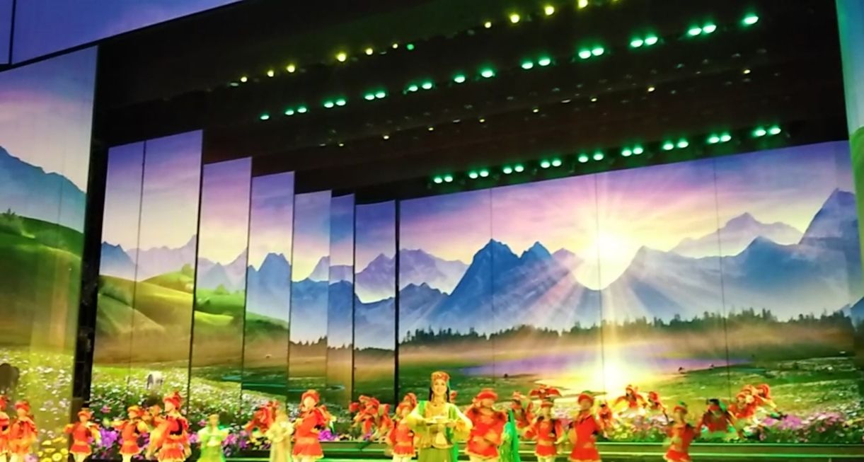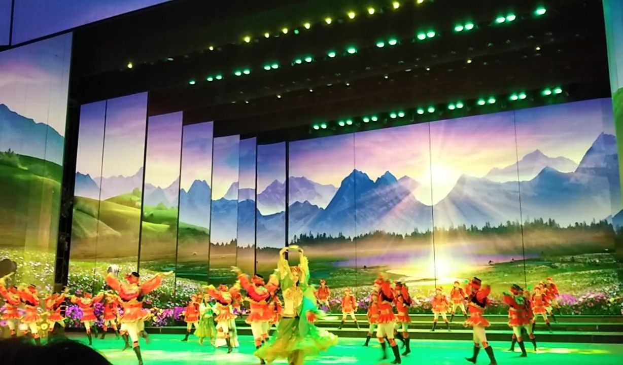 剧院地址在昌吉,名称是新疆大剧院,丝绸之路文艺中心。大部分观众都是跟团游的游客新疆,昌吉,大剧院。剧院地址在昌吉,名称是新疆大剧院,丝绸之路文艺中心。大部分观众都是跟团游的游客。剧院内的顶部是圆形的,也是演出屏幕。