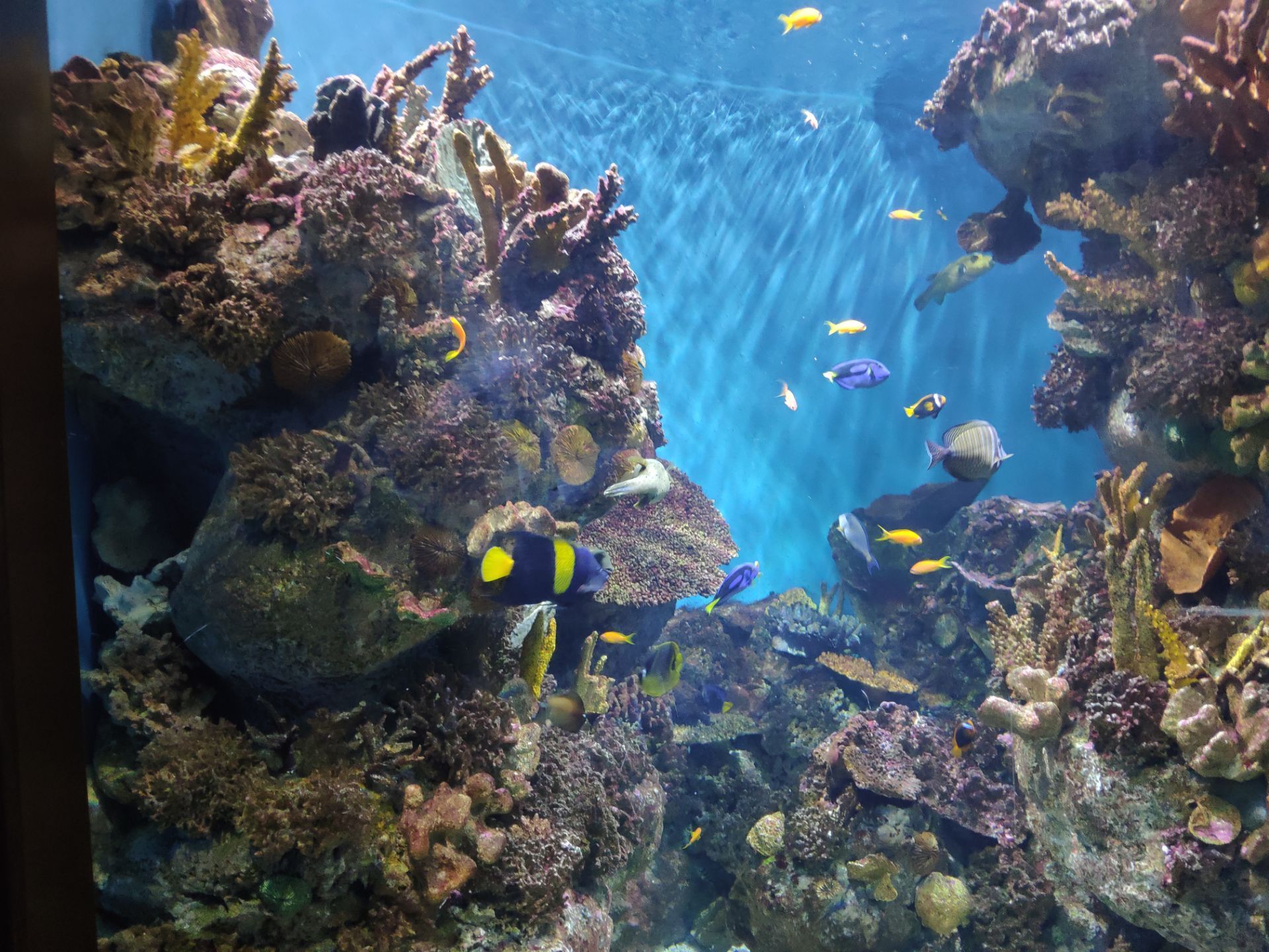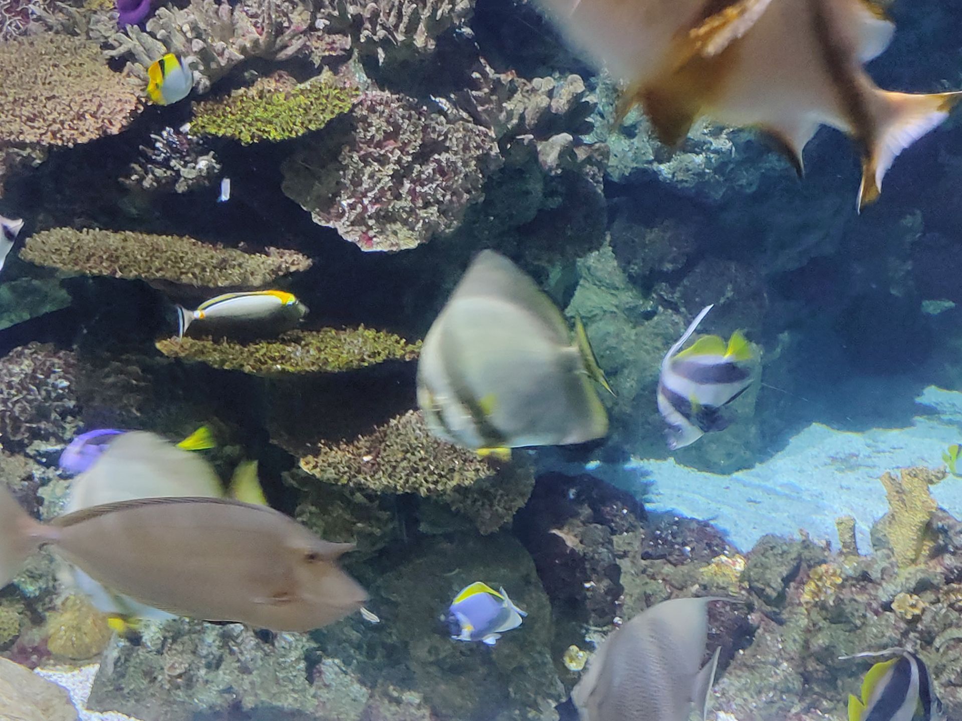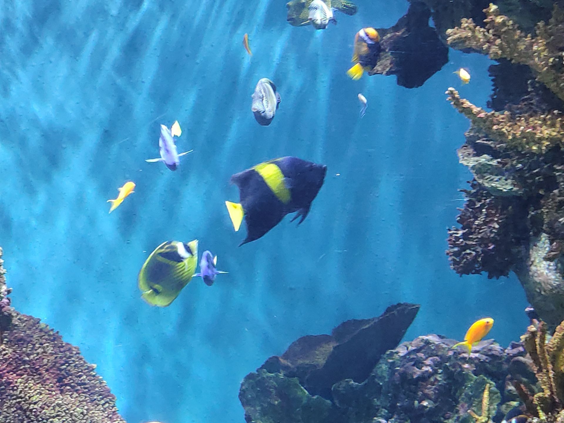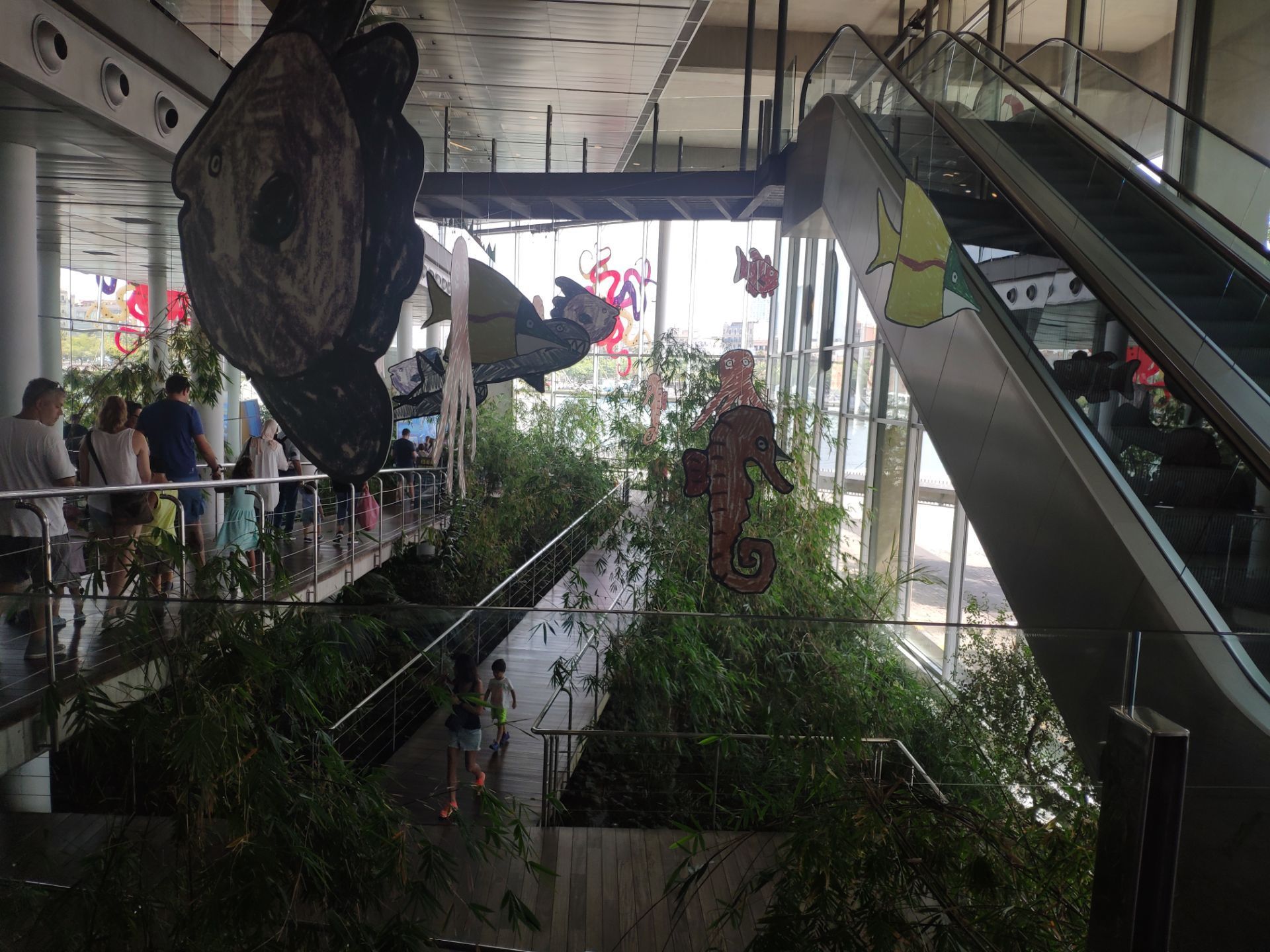 在巴塞罗那待到第四天,前三天去了奎尔公园,巴萨俱乐部诺坎普球场,去了巴特罗之家圣家族大教堂米拉之家,从加泰罗尼亚广场走兰布拉大道到了哥伦布广场,观赏了巴塞罗那旧港迷人的海港美景,在波盖利亚市场饱尝西班牙传统美食。 这几天的交通出行,买的是巴塞罗那城市通卡,开通即时72小时内有效,除了交通还包括一部分场馆,想着还有半天,选择去巴塞罗那水族馆和蜡像馆。 夏天的水族馆是孩子们的乐园。各个水族箱里游来游去的五颜六色色彩绚丽缤纷海洋鱼类。望着这些靓丽的鱼儿,慨叹大自然的神工,真的美如画。 站在隧道的履带上慢慢行进,鲨鱼魔鬼鱼等大型的海洋鱼从身边从头顶慢条斯理的游过,不仅小朋友连我这个大朋友都很开心呢!