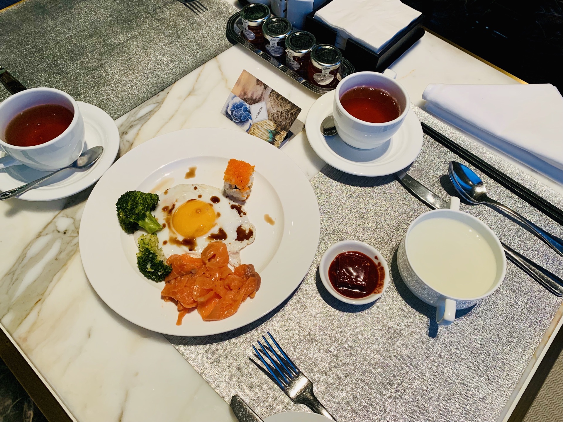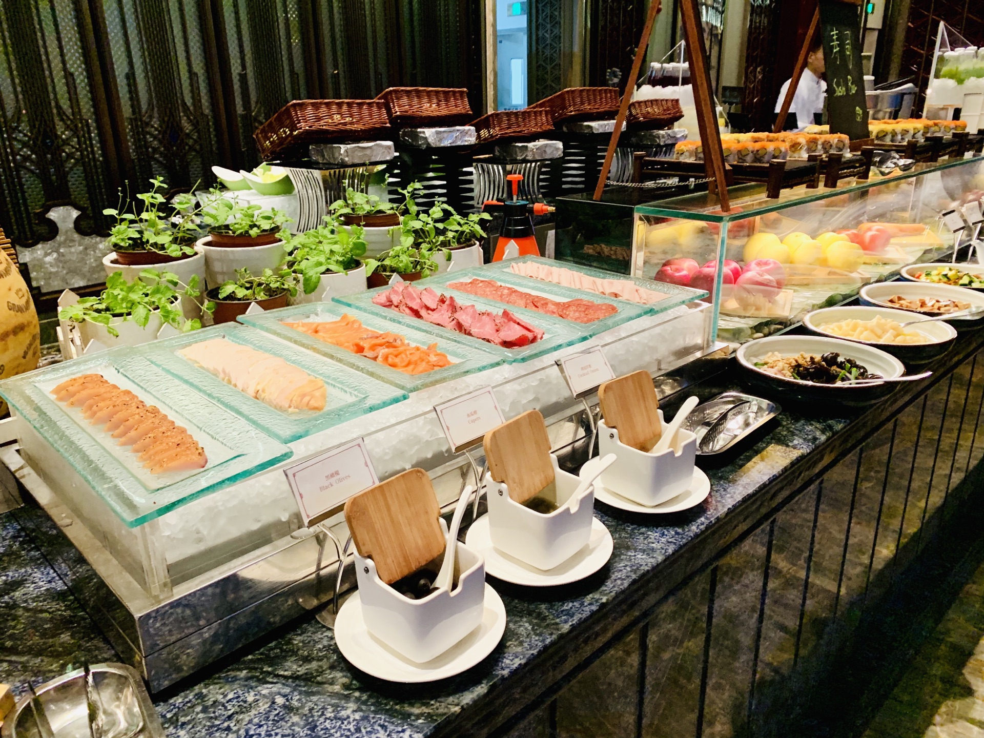 在万达瑞华41层的美食汇用的自助早餐,工作原因去的时间比较早,在东边一侧的落地窗,居然看到了日出,很欣喜。自助早餐的餐厅味道很不错,牛肉面里面的牛肉味道很香,就是牛肉块稍微少了一些。新鲜炸出的果汁,比如香瓜汁非常好喝。服务生收拾餐盘也很勤快。