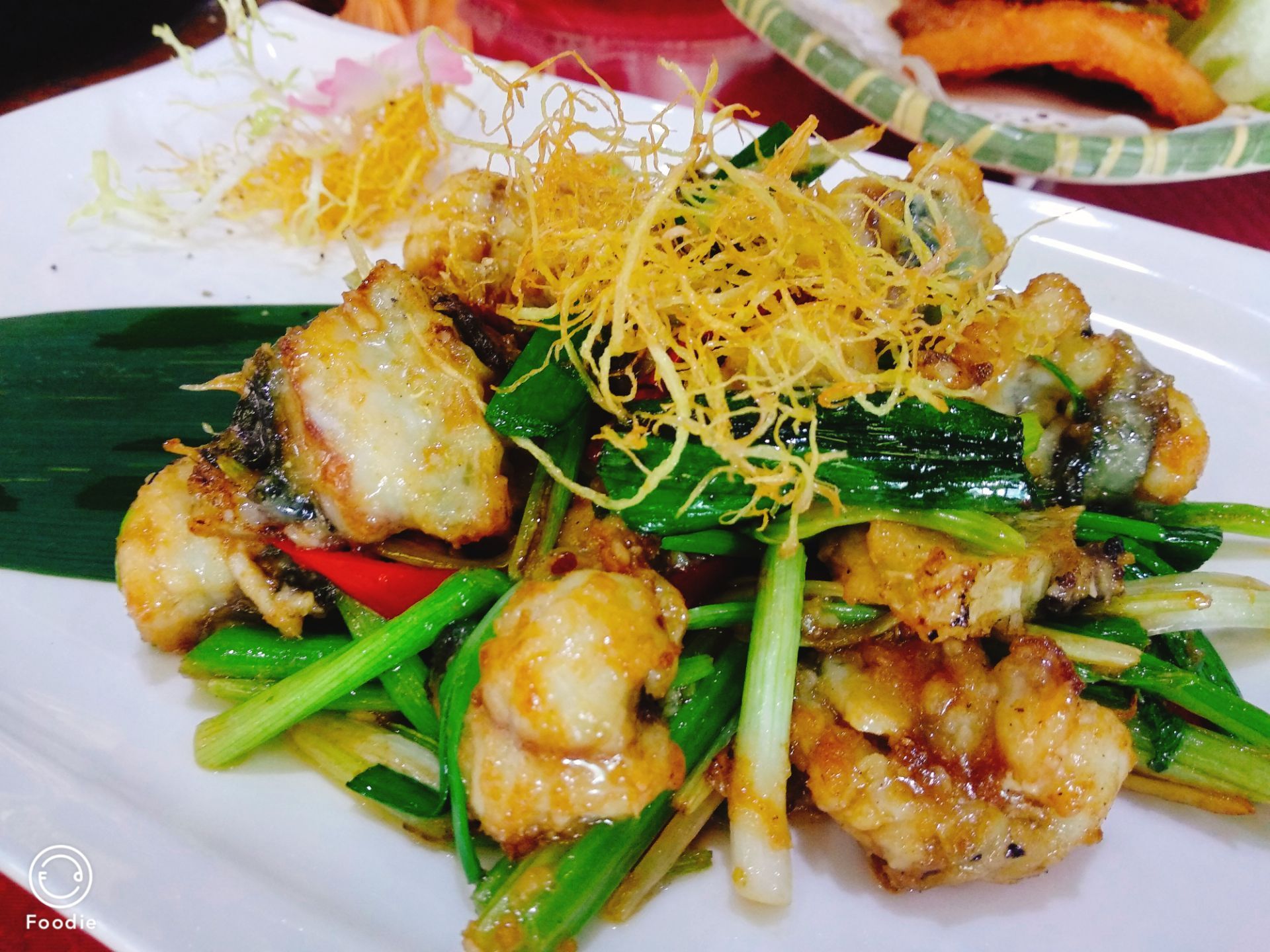 【爆炒鲈鳗】这大尾鲈鳗你值得拥有,酥脆的外皮,加了麻油增加香气,就联配菜都特别好吃。厉害了