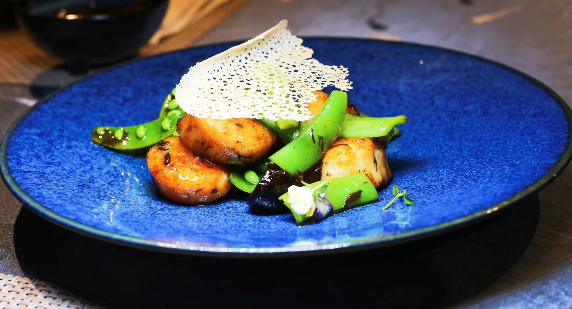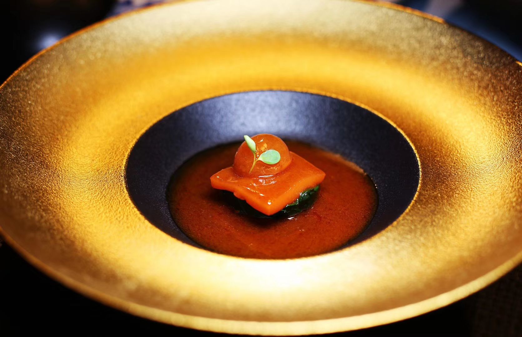 口感爆浆很不错、鹅肝芒果、低温酥和牛、牛头方、芙蓉鸡片、花椒冰淇淋都出品无可挑剔,偏偏赠送错了...前菜送了个分子料理的番茄球,口感爆浆很不错、鹅肝芒果、低温酥和牛、牛头方、芙蓉鸡片、花椒冰淇淋都出品无可挑剔,偏偏赠送错了这道澳带偏咸,夸奖他们有个酸菜鱼给我吃得渣渣都不剩。