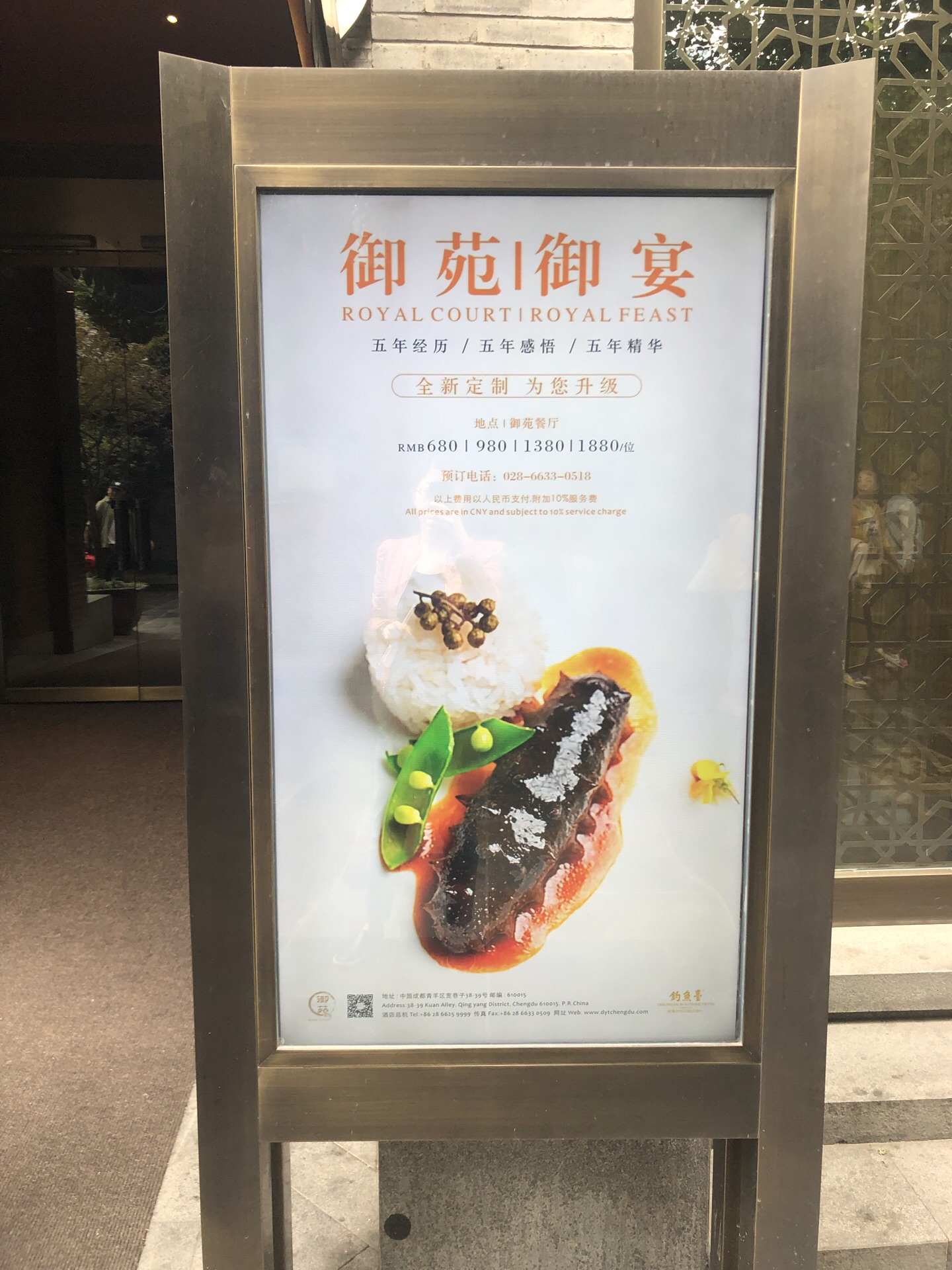 别人家的哥哥又出山了,这盘哥哥带我们去吃佛跳墙。周五预约的钓鱼台国宾馆主菜-佛跳墙,据说要历时4小时炖制,每盅价格888元,一经预约周六不去也会从卡里扣款。佛跳墙,福建当地名菜,里面的内容每家会有少许微调。钓鱼台的选用鲍鱼,海参,鱼翅,豹肚(不知道有没有听错),蹄筋,瑶柱,鹌鹑蛋等汇聚在一起,加入高汤,文火煨制而成。盖子一揭开,香味扑鼻,汤鲜味美,高蛋白食材吃到后面有点腻。故觉得这种大菜,最先上来,是不是妥当些。说这么多,再说点瑕疵,佛跳墙上来后,应该有服务员主动介绍,而不是食客追着问,毕竟这是你家的主菜,应该烂熟于心。席间,还有一只大苍蝇飞来飞去,很是倒胃口。钓鱼台的环境最是霸道,闹中取静,动静皆在一扇门之间。哥哥的心愿是好东西与家人分享,自己苦点累点都不怕,家人开心最重要。