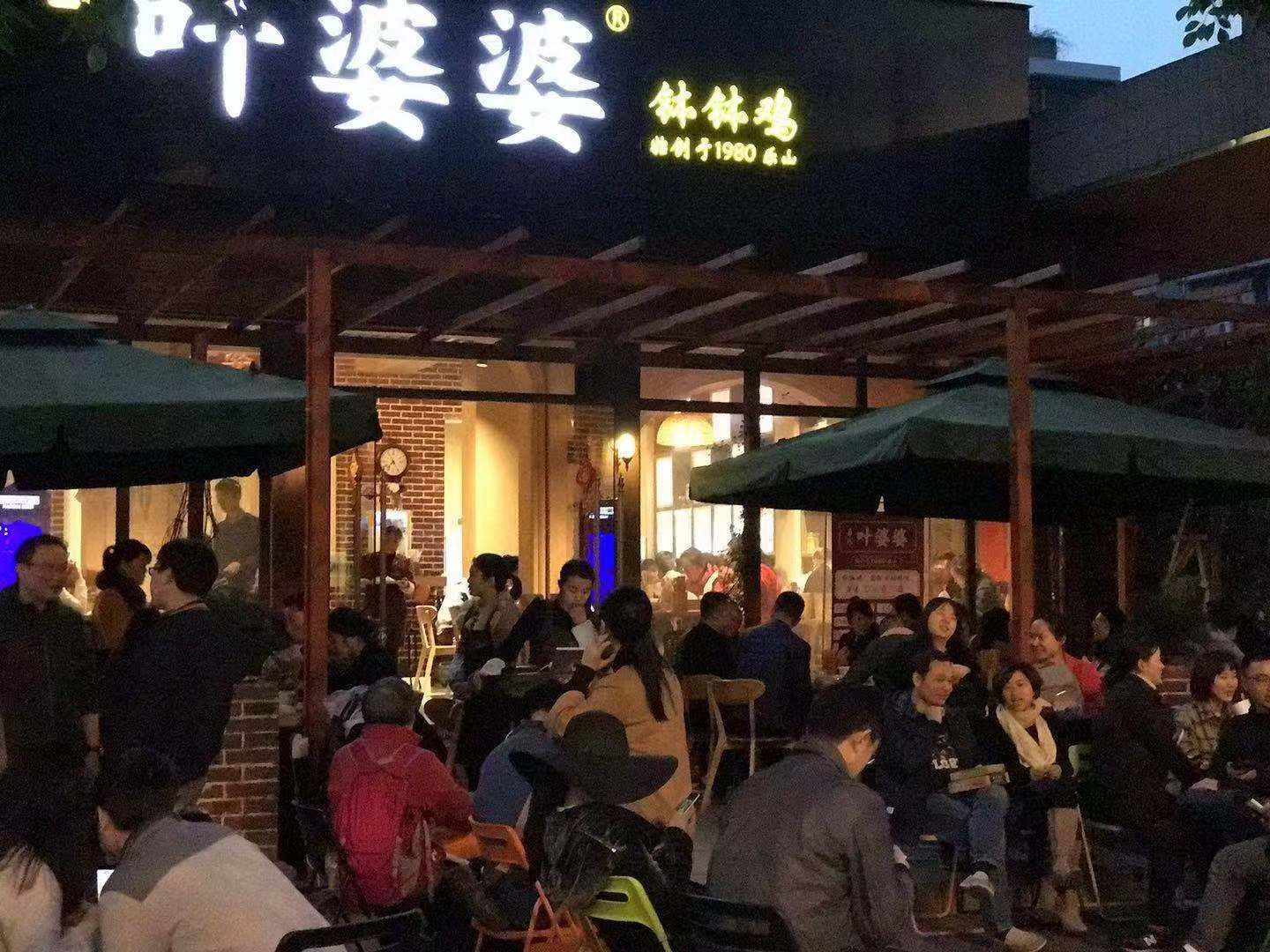 上周和同事来了个建设路拔草游,把建设路万人坑附近几家中午营业的网红店踩了。 叶婆婆从乐山来,在成都也开了几家,味道和乐山的差不多,红油属于甜辣型。十一点过一点点到的店,店里面也基本都坐满了。看来人气旺,翻台快。 菜品干净,我们采用的是把签签儿上的菜全部抹下来的方式,让菜和红油底料充分接触。完全浸润汤料的菜非常好吃,辣味、甜味恰到好处,加上一点点捆芝麻的干香,非常喜欢! 唯一不地道的,钵钵鸡出现了牛肉,传统的钵钵鸡是没得除鸡外的其他肉类,看来是进去成都后入乡随俗了,不过牛肉比鸡肉好吃,叶婆婆的鸡肉切的小方块,太柴,不入味,建议用手撕鸡的做法。 这次因为还要去踩其他店,吃得不多,也没尝试小吃类,下盘再来