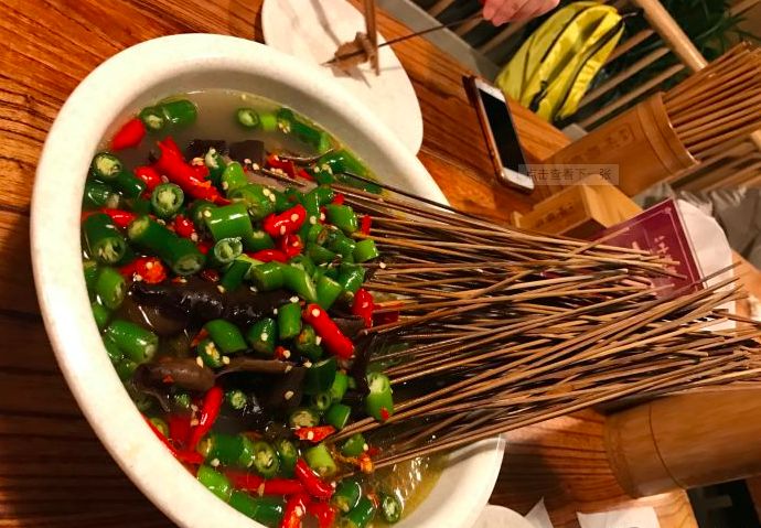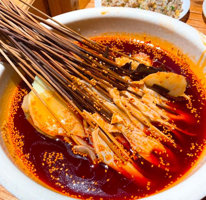 外地朋友来成都,想要吃钵钵鸡,当时因为太晚了,不可能在坐车去乐山,但是我发现成都也有叶婆婆了,于是带他来试试。 来的时候已经有很多排队了,前面估计有10桌左右,因为太饿了,这周围又有太多没事了,所以先决定去周围买点小吃。 买回来差不多就只有三桌了,翻桌其实还是很快,等不到多久,里面桌子很多,基本都是拼桌,比乐山装修上档次太多,反而不想吃钵钵鸡的地方。 菜品的选择很多,会先给你一个盆,然后要藤椒口味还是麻辣口味,我们两个都尝试了,拿了很多菜,自动分配成了两盆。 藤椒味味道比较淡,有一点点藤椒味,也不是很麻,吃到最后把藤椒里面的全部转移到了麻辣味里面。 麻辣味确实要有味道很多,搭配干碟,很不错。 最后还吃了两盘蛋炒饭。 服务什么的也都很好,还有很多小吃没尝试