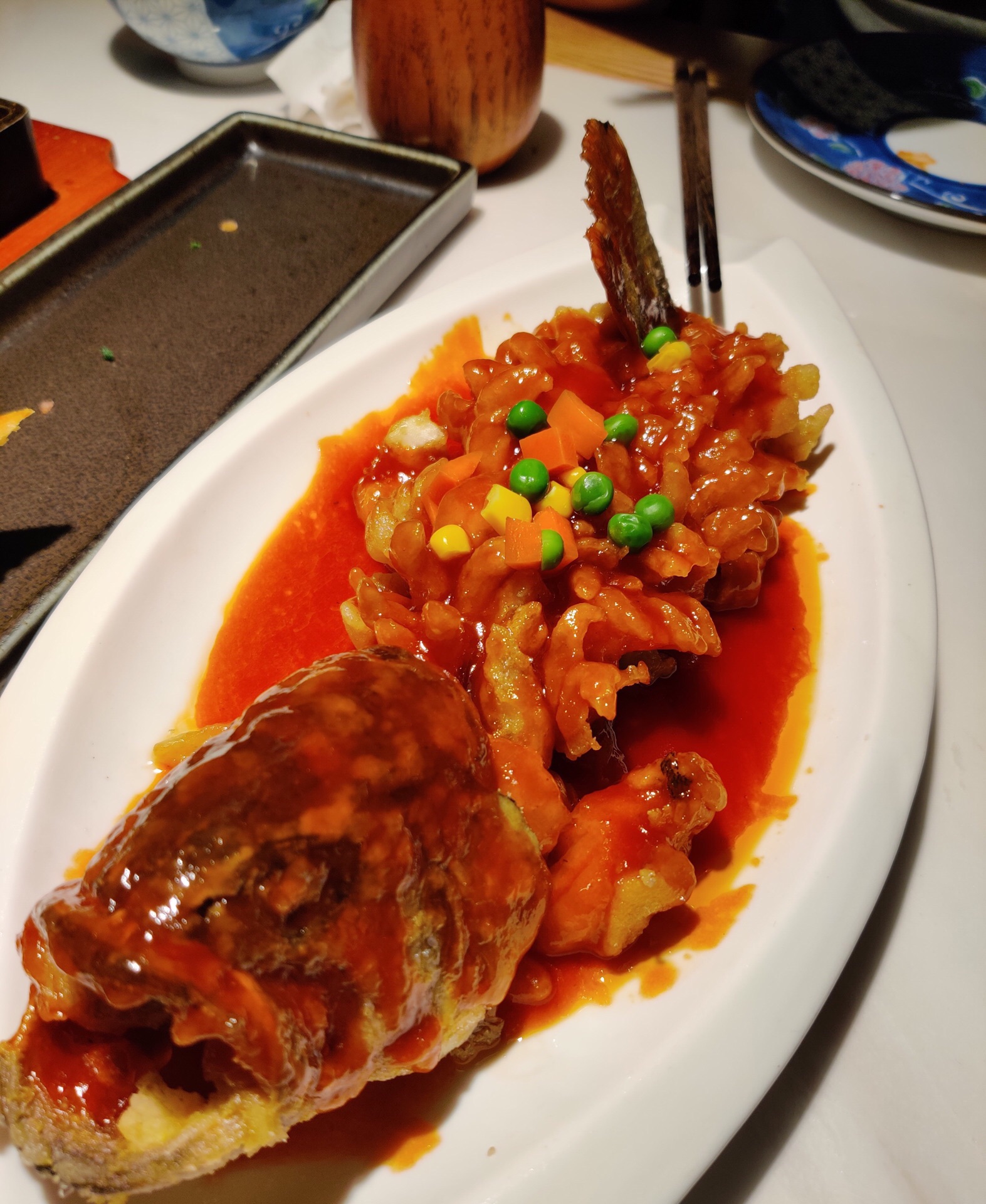 比较喜欢松鼠桂鱼的口感,虽然炸的有点太过头了,但是酸甜口味恰到好处!是我喜欢的
