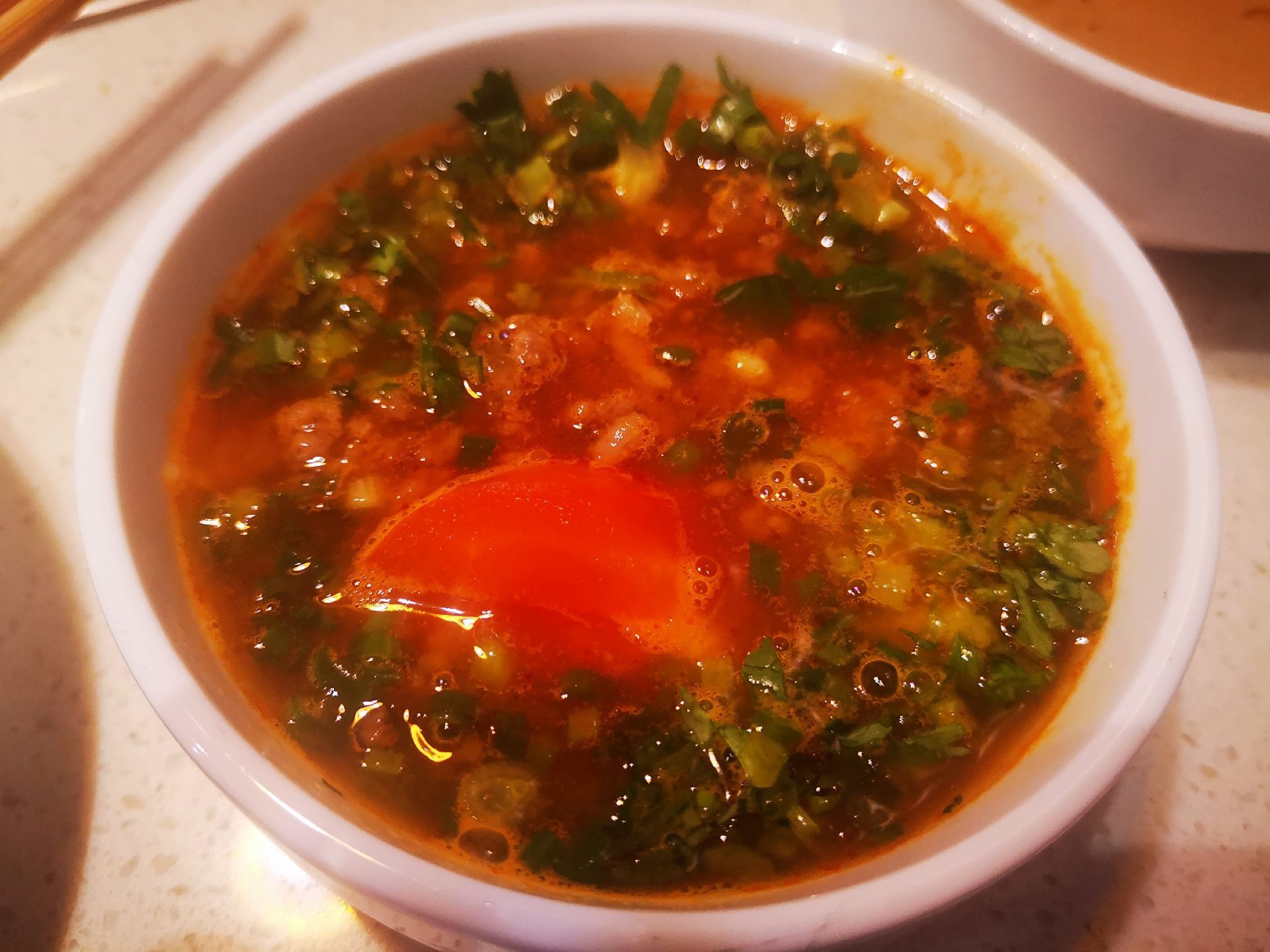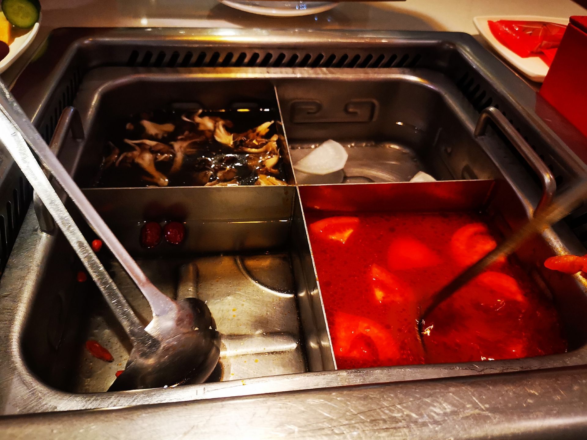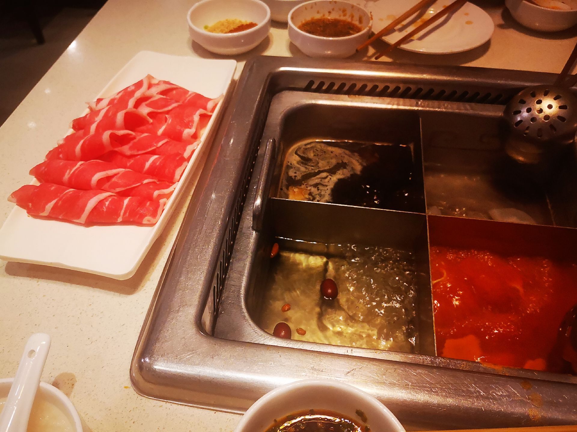 推荐牛肉粒汤和肥牛,味道很赞,锅底我最喜欢番茄锅,在不辣的基础上口感丰富,吃的很过瘾