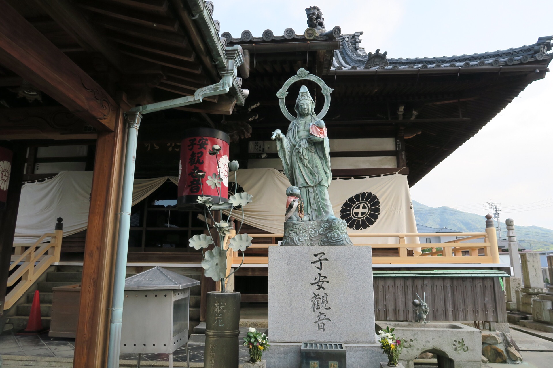 観智院是善通寺的寺中之寺,小小的一个寺庙,别名叫做子安观音観智院是善通寺的寺中之寺,小小的一个寺庙,别名叫做子安观音。很多的日本的女性会来这里参拜,因为这个寺庙保佑的就是顺利的分娩和养育孩子。在寺庙的入口处,有一尊站立着的观音青铜像,看见这里进去就对了。