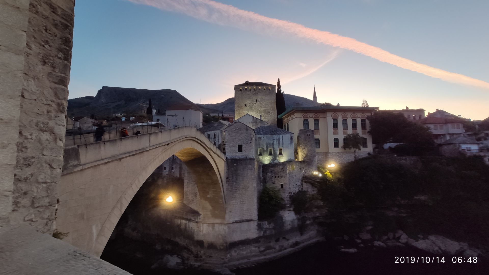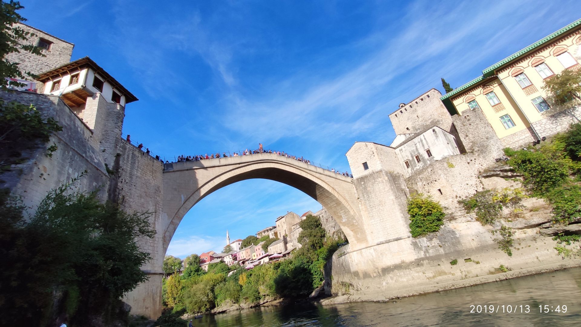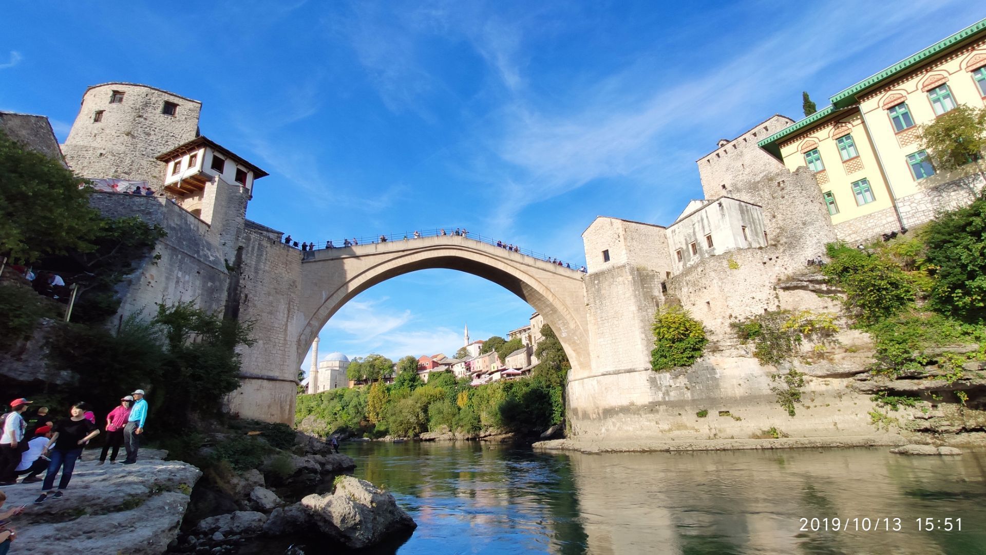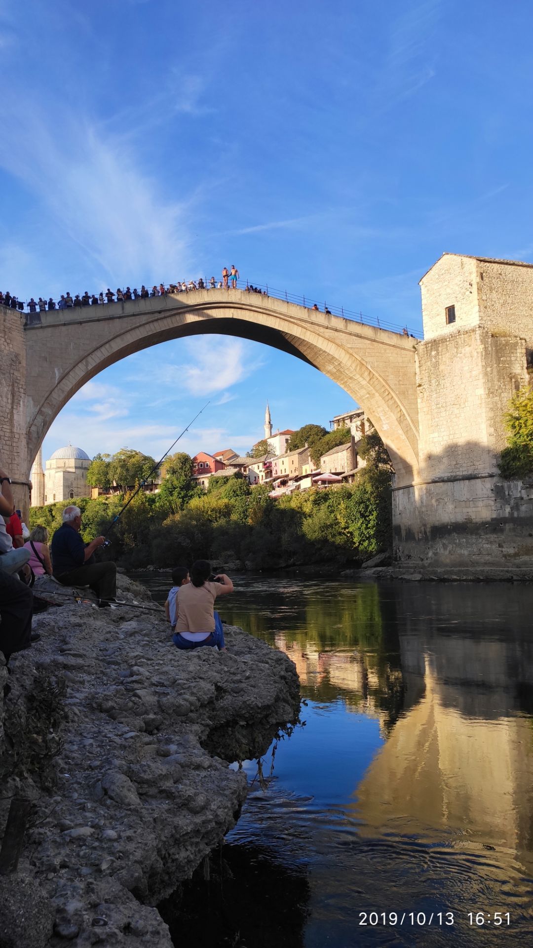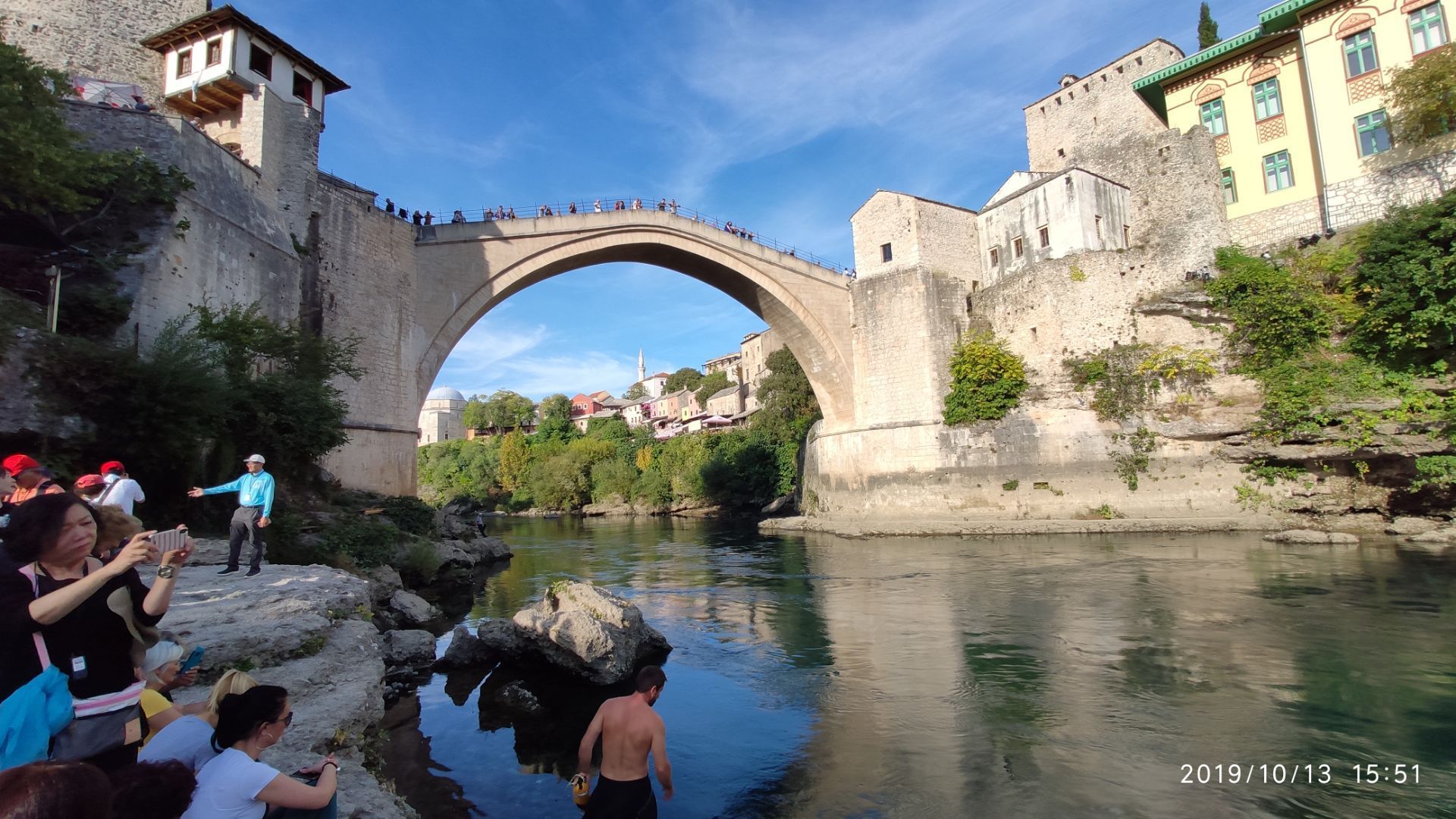 莫斯塔尔古城的标志性建筑,曾在战争中被摧毁,后又重新建造,要想看到跳桥表演就要在人多的中午下午...莫斯塔尔古城的标志性建筑,曾在战争中被摧毁,后又重新建造,要想看到跳桥表演就要在人多的中午下午的时候去,会有人在桥上和桥下向游客索要小费,我给个2马克,要想人少的时候拍照就要早点起一早去拍。