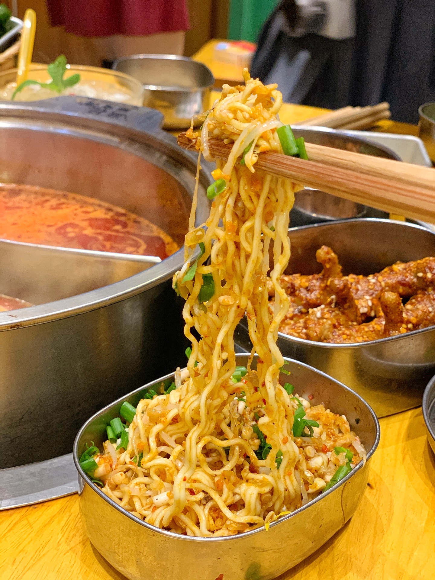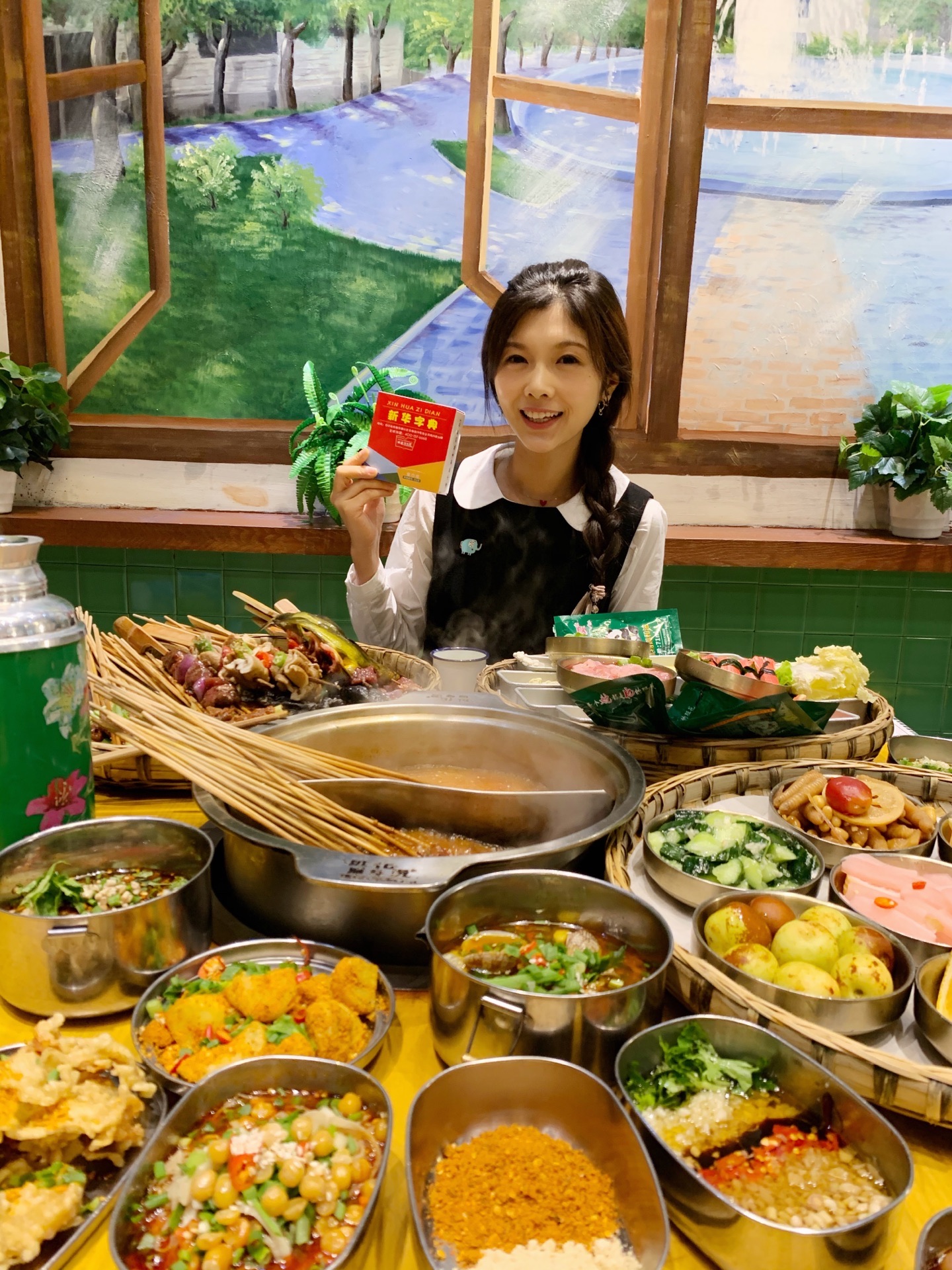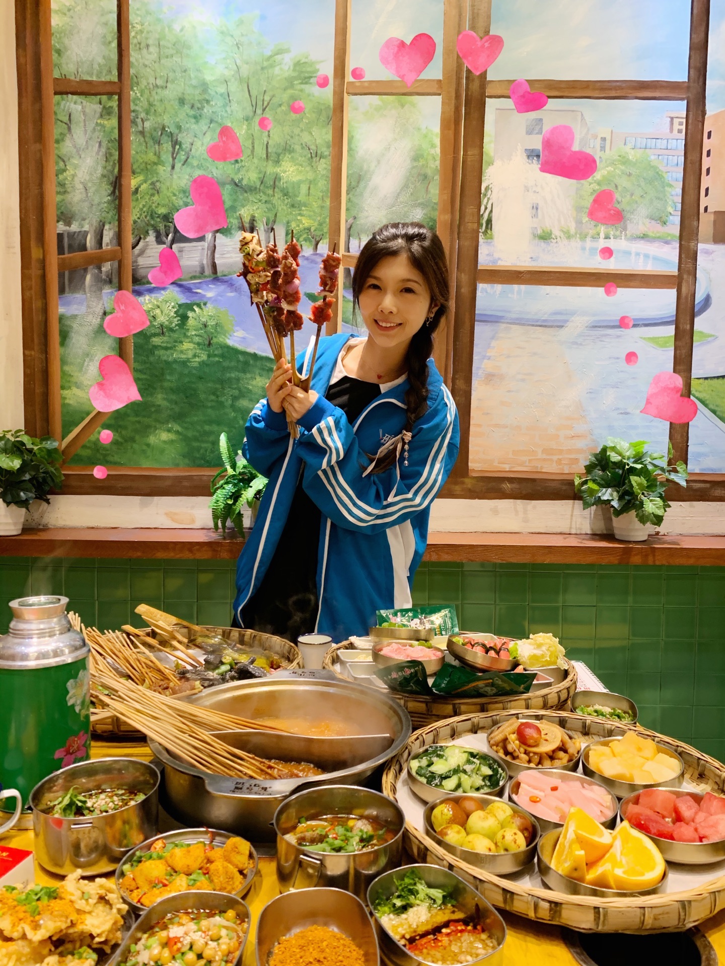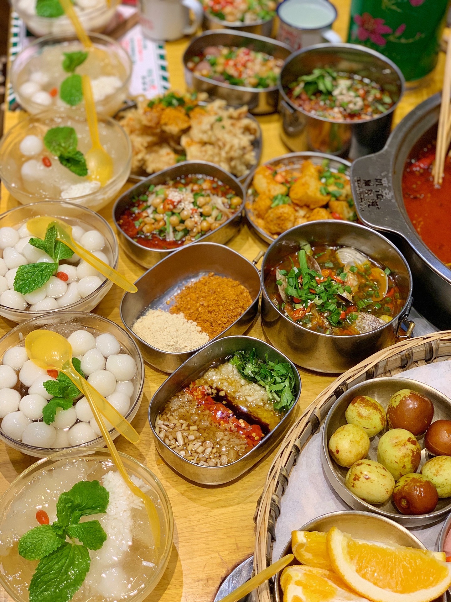 班花麻辣烫,虽说卖的主要是串串香,但是各种小吃和碗碗冒菜款式特别多,味道都各有特色,好吃得此起彼伏的。地理位置好,本地老饕和外地游客都纷纷前来打卡,生意好得店员都快飞起来了。如果有外地亲朋来成都旅游,建议带着来尝尝这家,吃完逛逛春熙路、太古里,吃喝玩乐一站式满足。 ------- 餐厅环境 ------- 作为一家优秀的主题麻辣烫,餐厅整个是怀旧的青春主题风格,大厅、包间被划分为不同的区域,有图书馆、自习室、音乐教室等等,真实还原我们当年的青葱岁月。 ------- 餐厅服务 -------- 小哥哥小姐姐们都身穿统一校服,一脸的青春洋溢,笑盈盈的面对客户,就跟年少时的同班同学一样亲切可爱。 -------- 菜品推荐 -------- 【串串】 保鲜柜里的荤菜、素菜整整齐齐的摆放着,每一串都大坨大坨的很扎实,新鲜得很。 喜欢什么就可以拿两串试试,没吃过的也可以随意拿来尝尝,这就是串串的优势所在。 人多人少都可以吃得很满足,想吃什么拿什么,吃多少拿多少,也不会浪费。 “笋子牛肉”嫩气的牛肉裹着一节笋子,不同的脆嫩口感,口感很饱满; “小番茄牛肉”这个是小亚第一次吃到,牛肉片里面裹得是小番茄哟,很好吃的娇嫩多汁; “黑胡椒牛肉”特别粗的一根签子穿着,牛肉坨坨也很霸气,一口吃一个那种,特满足; “苹果牛肉”哈哈,苹果块儿裹在牛肉里面哟,果味的酸甜可以综合锅底的油腻,刚刚好; “黄辣丁”一串并排穿着,鱼儿很肥,肉很厚,熟了一口就抿得干干净净的,巴适! “卤肥肠”肥肠切得很长一段,大粗签子穿着,一根抵以前的小签子五根,超过瘾的。 ……….. 好吃的菜品实在是太多了,列不完,个人口味也有差异,请自己去寻宝。 【秘制鸡爪】6元 铁皮老式饭盒装着的肥鸡爪,香香糯糯的鸡爪子,入口一抿就稀溜耙,根本不需要啃的呀。 看起来辣椒有点多,但是根本不太辣的哈,只是特别香而已。 一盒有3根,我一个人分分钟解决干净了。 【兔头】 它一定是我这辈子吃过最耙最好啃的兔头,真的是用手就可以把兔头轻松肢解,一点儿不费劲儿。兔头裹着厚厚的调料和花生碎,吃完还不忘舔舔手指头。哈哈。 【干拌火锅面】6元 方便面在火锅底料里烫煮,捞起,加入调味料再干拌,请自行脑补这活色生香的重口味场面。 一上桌就被哄抢一空,果断又加点了2份。 【最强大脑】15元 软糯可口,特别吸味的冒脑花