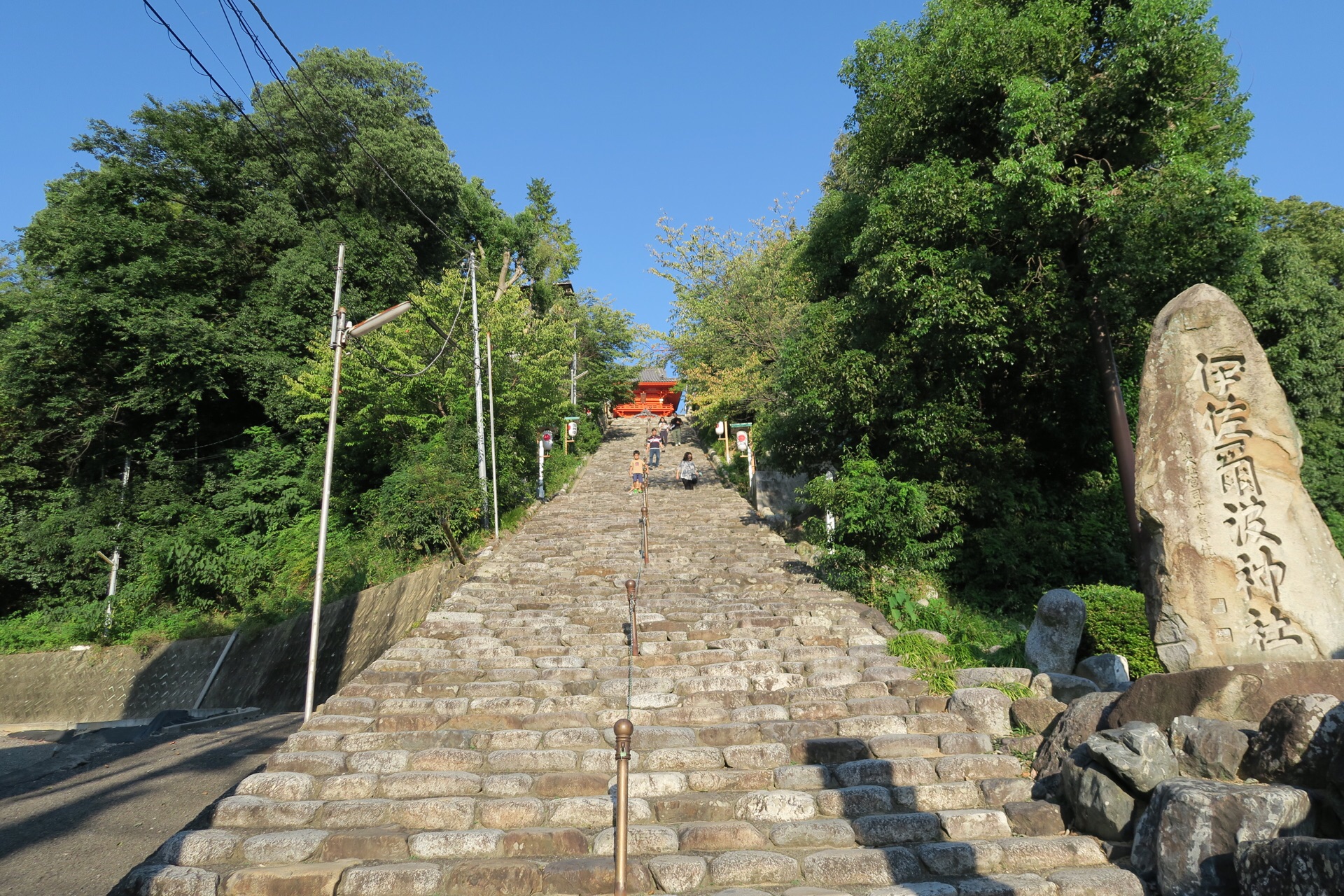 寺庙的规模虽然不大,但是却极为美丽。长长的一串台阶上面的一点红,就是伊佐尔波神社