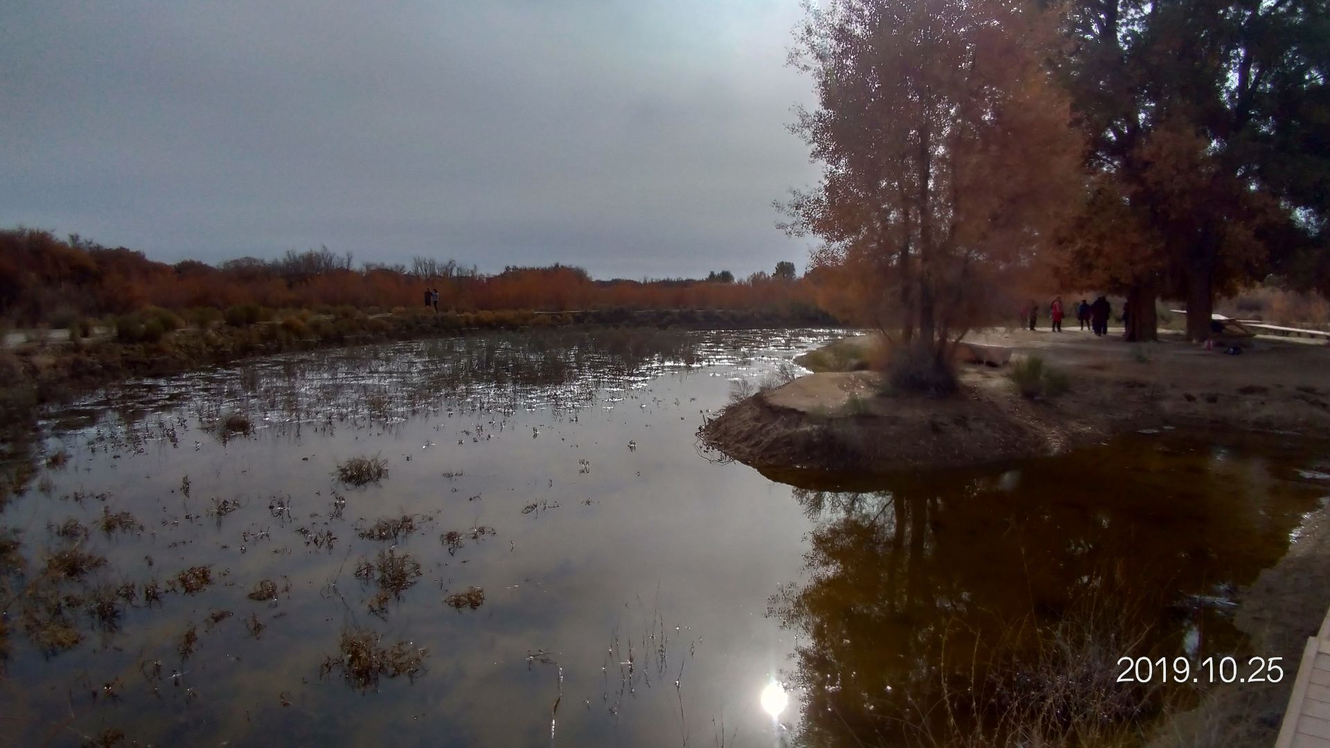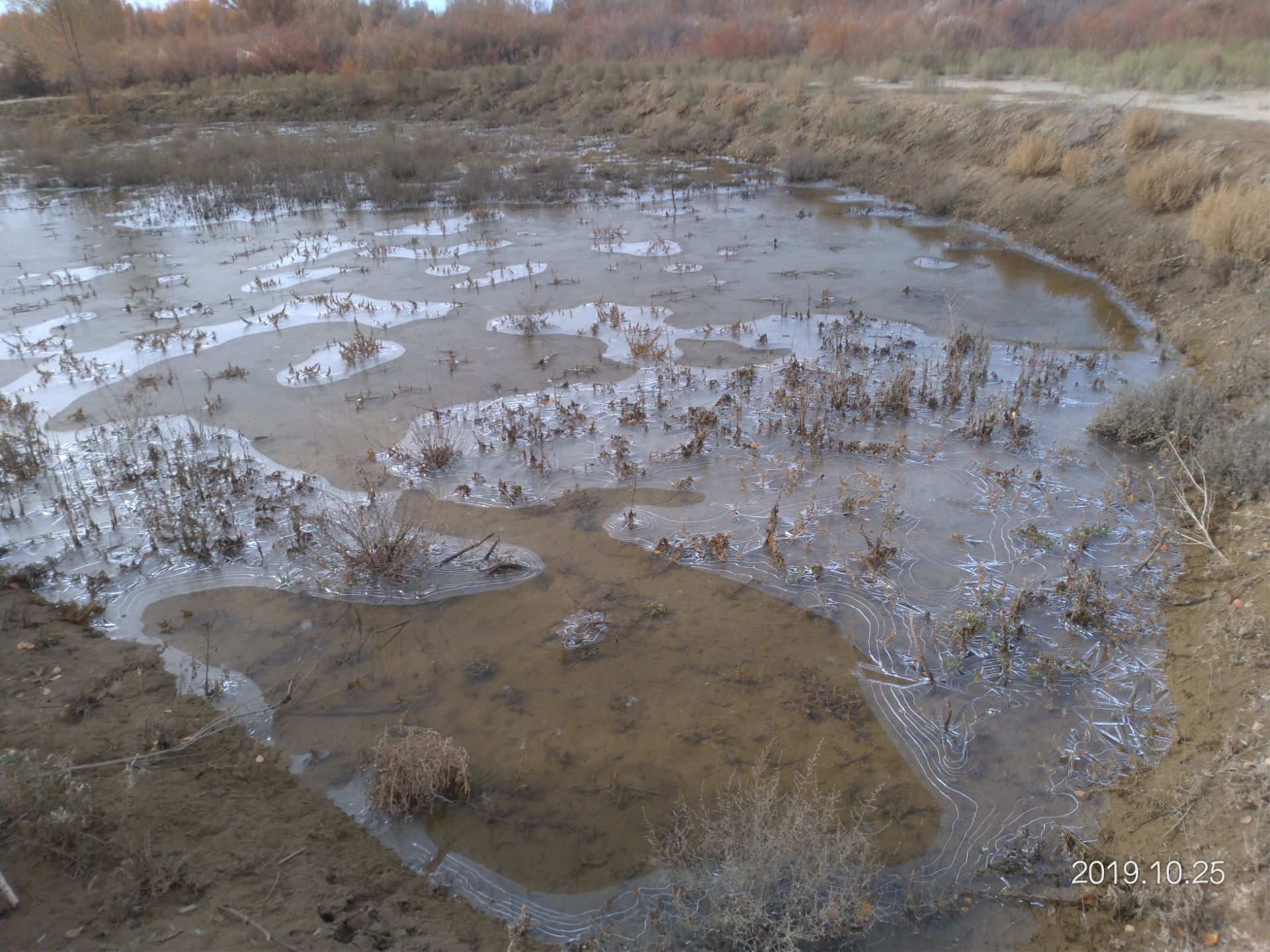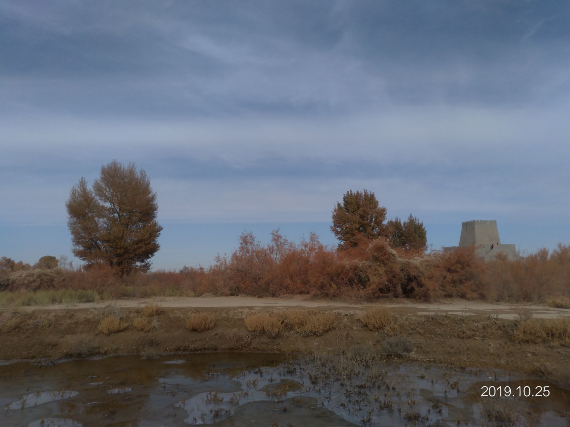 但首先吸引我注意的是水面上結冰裂開的声音,及裂痕,对住在南方的我挺有吸引力呢從烽火台上看起來很班佩,是2019目前仍是呈現綠色的胡楊林,變色較晚,旁邊有一石台,大家喜歡站上去拍...和樹对立方向~ 但首先吸引我注意的是水面上結冰裂開的声音,及裂痕,对住在南方的我挺有吸引力呢