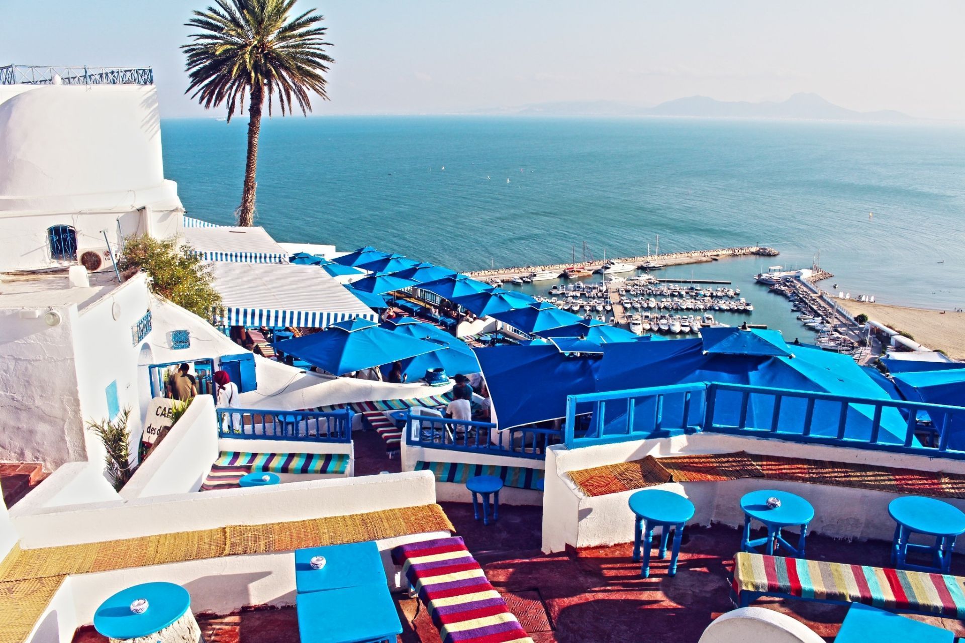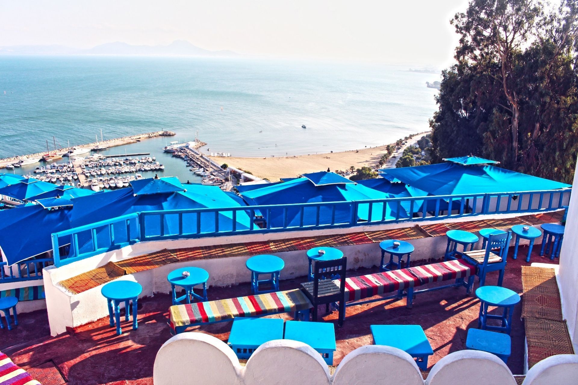 这是突尼斯的一座网红咖啡馆,名叫草席咖啡馆。咖啡馆开在岸边蓝色小镇的山顶,居高临下可以观看整个优美的海景。咖啡味道很不错,马上一点薄荷,感觉又醇厚又清凉,在这样的环境里品茗着咖啡关看着海景和落日的余晖,真的是太美了。