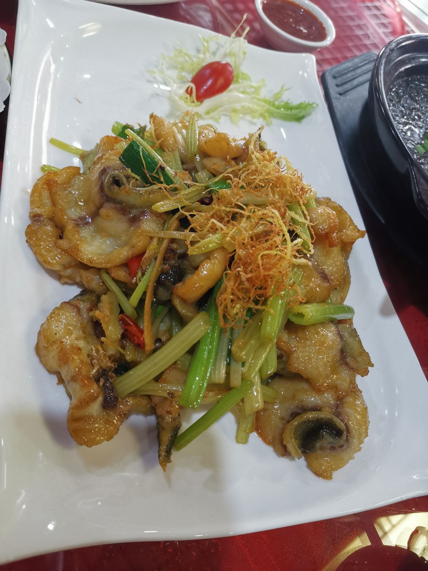 今天跟同事两个人约好去爬海沧大屏山公园,已经好久没过来了,秋高气爽,阳光明媚,真是个好天气,十点钟出门,十二点逛完公园,肚子就很饿了,然后就在大坪山公园旁边找到了这家渔人码头。 点了好几个菜都非常地道的闽南菜,红烧鲍鱼,个头不小,很入味下饭。 还有土笋冻,品质很好,胶质很多。 爆炒鲈鳗,搭配芹菜一起,清香四溢,肉质鲜嫩好吃。话梅芭乐,水果新鲜;咸蛋黄香芋卷,外酥里面香糯,超级喜欢,总体来说是平价又好吃的海鲜餐。 大厅宽敞,上菜很快,可以承接各种活动和聚餐,一出门就能看到漂亮的海景。