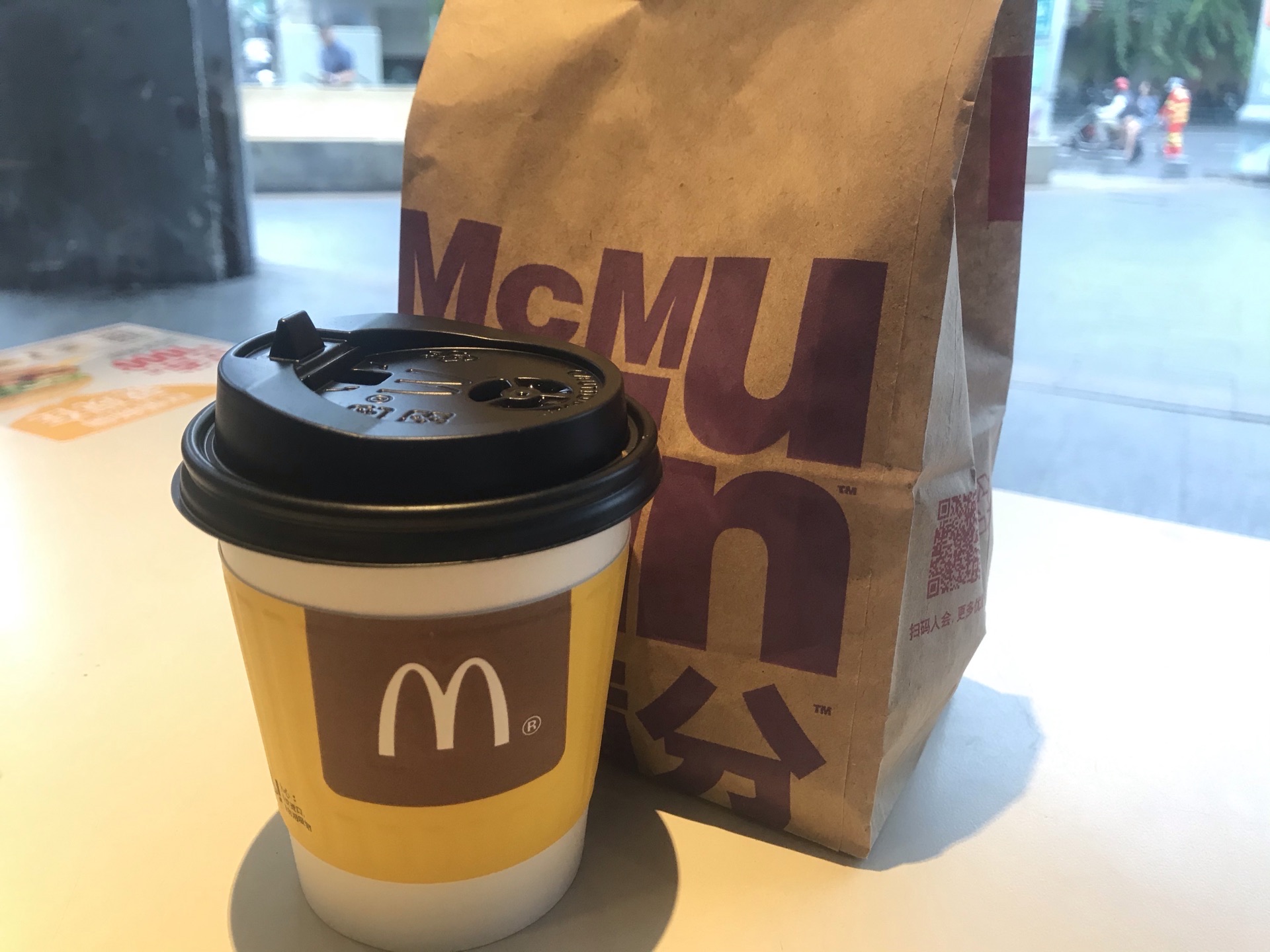 其实来麦当劳已经很多次了,只不过之前来吃的都是汉堡,薯条,没有吃过他的早餐,正好有活动,买了今天的早餐套餐。 这个套餐的话是由一杯咖啡,一个薯饼,一个麦满分组成的。咖啡的话是有点涩所以你可以自己加一点奶,薯饼的话就是土豆做的一个薯饼,比较淡,因为也是原味的,但是我觉得味道还不错。麦满分的话,其实就是一个迷你汉堡,是没有加沙拉的,有生菜,各两片面包夹着。所以这个早餐套餐的话一个人吃是够的,因为也挺好吃。