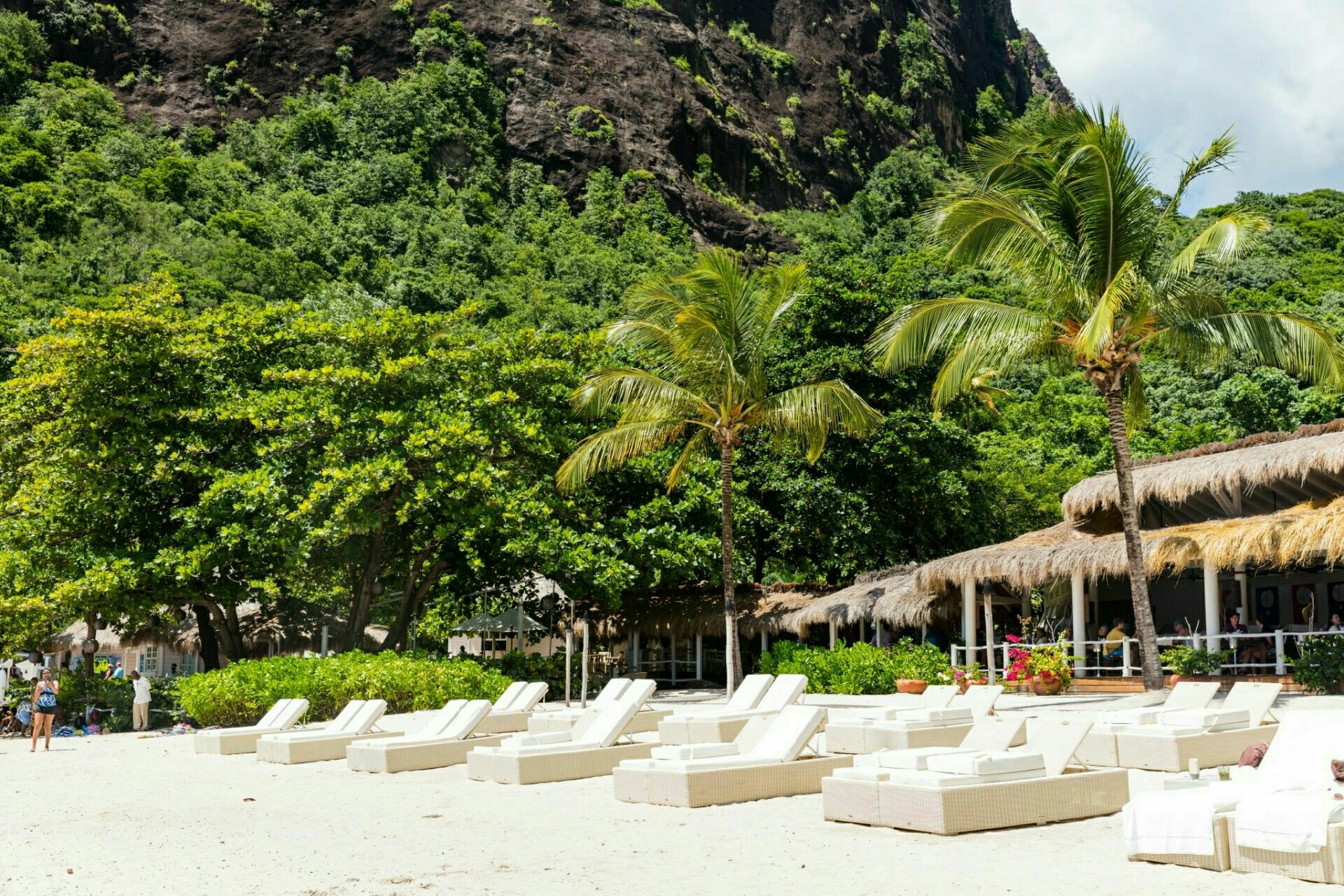藏宝海滩的珍宝海滩是一处景色非常优美的海湾,这里有着洁白绵延的沙滩,沙子十分的柔软,海滩上的椰...藏宝海滩的珍宝海滩是一处景色非常优美的海湾,这里有着洁白绵延的沙滩,沙子十分的柔软,海滩上的椰树随风摇摆,在夕阳的映衬下十分的漂亮。沙滩上摆满着沙滩椅和遮阳伞,绝对是一处日光浴休闲的好去处。