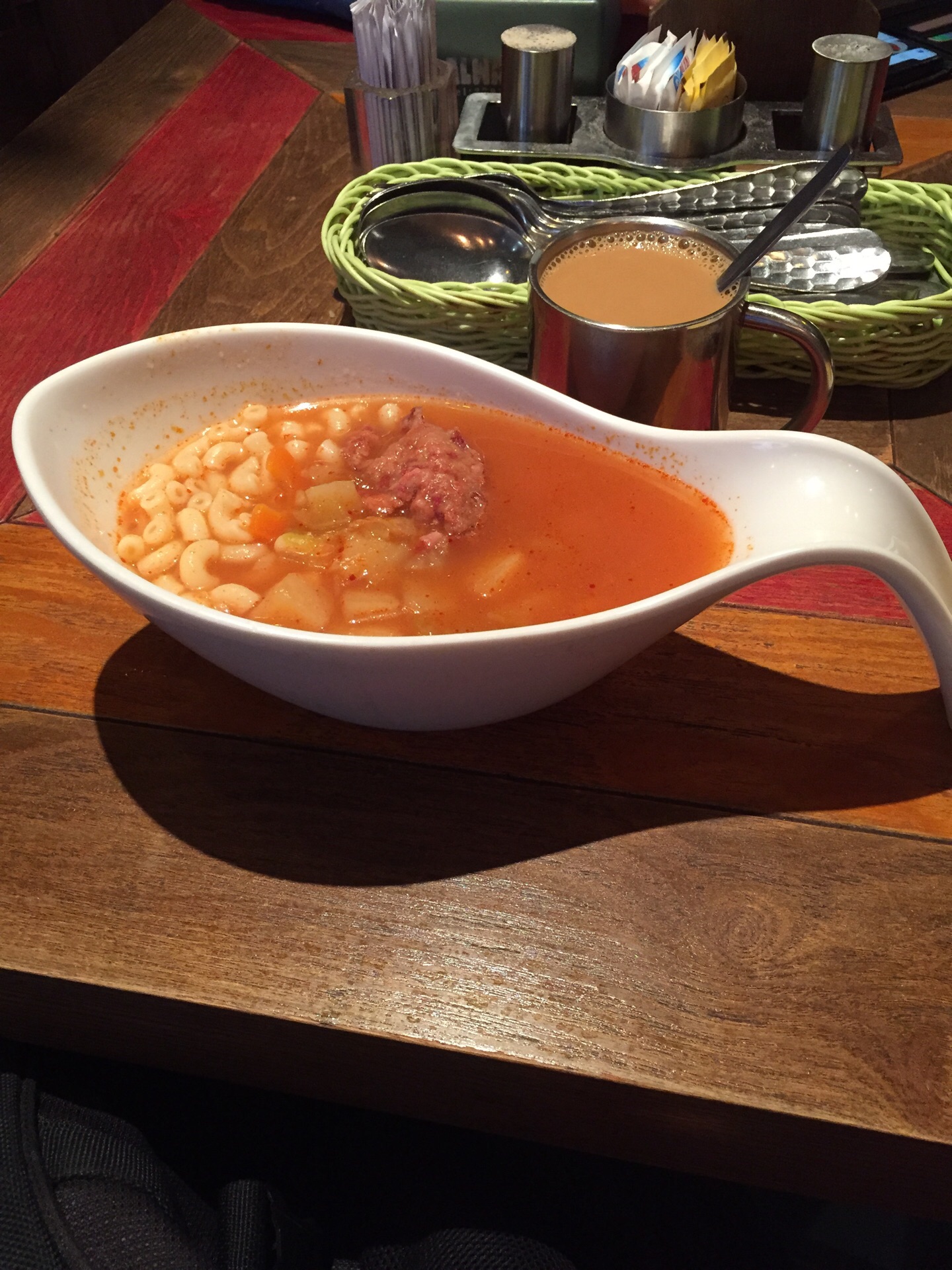 餐厅很小,空间狭窄,坐下根本转不了身。至于东西,他们的通心粉还可以,其他财一般水准早上在谢菲道逛的时候看到这店门外有人在等,原来进去吃东西还要拿票排队。餐厅很小,空间狭窄,坐下根本转不了身。至于东西,他们的通心粉还可以,其他财一般水准。
