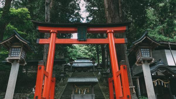 神社建在一个非常高的楼梯上面(是为了体现对神明的尊重?感觉这边很多神社寺庙都建在很高的地方)