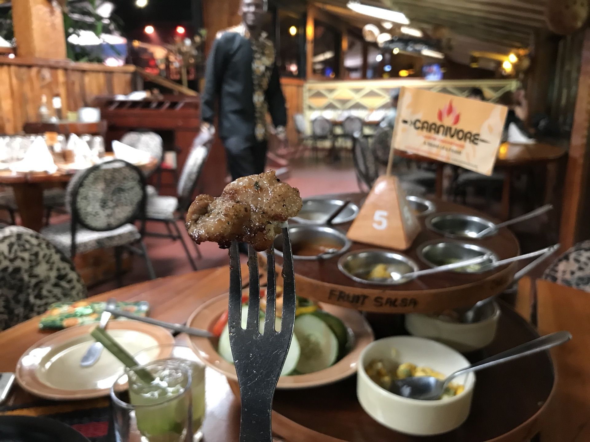 这是内罗毕一家最为著名的烤肉餐厅,在整个美食排行榜上评分都非常的高,排在前几位。烤肉店的风格非常的粗狂,服务员会拿一块大大的肉到你面前,任由你挑选,不限量真的超级的爽。而且价格也十分的便宜,绝对值得来验一下。