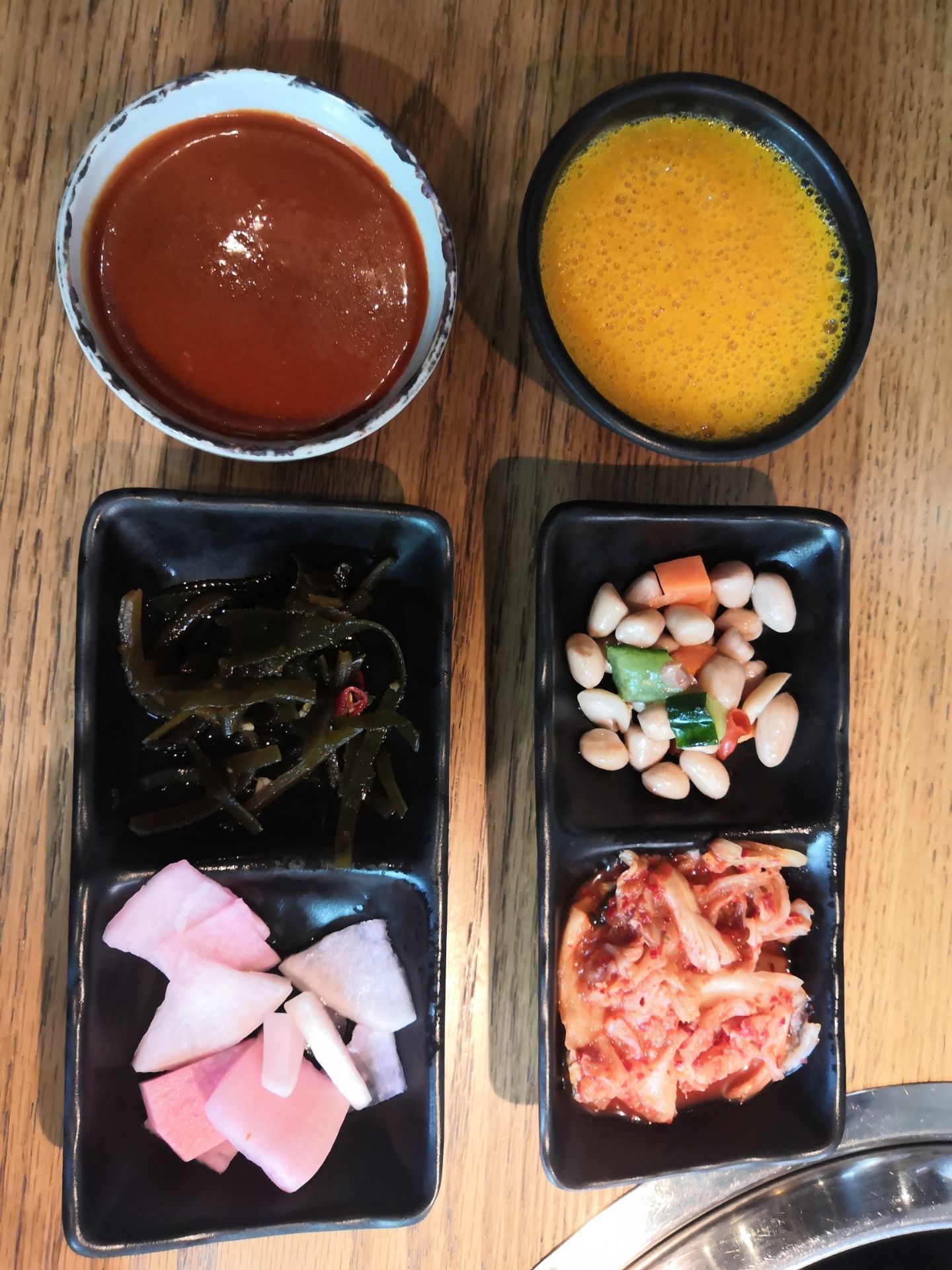 中午来,没啥人。感觉是一家新店呢~点了一个传统牛肉的,端上还是很诱人。 不过,可能是我这方面比较妖艳,还是喜欢吃有锅巴的石锅拌饭,这家有一点点,但是不多,感觉不够。其他的,都还挺地道的,包括酱料、小菜。另外要提出表扬的是南瓜汤,有一种天然无添加的口感,而且非常浓稠,合起来很舒服~~