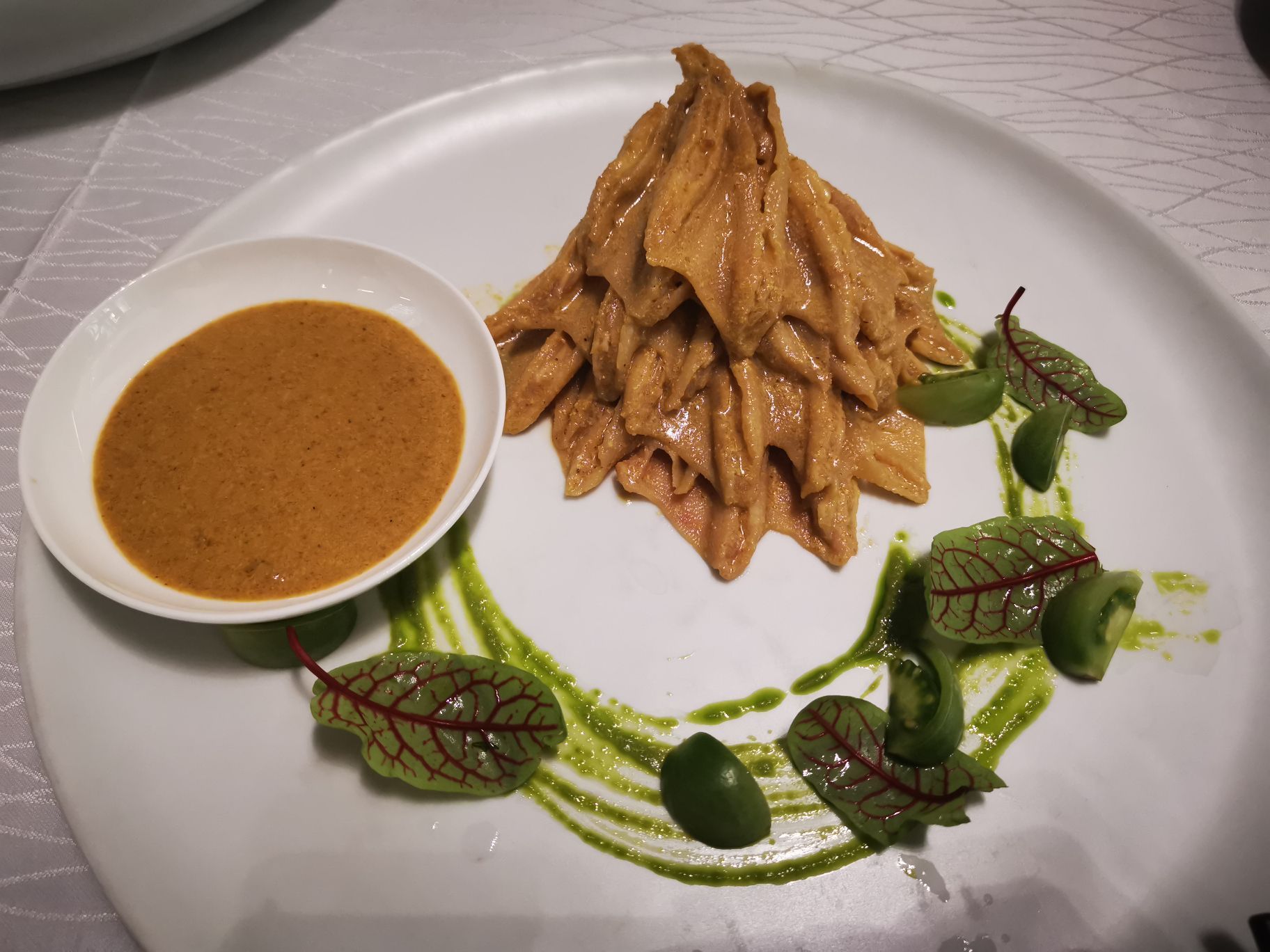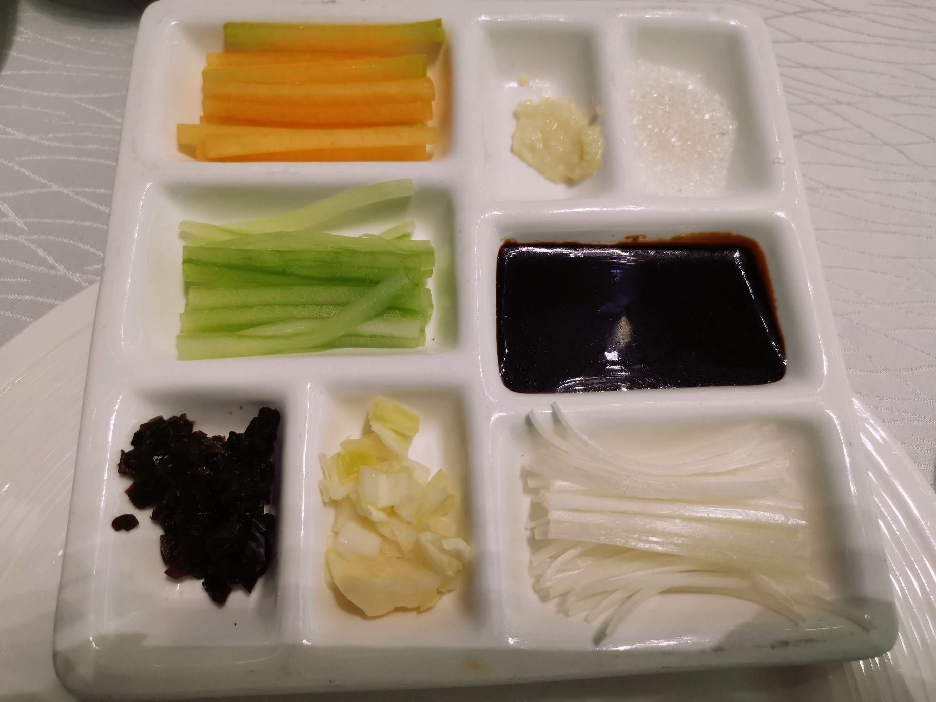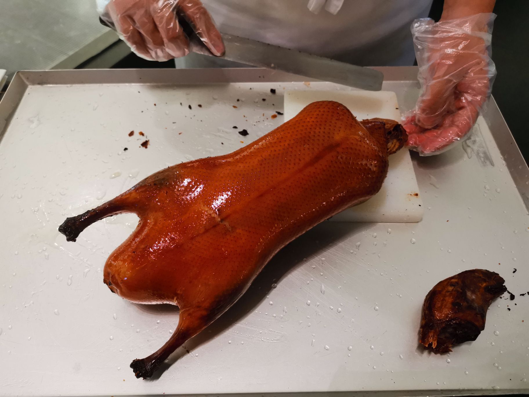 国金这家店生意大概太好,去晚了可以坐靠窗的位子,但是旁边是商场的电梯,吃饭时有点尴尬。 芥末鸭掌:68一例,配的芥末酱不会很冲 山楂鹅肝:98一例,有点清酒鹅肝的味道,山楂偏甜 烤鸭:片了两盘,酱料12元一份,鸭架建议带回家,否则做汤的话,汤里一点鸭肉和鸭架都没有,喝不出鸭汤的味道,感觉像猪肚鸡火锅的汤